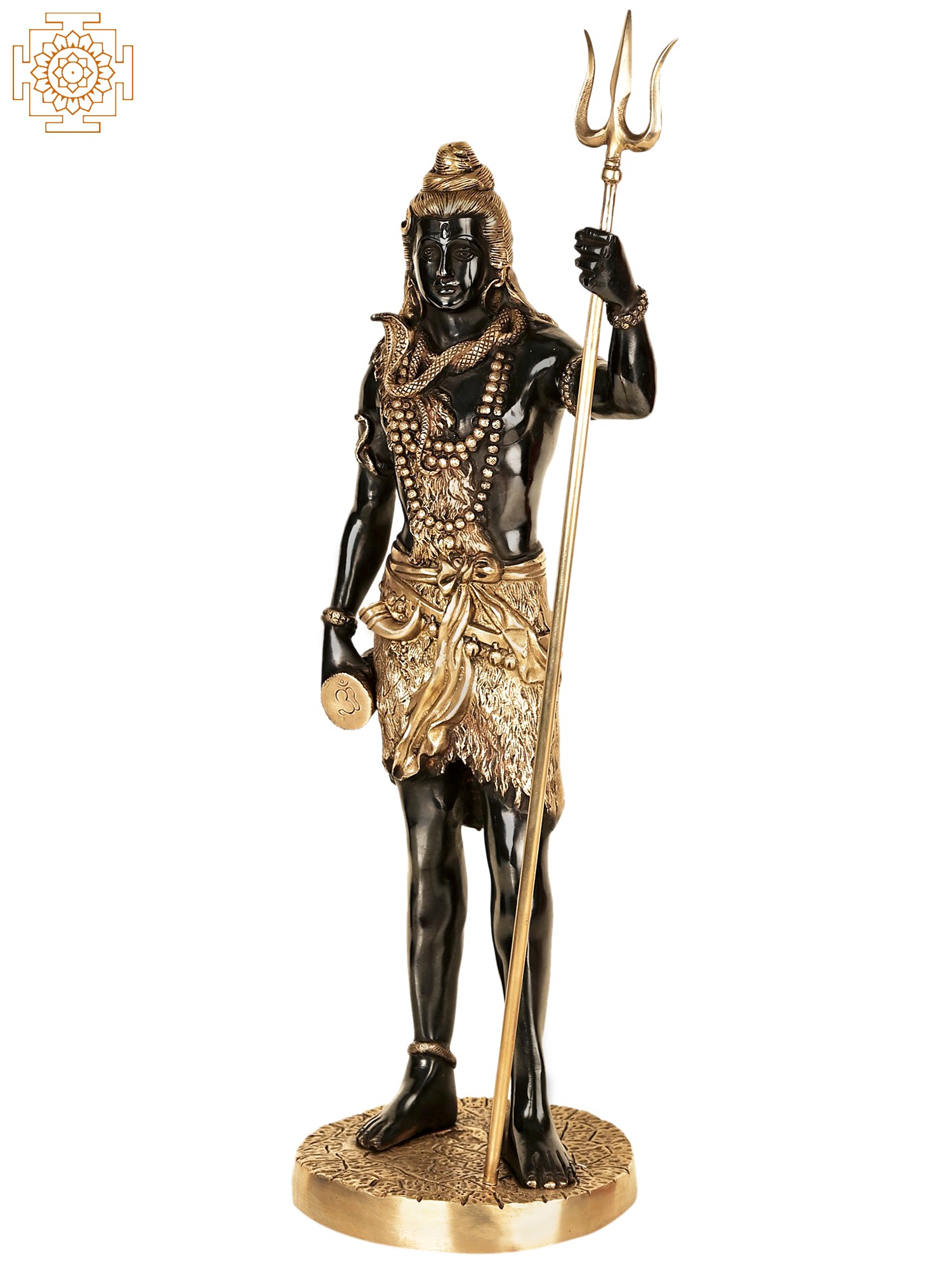 The divine lord of Mount Kailash and the ruler of Kaashi, Bhagwan Shiva in this brass murti stands in the posture of a valiant warrior. A firmness is felt in the way Shiva holds his Trishul (trident), reminding us that he is the Destroyer, Mahakal- one who has gained victory over Kaal (both death and time).