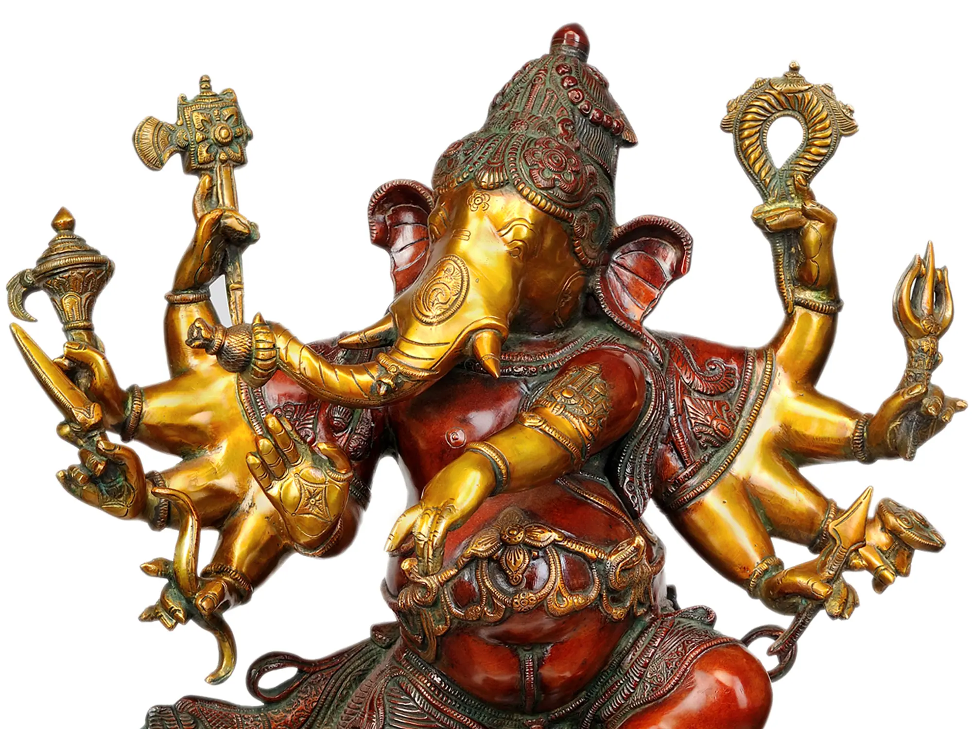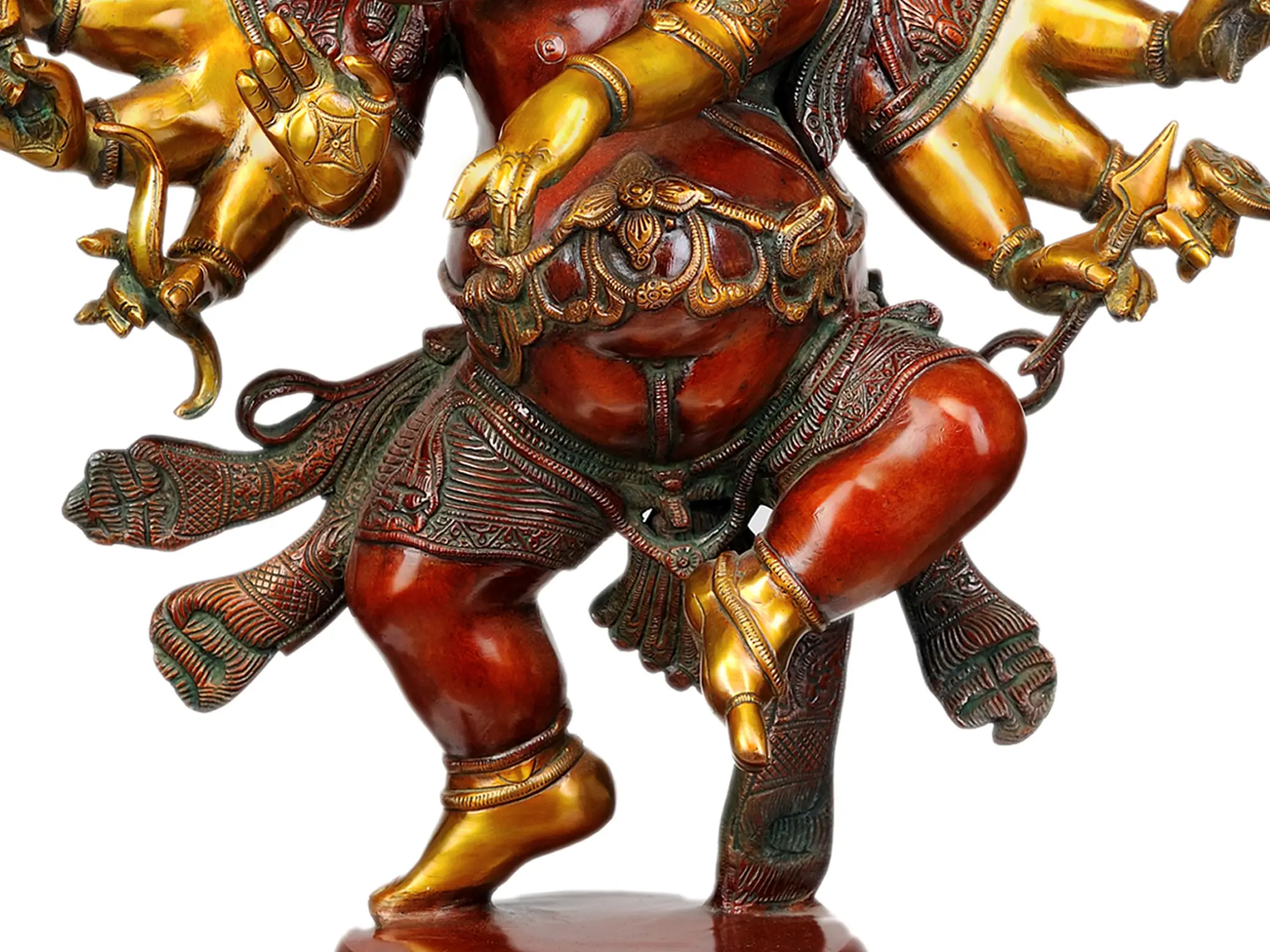 26" Ten-Armed Dancing Ganesha In Brass | Handmade | Made In India