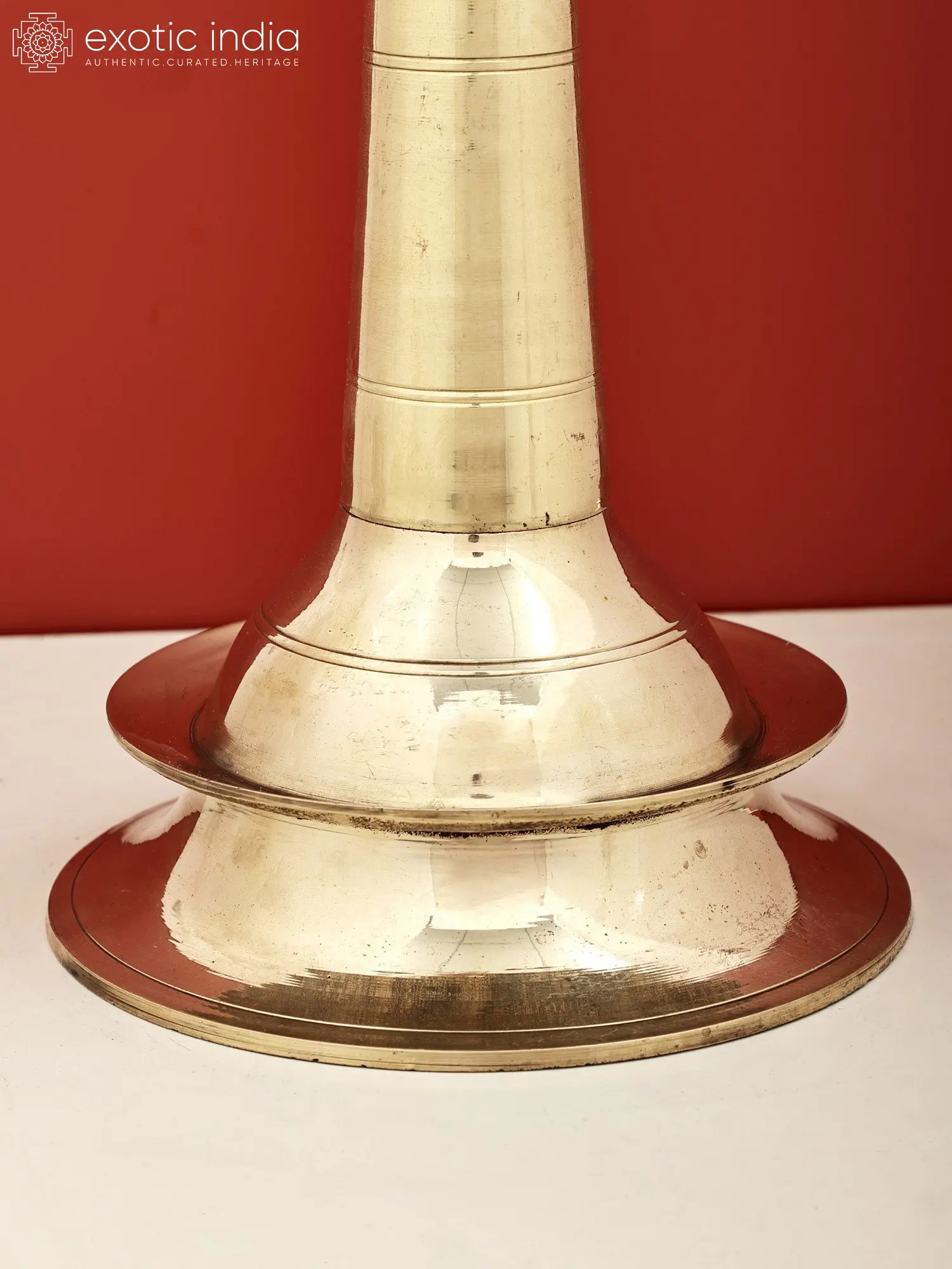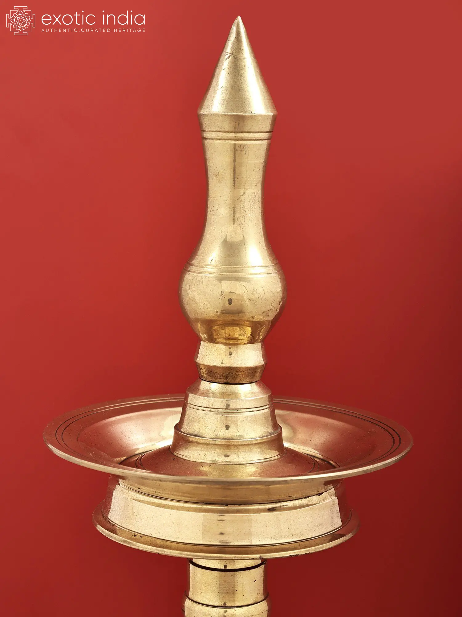Made of fine brass this South Indian lamp is known as a Kathakali lamp. It derives this name from the age-old tradition of lighting these lamps during Kathakali performances. In the gentle curve of this Kathakali lamp, stories softly breathe. A vessel of serene antiquity, it cradles a single wick, a lone sentinel of illumination. Its brass form whispers tales of bygone eras, while the flickering flame casts shadows that dance like forgotten melodies.