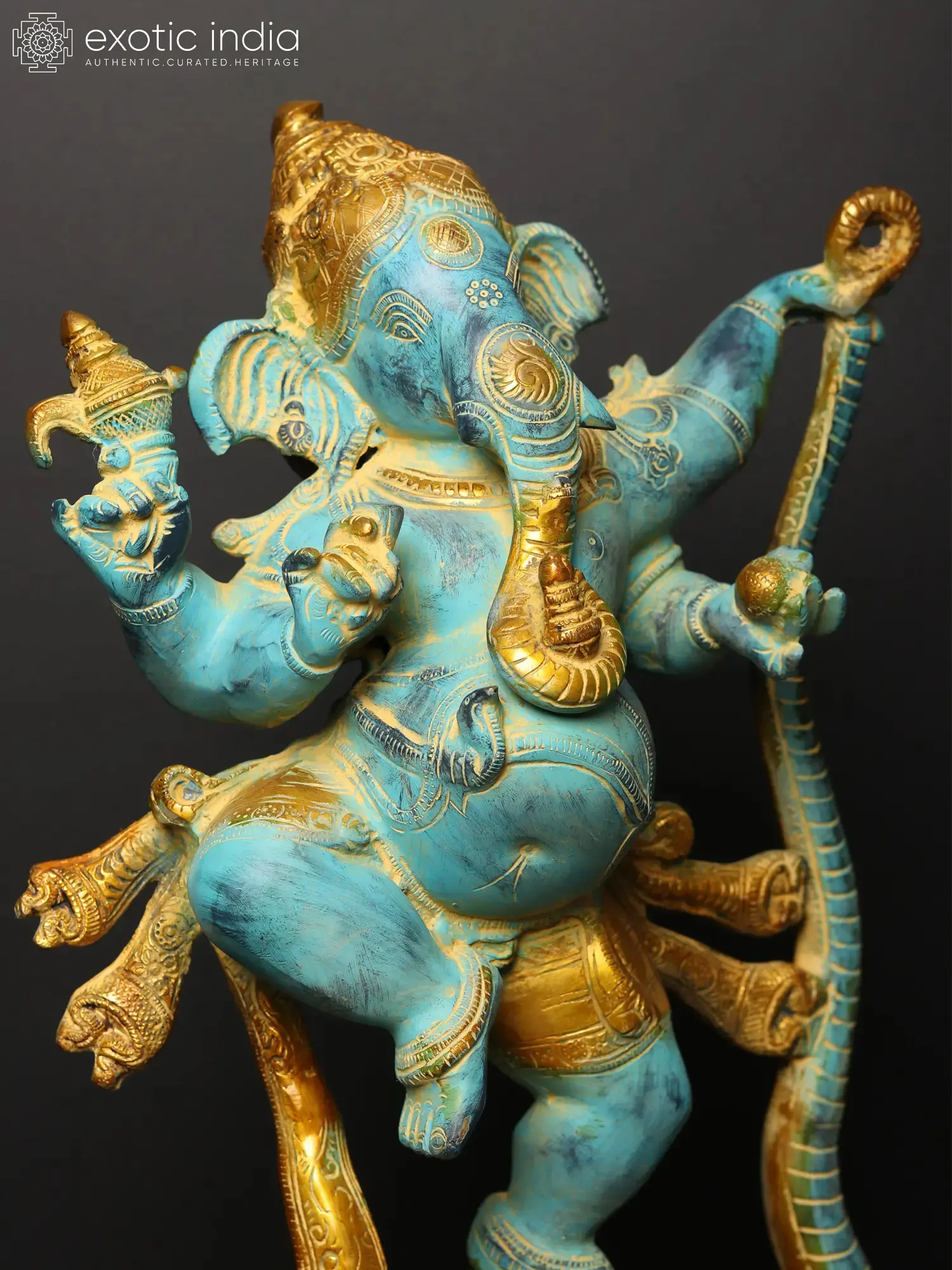 10" Dancing Ganesha Hanging Lamp with Bells In Brass | Handmade | Made In India