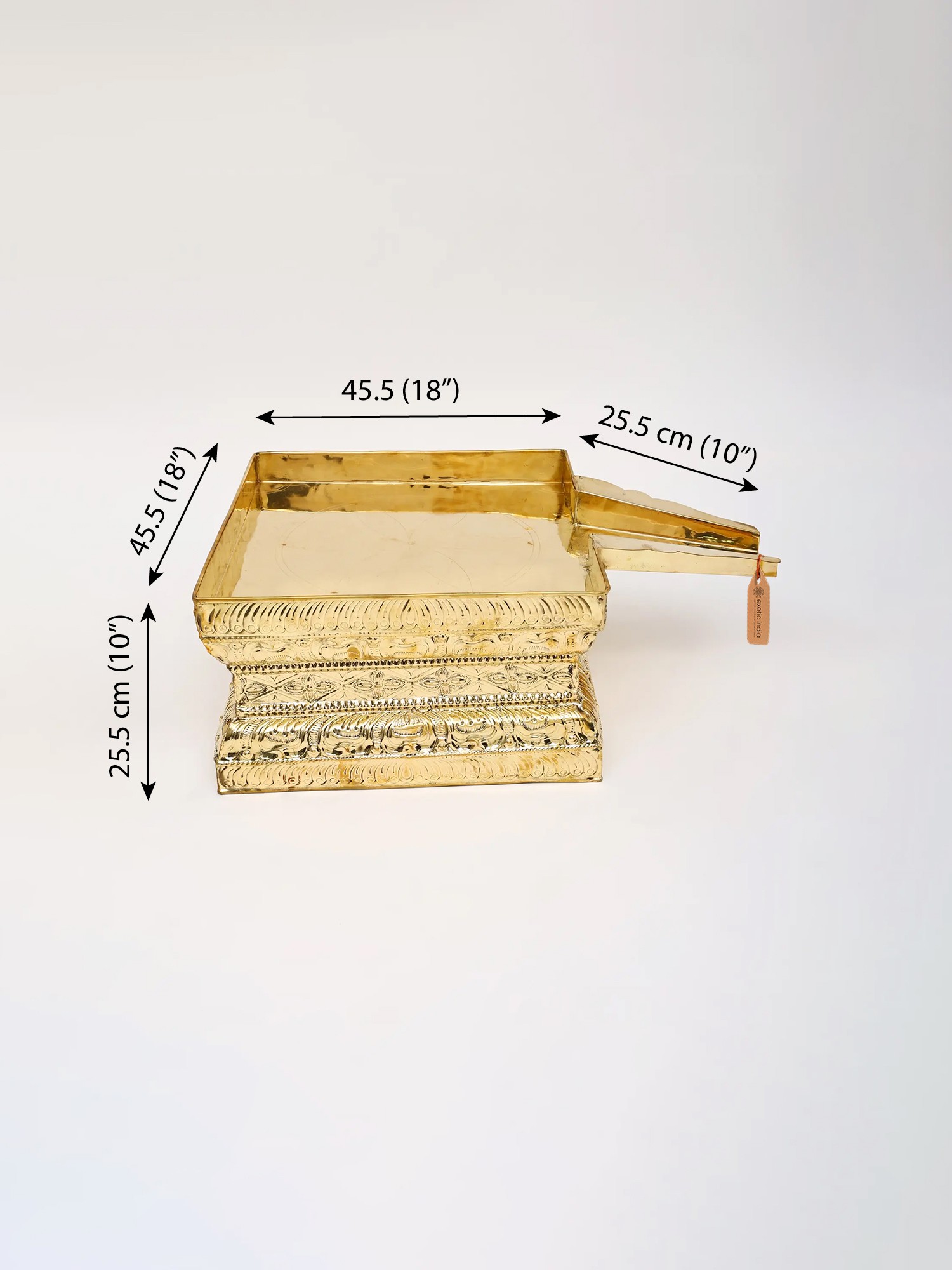 Introducing the Large Abhisheka Patra in Brass, - handmade with precision and love, this ritual vessel is designed to elevate your spiritual practices. Its size and quality make it a perfect choice for performing sacred Abhishekam ceremonies. As you pour sacred liquids onto deities, let the Abhisheka Patra channel your devotion and intentions. Its presence enhances the spiritual significance of your rituals, inviting blessings and divine grace into your life.