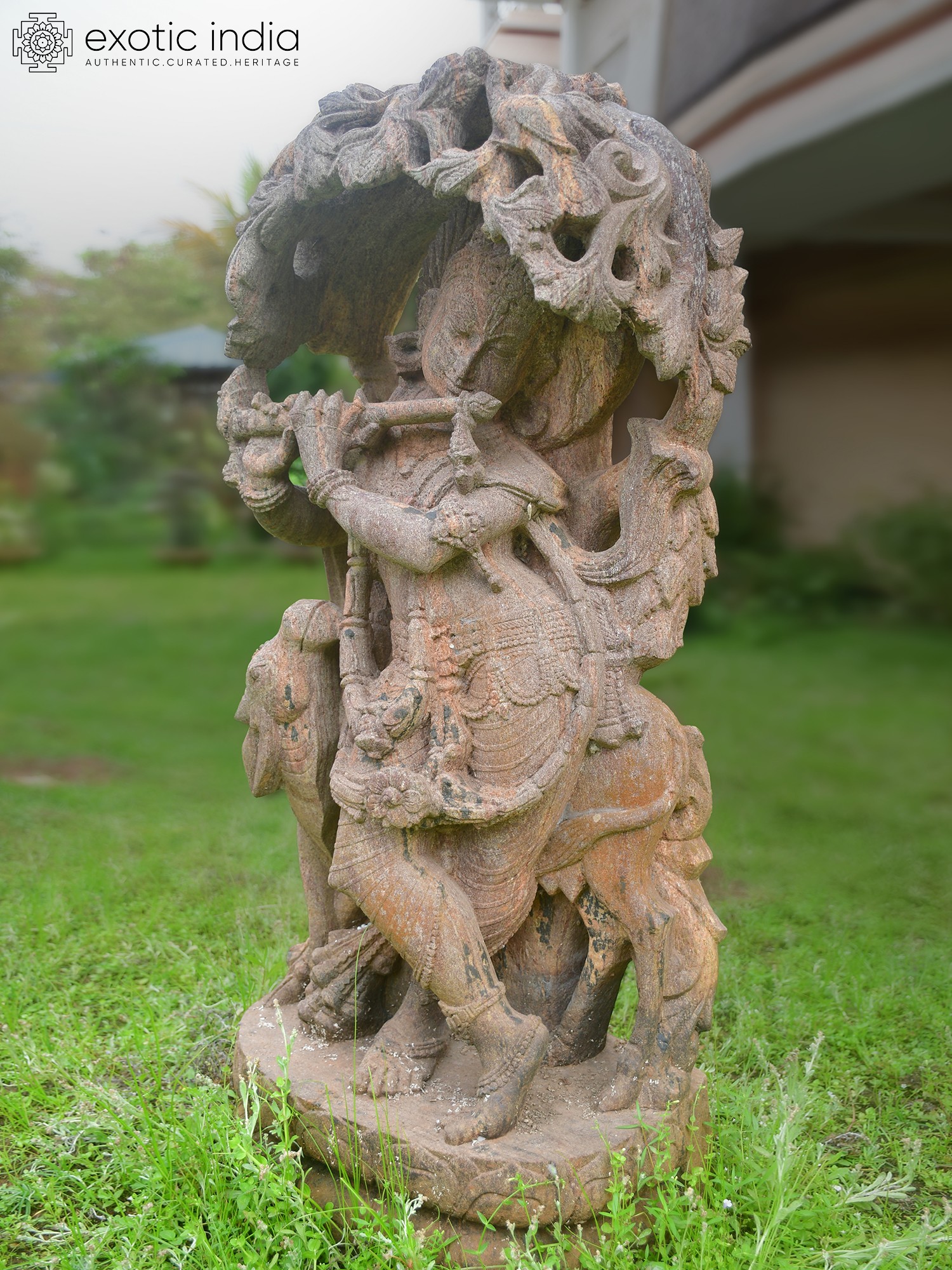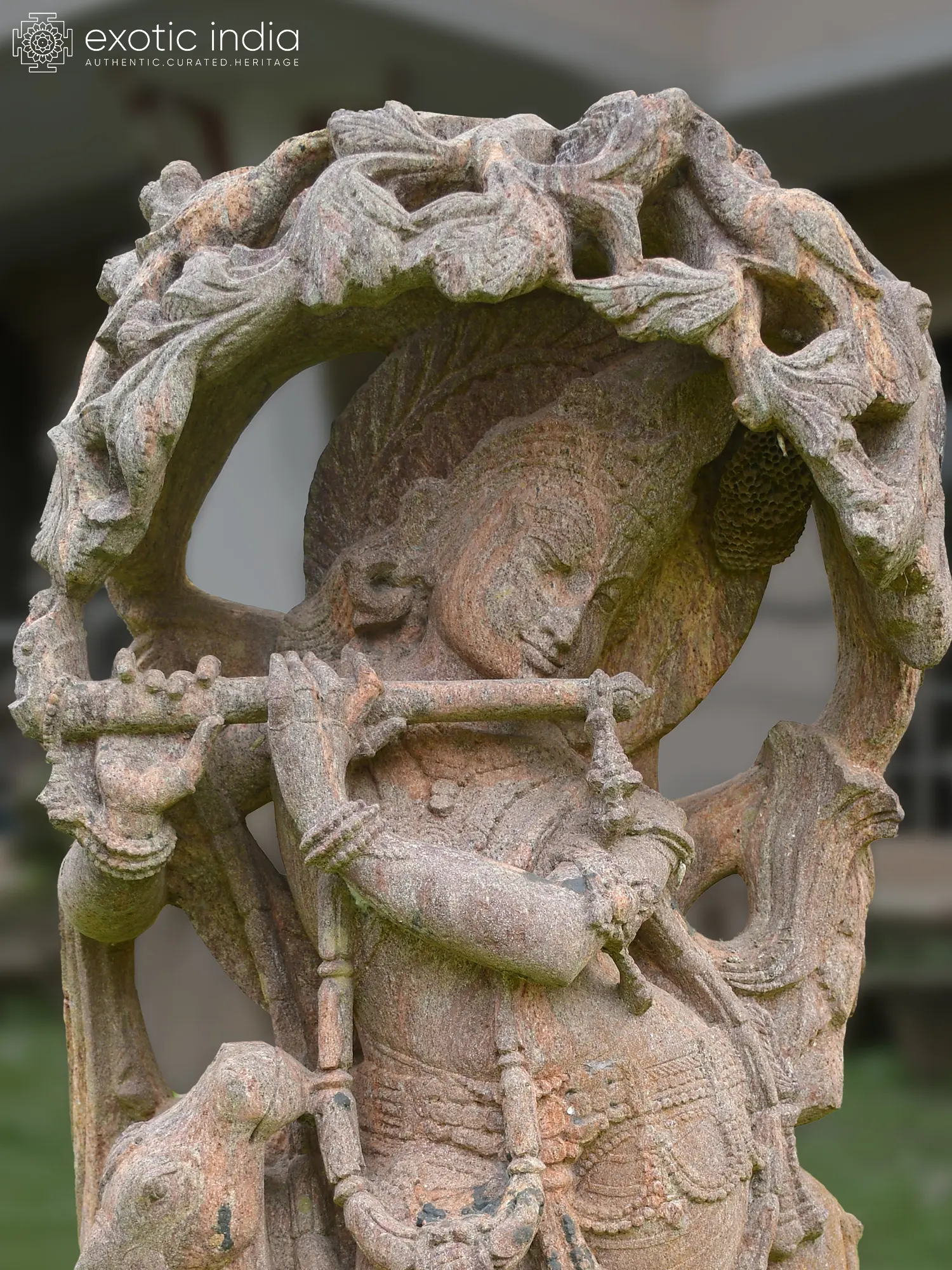 Imagine the tranquil sound of a flute echoing through lush landscapes, a scene captured in enduring stone. This remarkable carving embodies a moment of divine serenity, inviting you to connect with a cherished deity and the grace of nature. It is a testament to the enduring power of sacred art to inspire and transport.