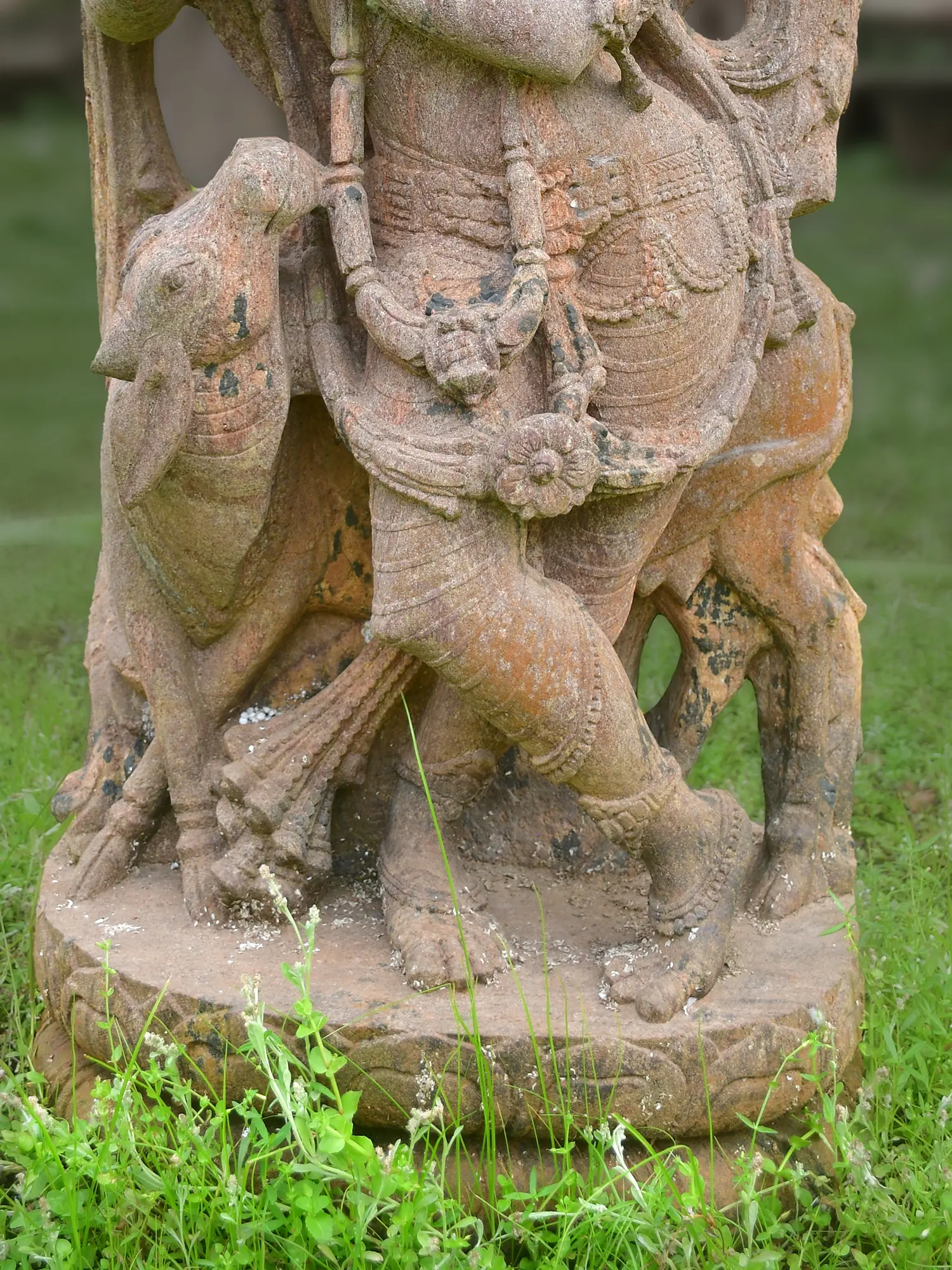 Crafted from the finest Orissa Sandstone, this piece is a testament to generations of artisanal skill. Each detail, from the delicate rendering of the divine figure's adornments to the subtle textures of the sacred cow, has been meticulously shaped by the sculptor's patient hand. The natural variations in the sandstone lend a unique character, ensuring no two creations are ever exactly alike.