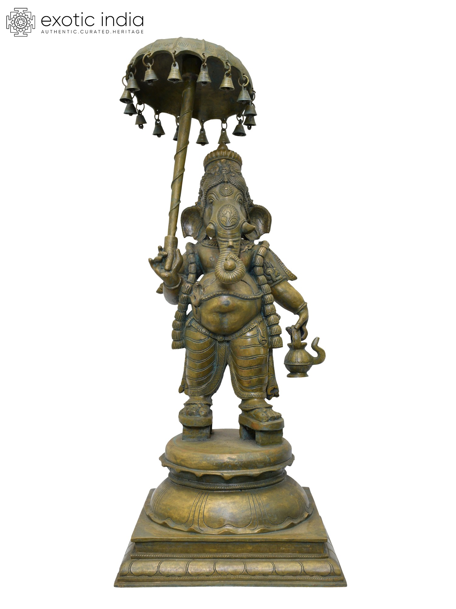 25" Umbrella Ganesha Statue | Handmade | Madhuchista Vidhana (Lost-Wax) | Panchaloha Bronze from Swamimalai