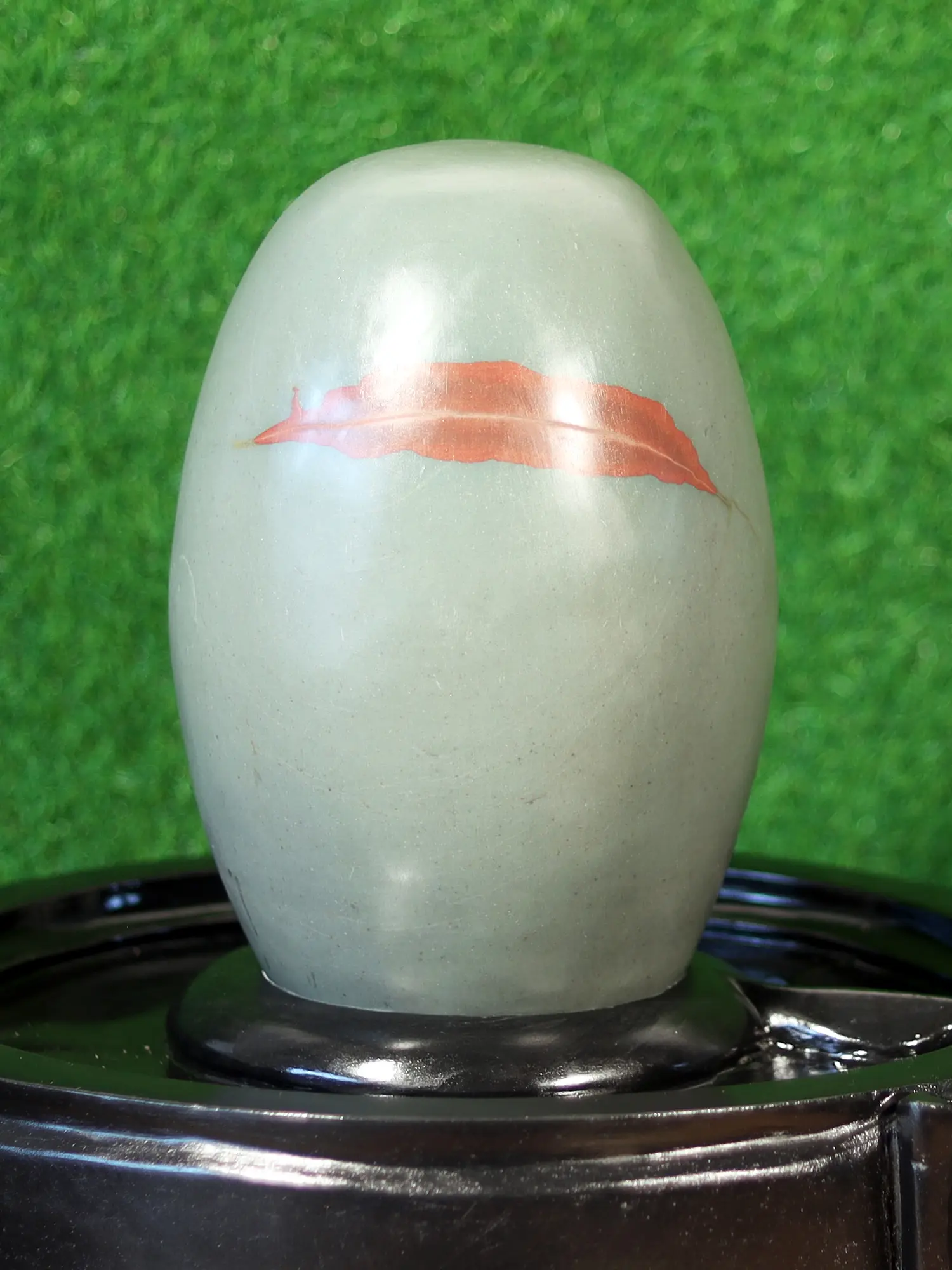 The Bana Lingam holds a special place in Vedic traditions. It is said that the sage Bana, a great devotee of Lord Shiva, performed intense penances to receive the Lord's blessings. In response to his devotion, Lord Shiva manifested himself in the form of self-formed, smooth, oval-shaped stones found in the Narmada River, which came to be known as Bana Lingams. These are considered the most auspicious and powerful forms of Shiva Lingams for worship. The smooth, rounded shape is said to represent the formless, omnipresent nature of the Divine, while the subtle markings, like the faint reddish vein visible on this particular piece, are often interpreted as natural divine symbols, enhancing its sacred appeal.