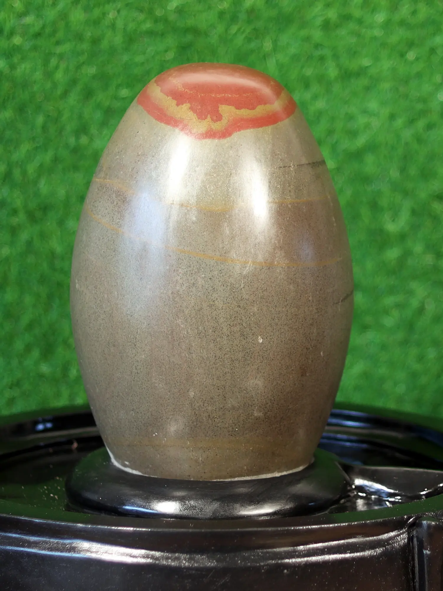 The word Svayambhoo translates to ‘self-existent’. These sturdy, naturally occurring stones are called Banalinga and are worshipped by devout Hindus to this day. The one that you see on this page is an authentic Banalinga, featuring faint striations on glistening golden colour.