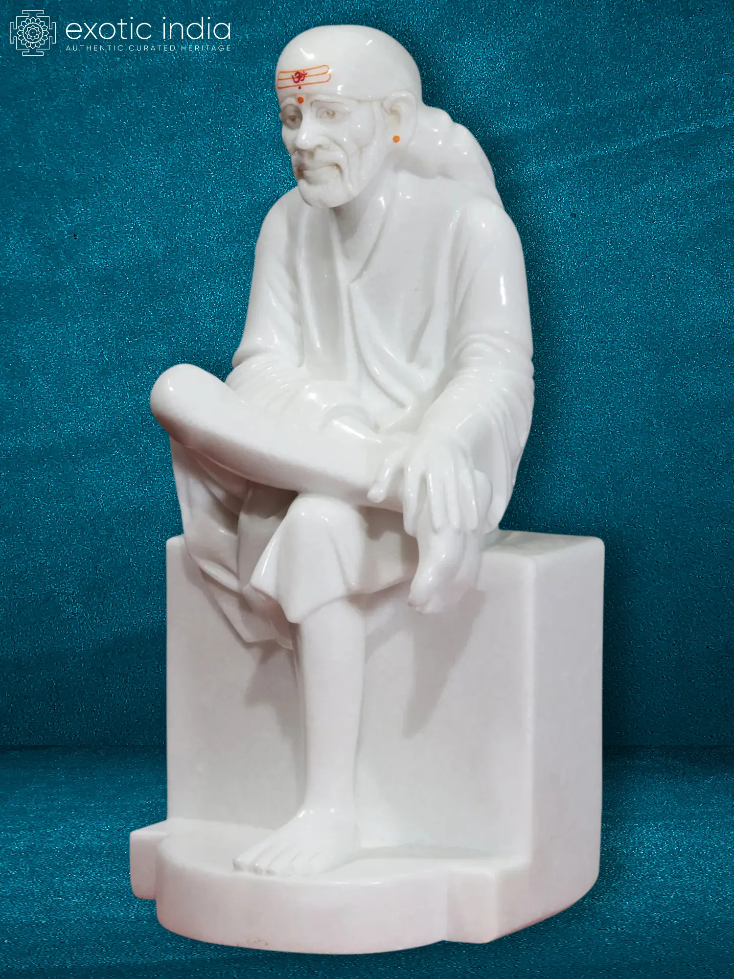 15" Hand-Carved Sai Statue | White Makrana Marble Idol