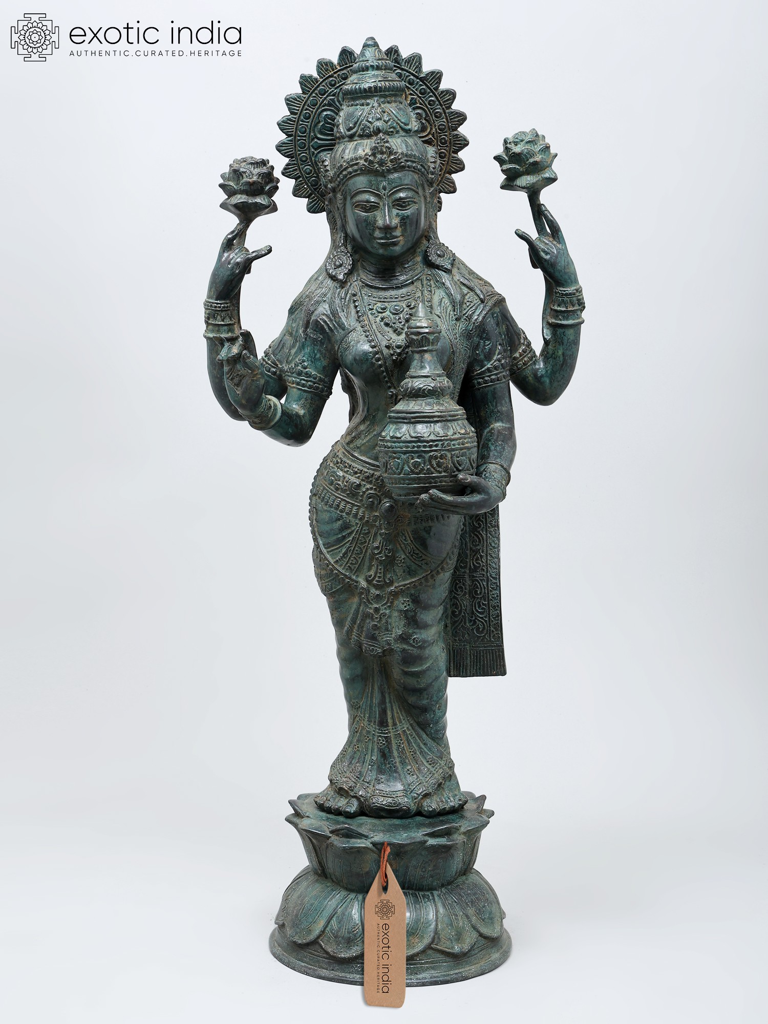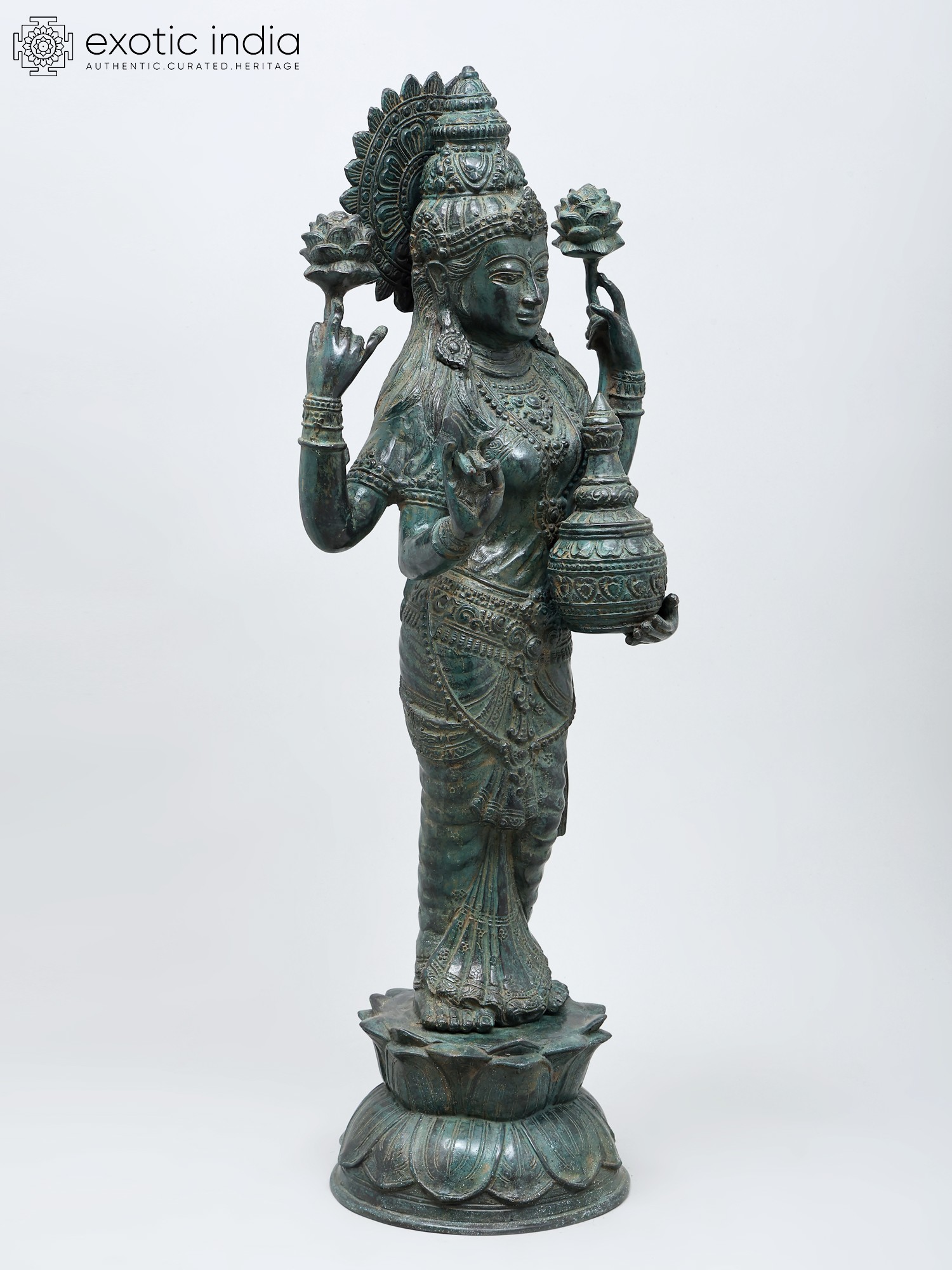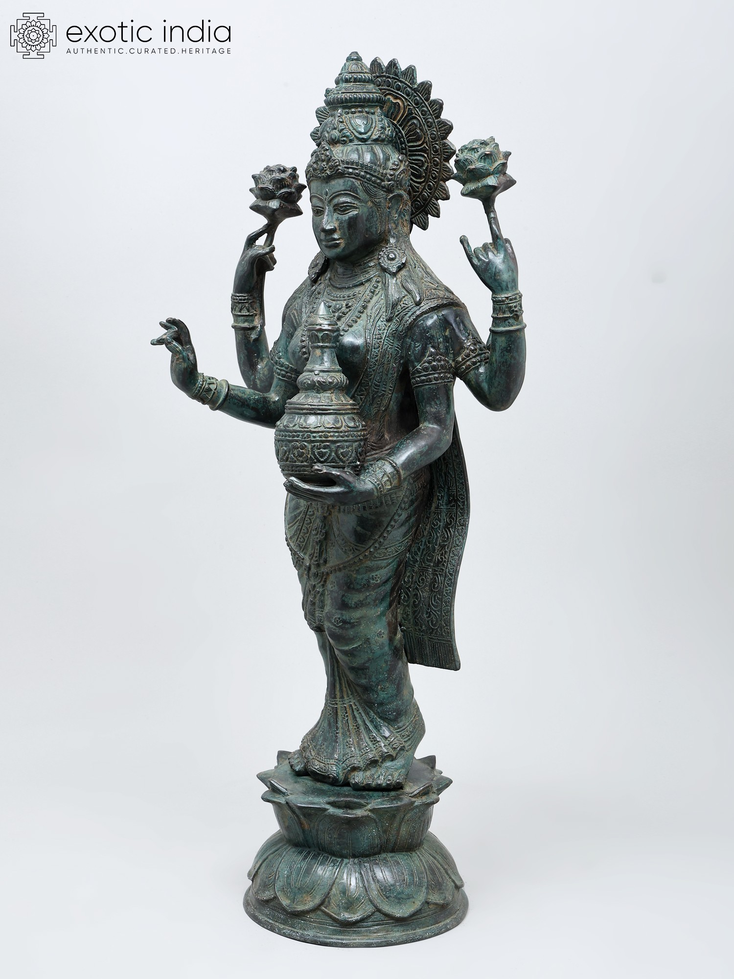 32" Standing Goddess Lakshmi In Brass | Handmade