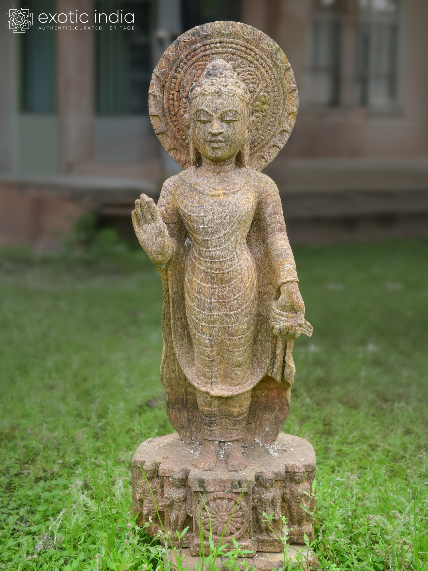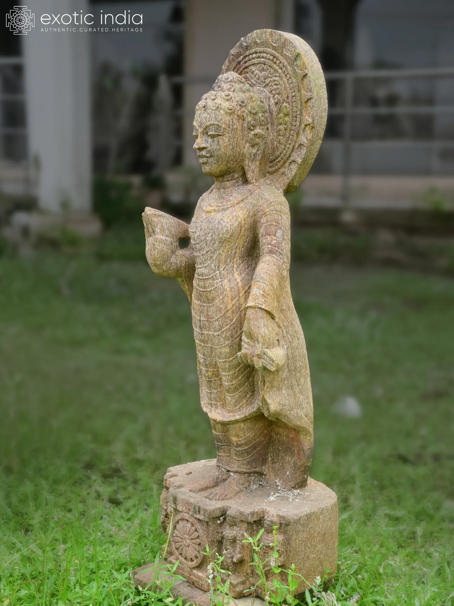 Carved from exquisite Orissa sandstone, this piece is a testament to the enduring artistry of Indian sculptors. Each detail, from the delicate folds of the robe to the serene expression on the face, is meticulously rendered by hand. The natural variations in the stone ensure that your sculpture possesses a unique character, reflecting the earth from which it was shaped.