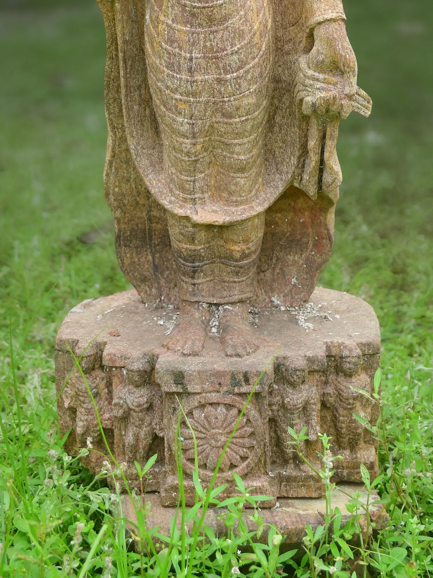 Crafted from durable Orissa sandstone, this sculpture is designed to withstand the elements, allowing its beauty to deepen with age. To maintain its luster, gently dust with a soft, dry cloth. With minimal care, you will enjoy its serene presence and the sense of peace it imparts for generations to come, a truly lasting treasure.