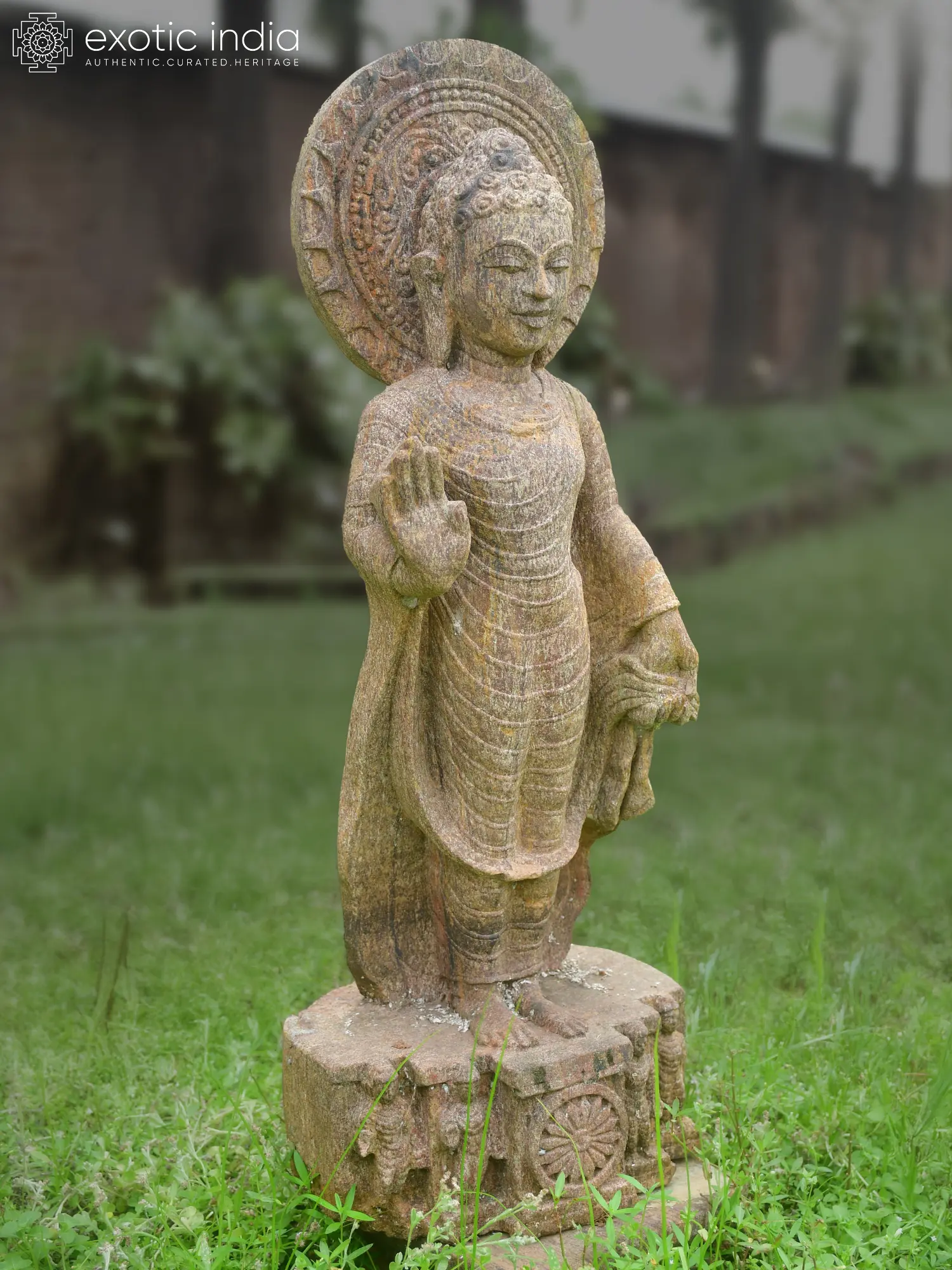 39" Lord Buddha Statue With Kamalasana | Sandstone Figurine