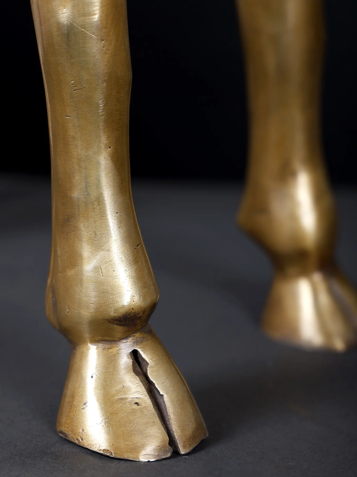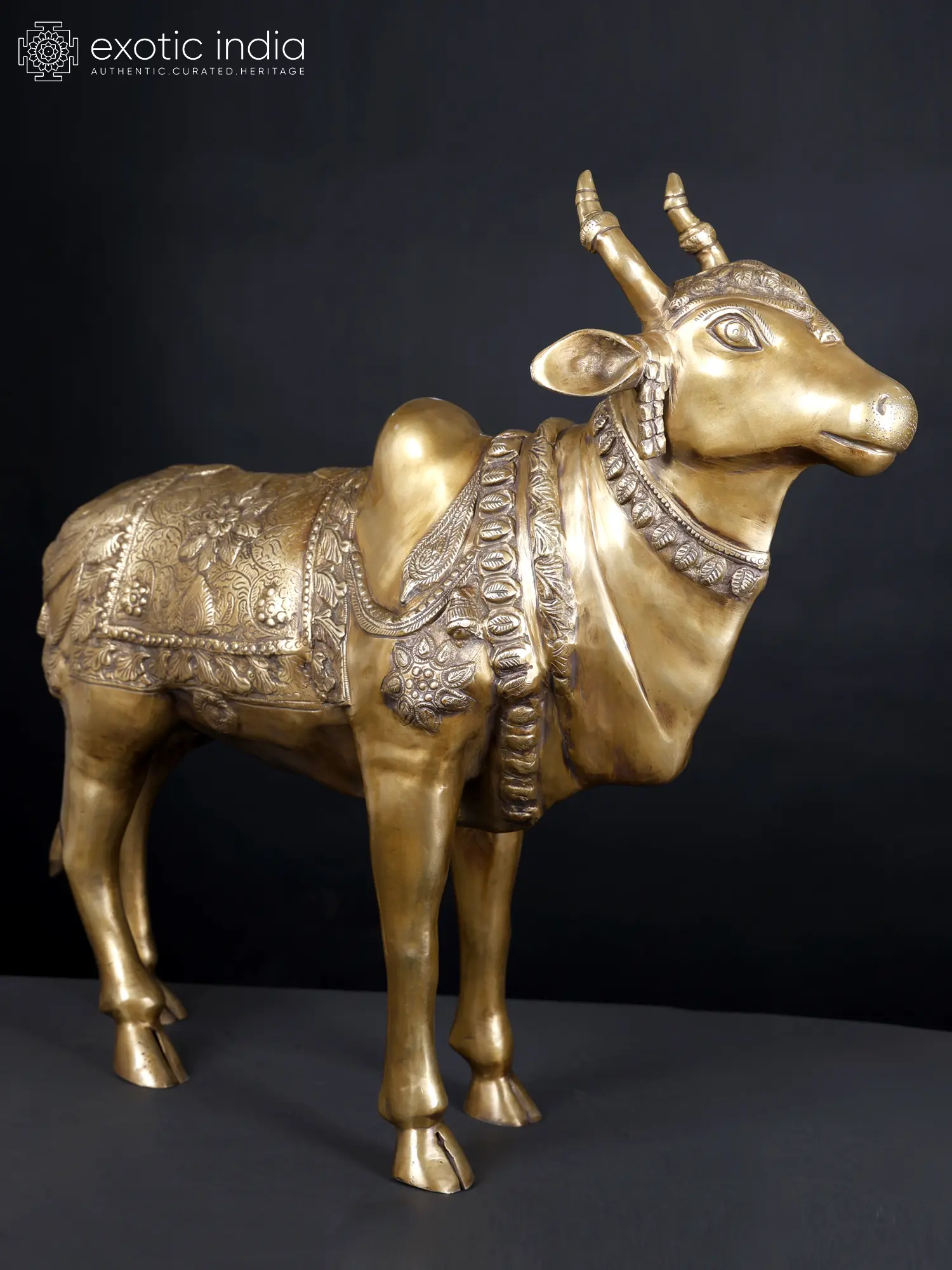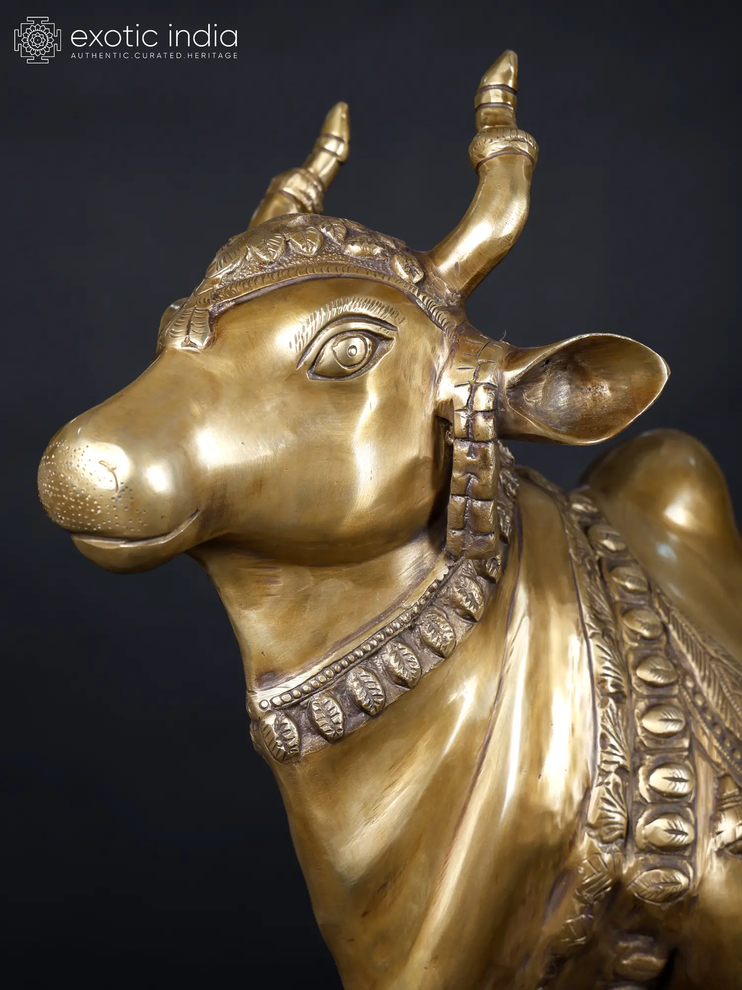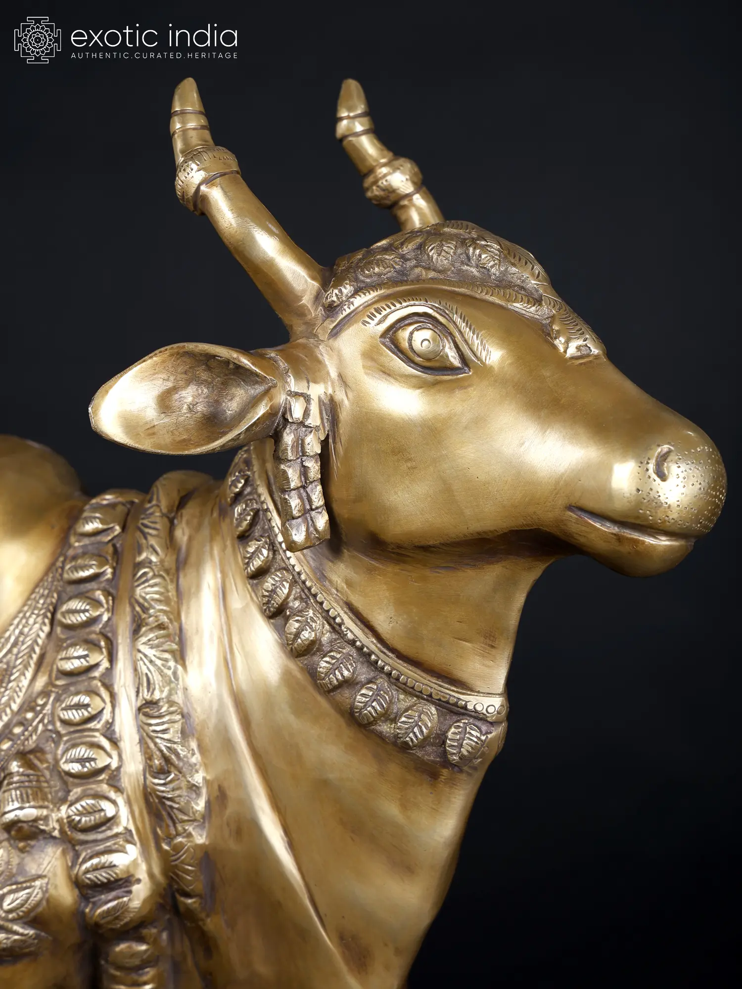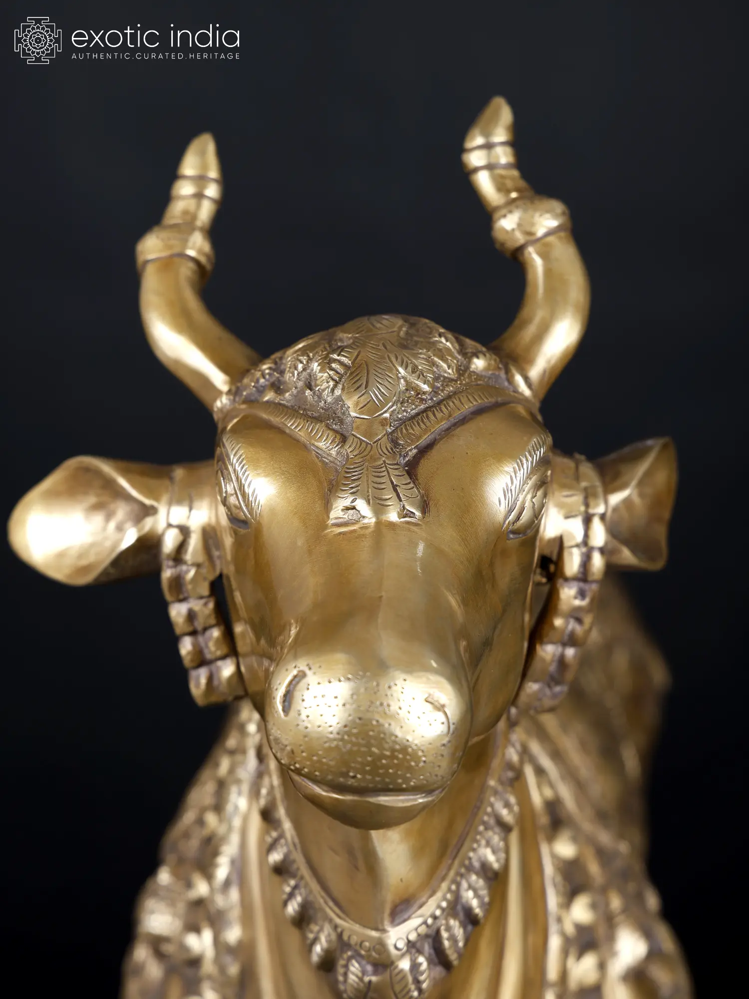 Majestic and powerful in his form and posture, Nandi- the bull of Shiva in this brass artwork appears decked up, waiting for his Lord to grace him with his presence.