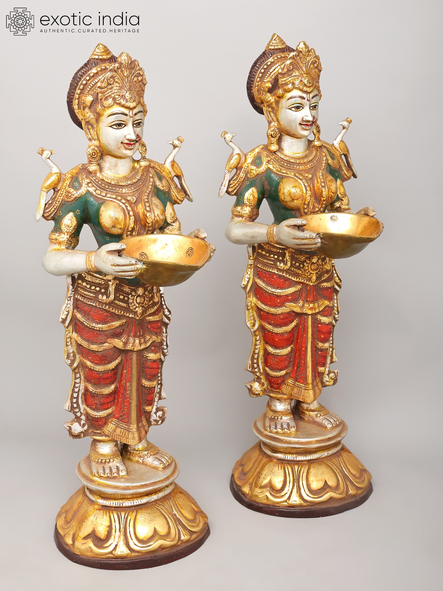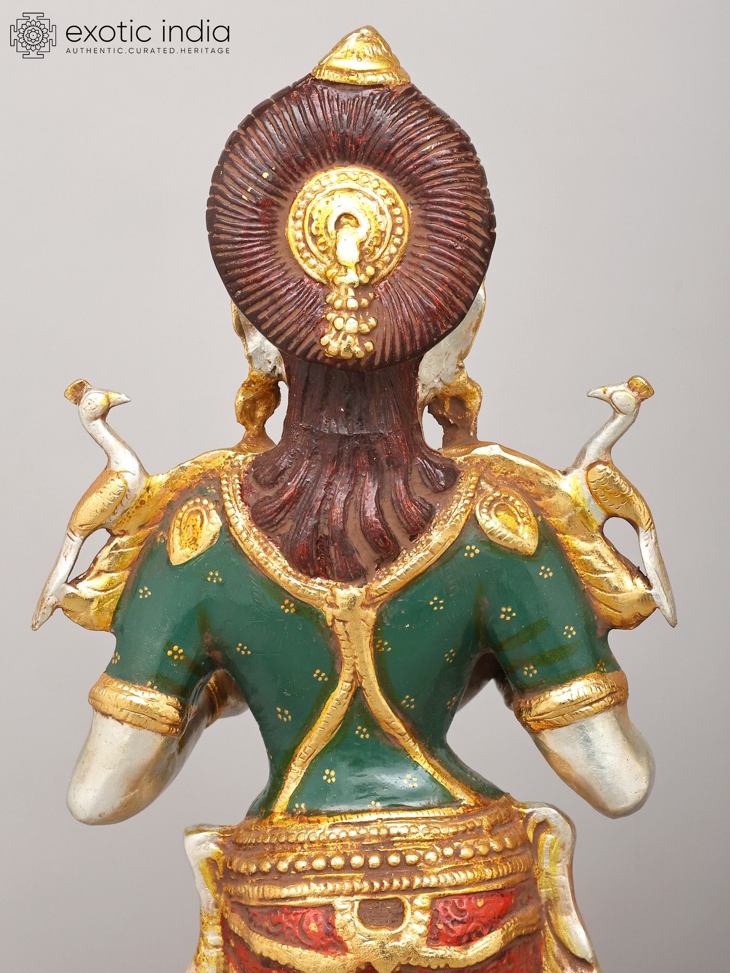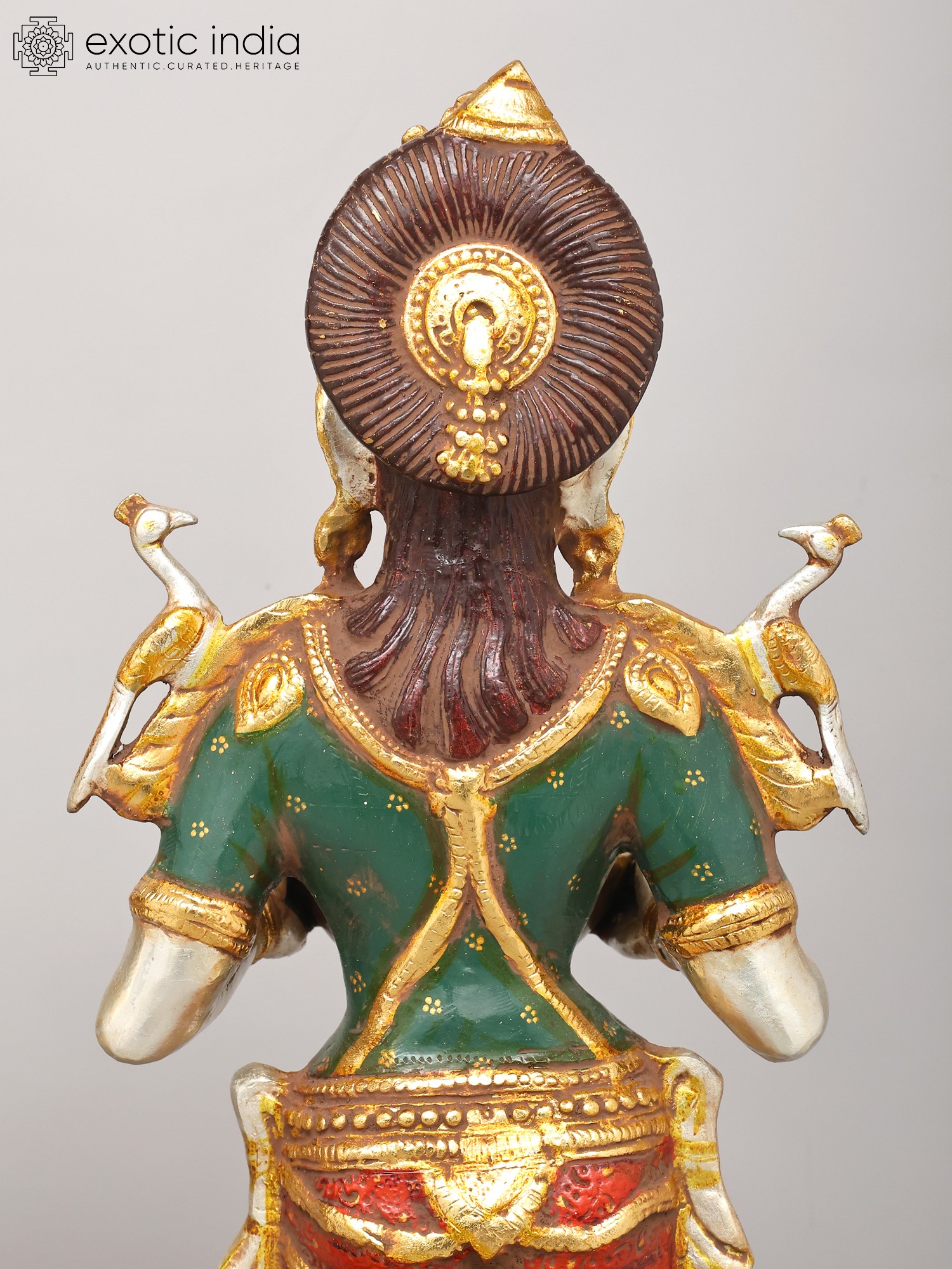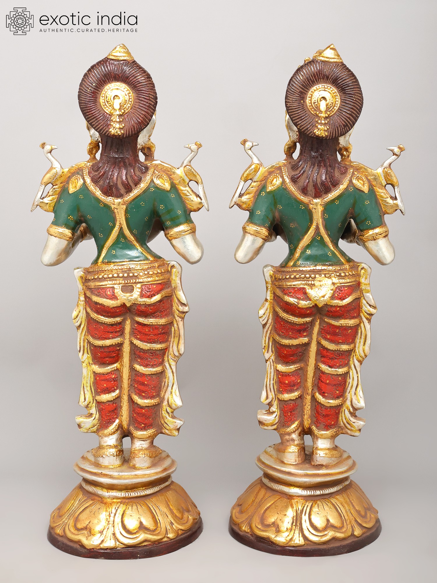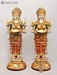 9" Brass Ganesha Lakshmi and Saraswati (Set of Three Statues) with Inlay Work