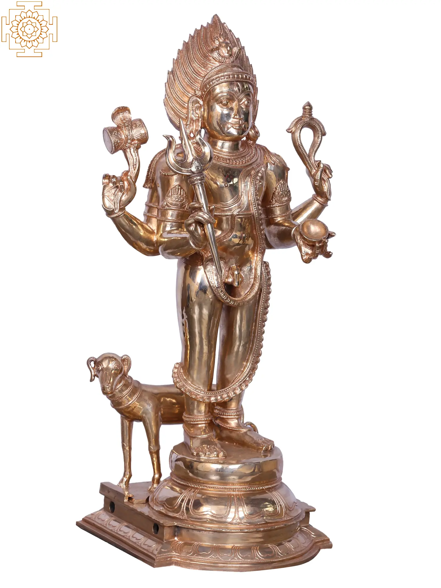 23'' Hindu God Bhairava With Vahana Dog | Bronze