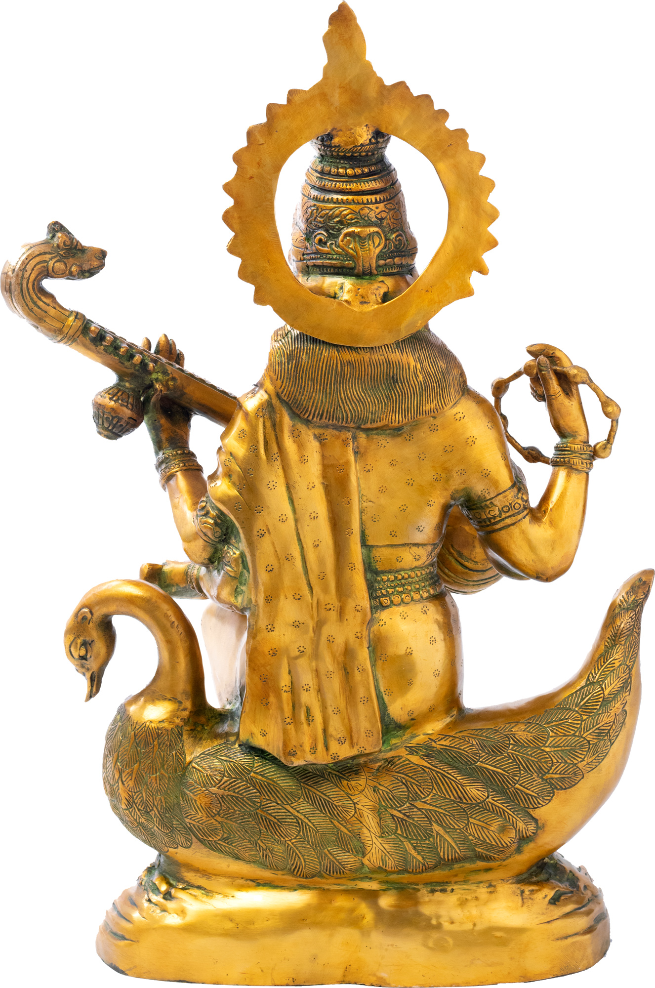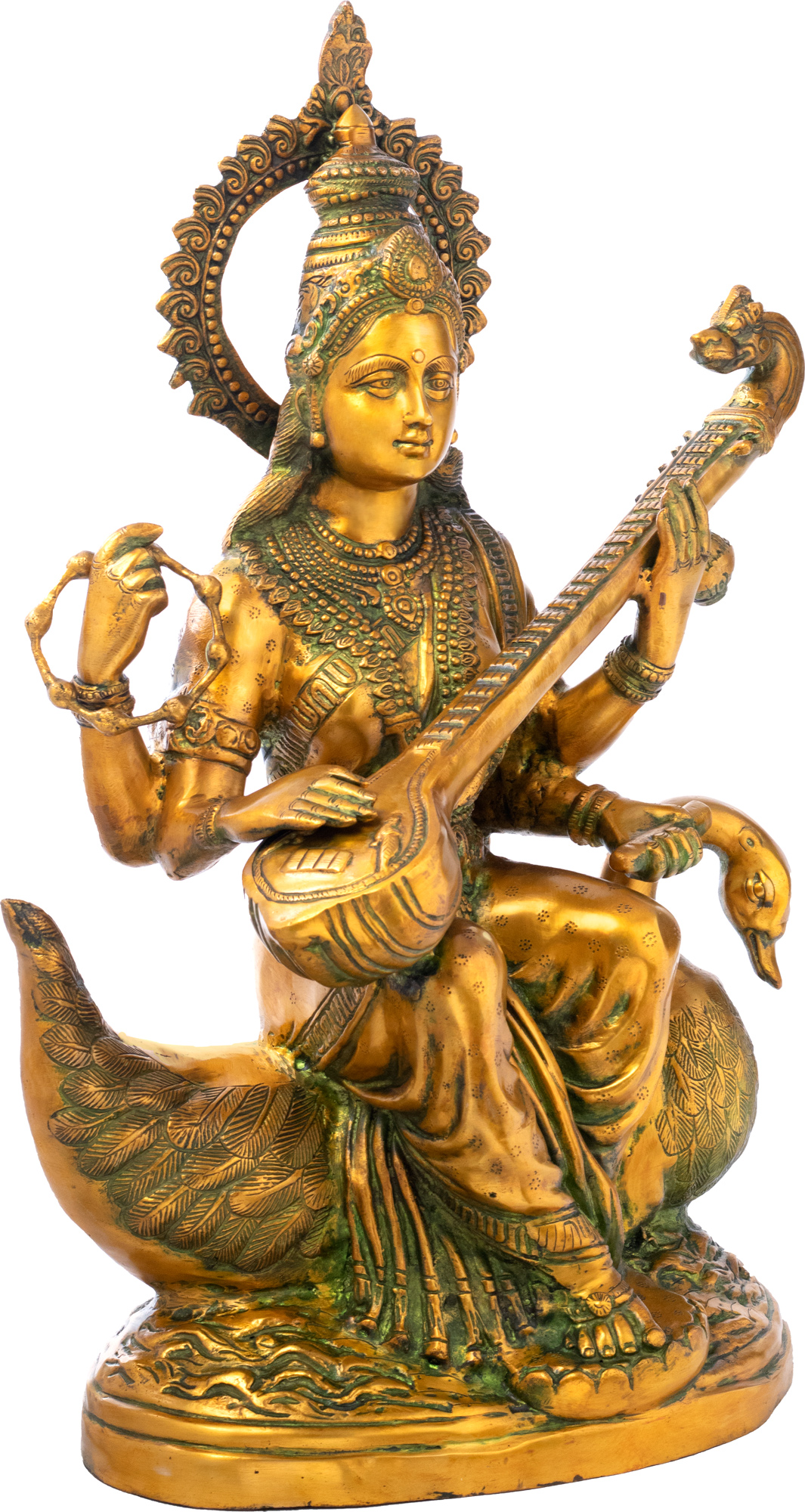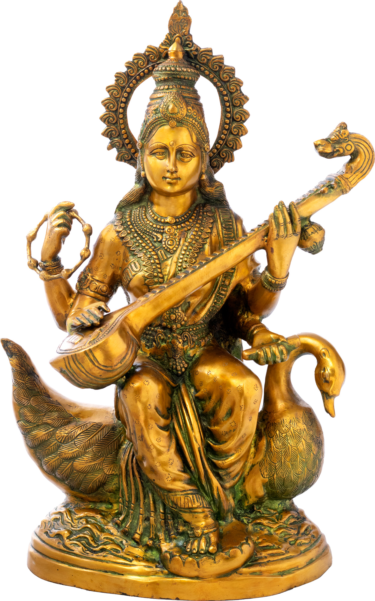 As the wife of Lord Brahma, the deity responsible for creative projection, She is the presiding deity over learning and the fine arts, things which are indispensable to His function. This explains why the iconography of Devi Sarasvati is incomplete without the veena.