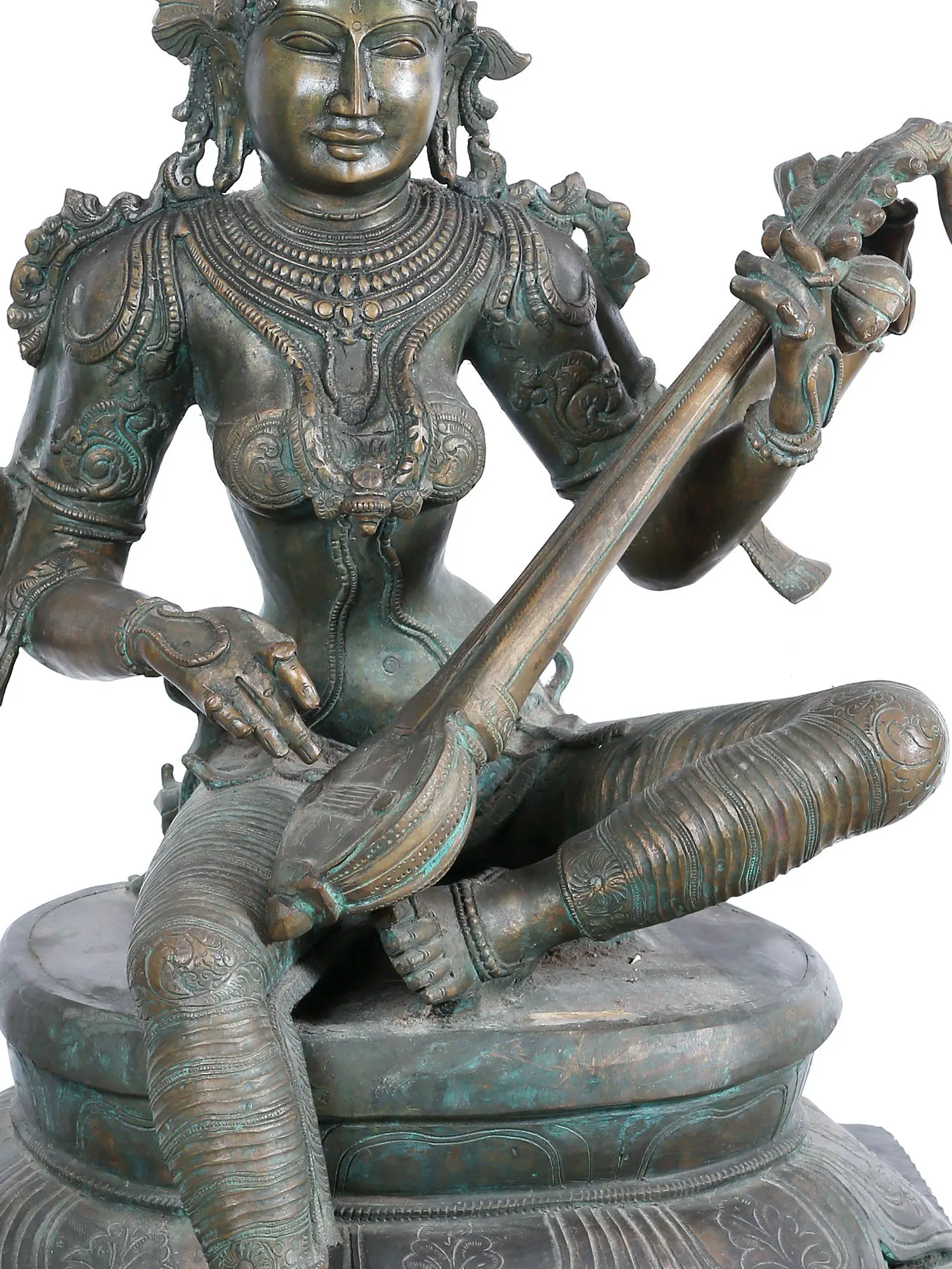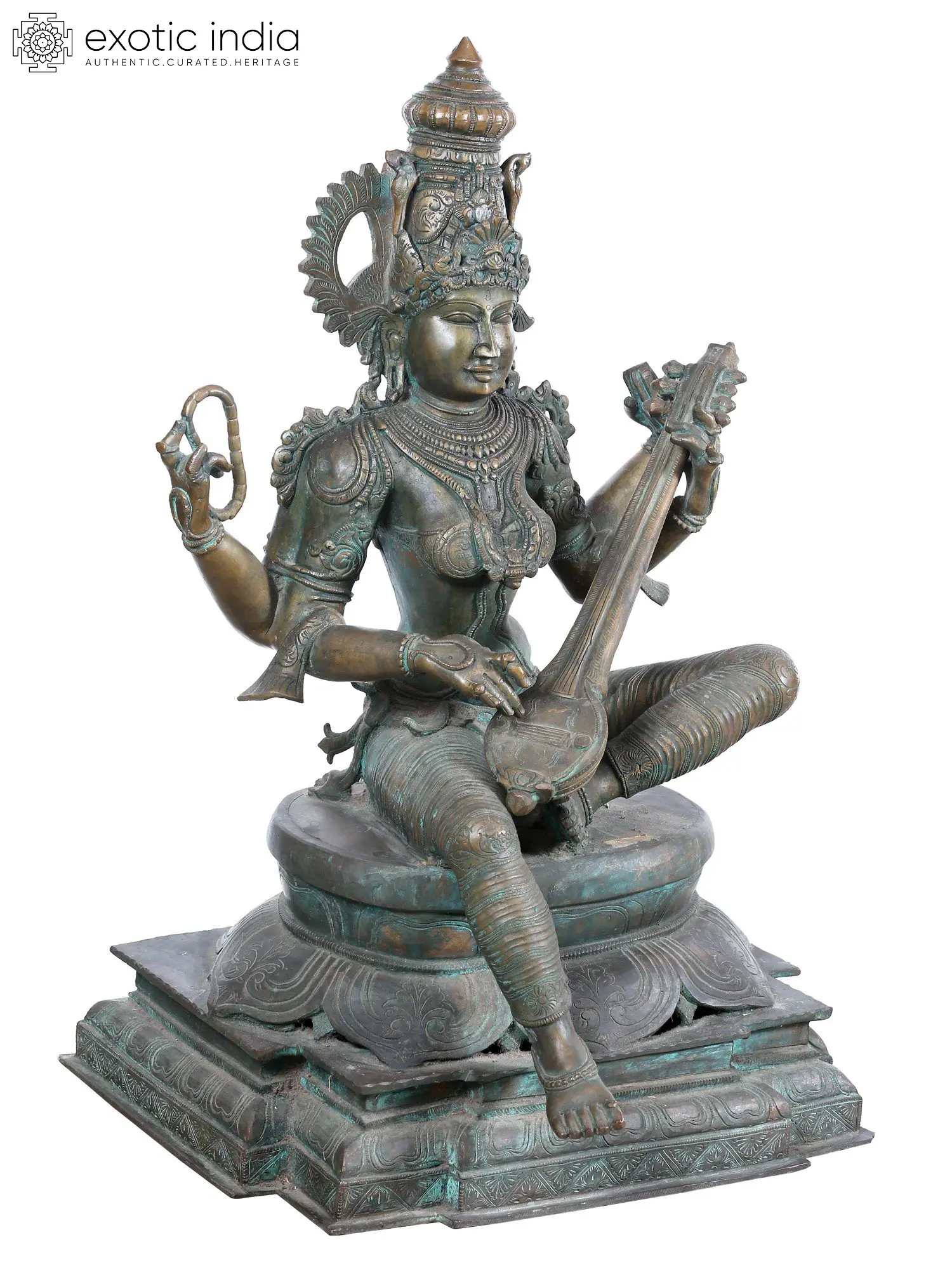 28'' Sitting Goddess Saraswati | Madhuchista Vidhana (Lost-Wax) | Panchaloha Bronze from Swamimalai