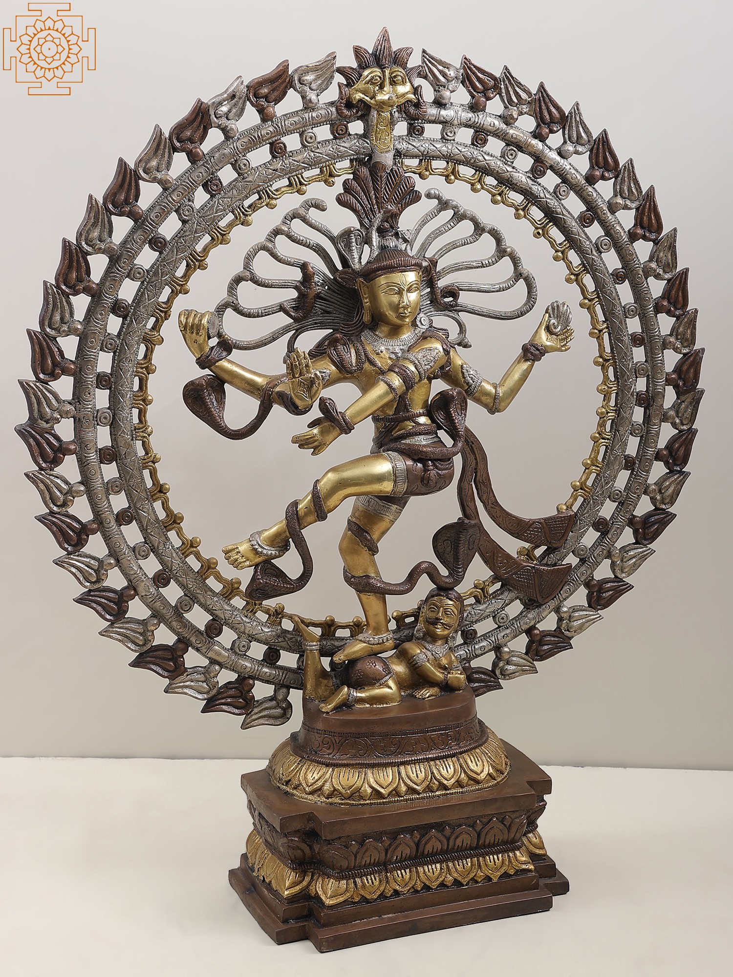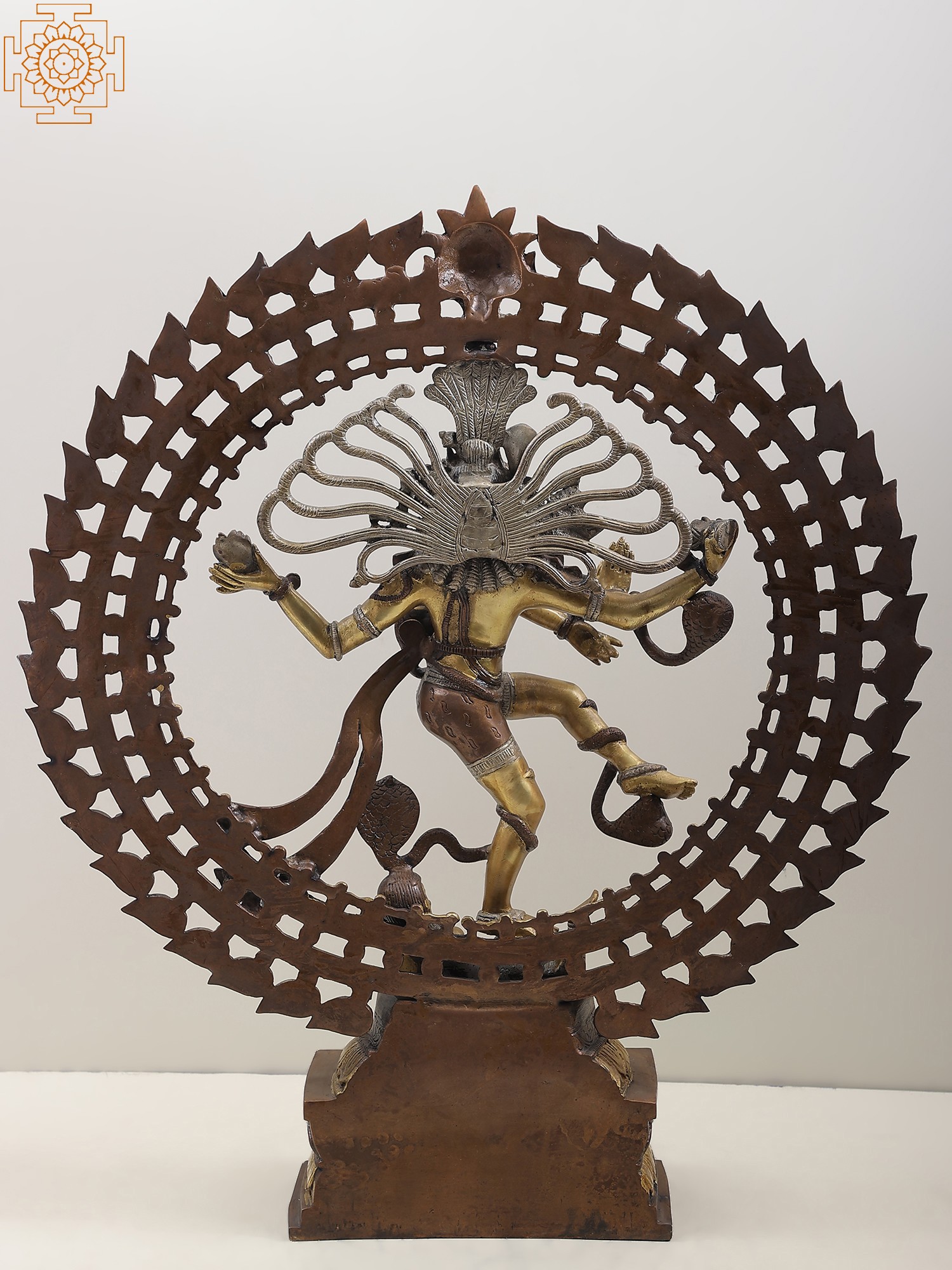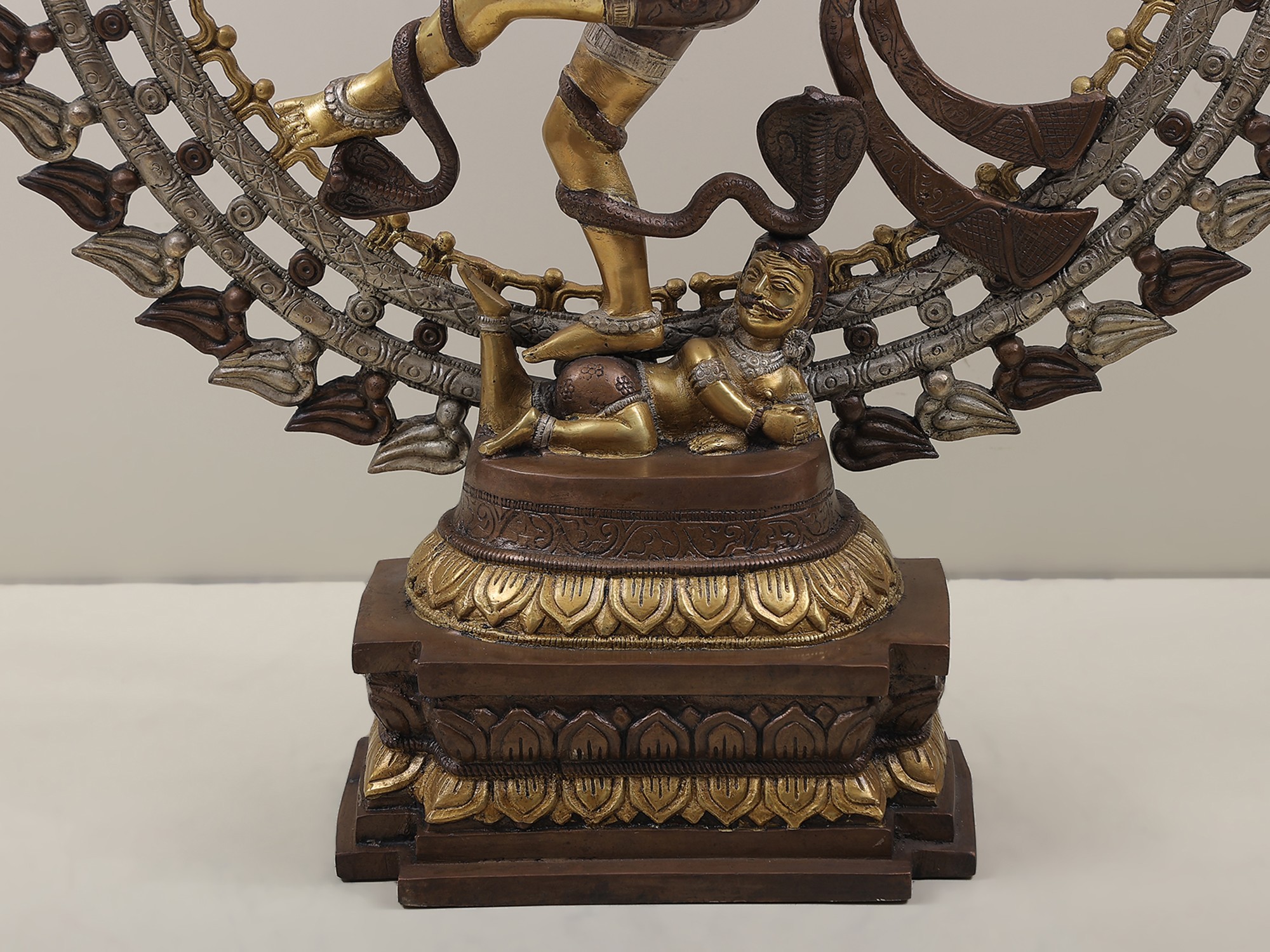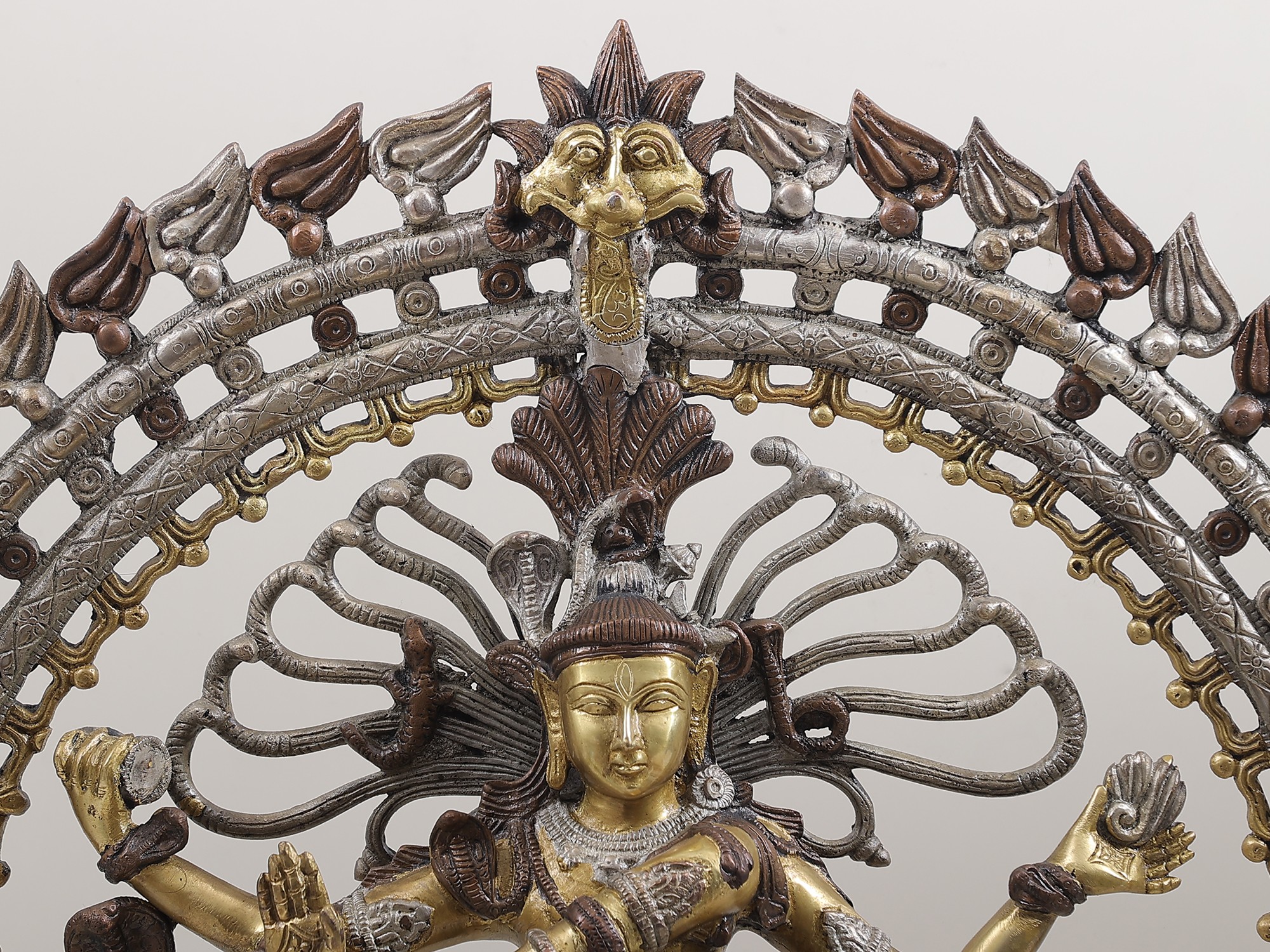 Bhagwan Shiva’s Nataraja images are characterized by an elaborate flaming aureole that effectively sets off the exquisite design of the figure’s pose.