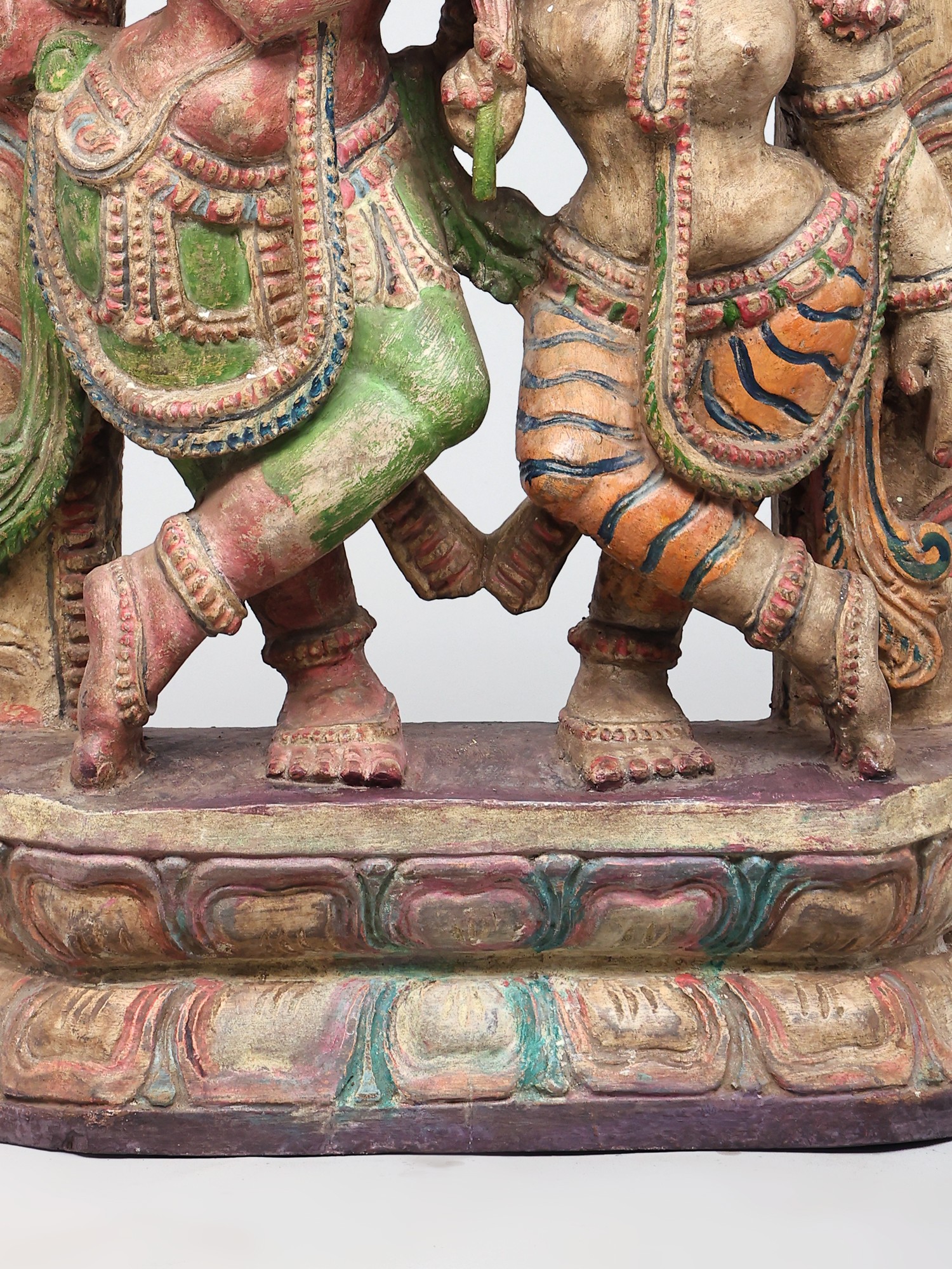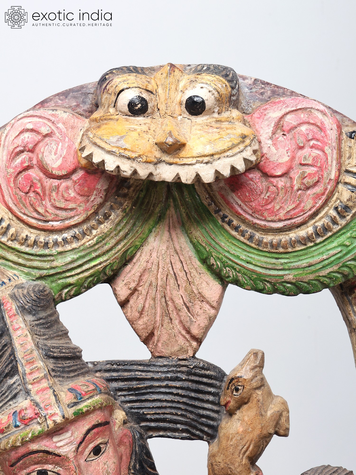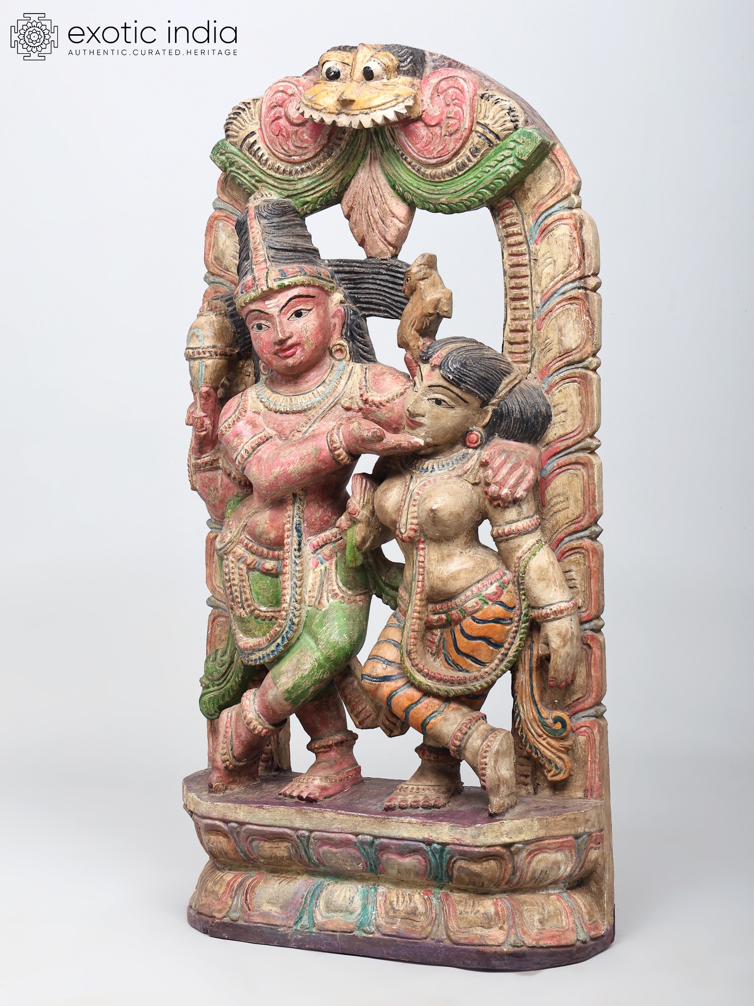 28" Wooden Lord Shiva Dancing with Goddess Parvati with Kirtimukha (Ananda Tandava)