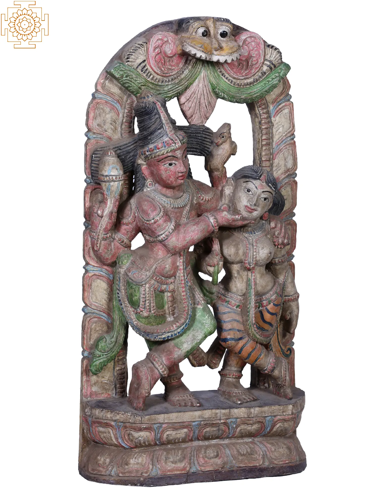 24" Wooden Standing Shiva-Parvati with Kirtimukha Throne