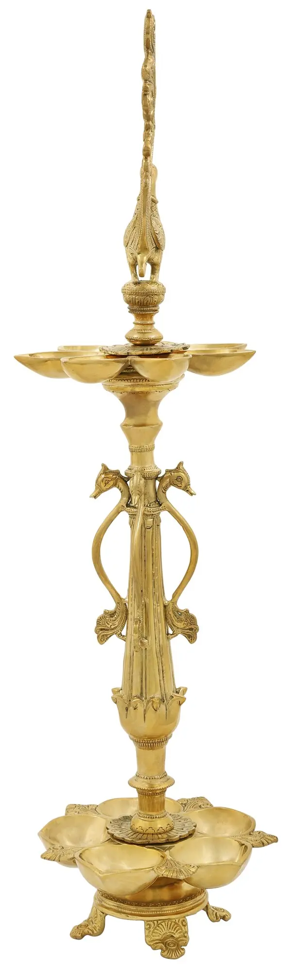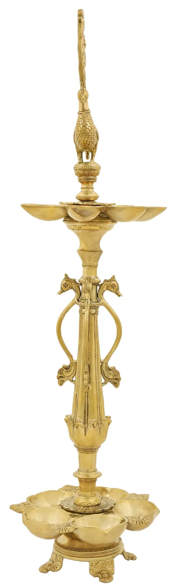 Celebrate the grandeur of worship with our Annam Multi Wicks Lamp - this brass lamp is a masterpiece that adds opulence to your sacred rituals. With its multiple wicks, it radiates warmth and positivity, creating an atmosphere of serenity and devotion. The intricate design and craftsmanship reflect the rich tradition of Hindu rituals. Cheer the divine energy with this Annam Multi Wicks Lamp, a symbol of grandeur, spirituality, and the beauty of devotion.