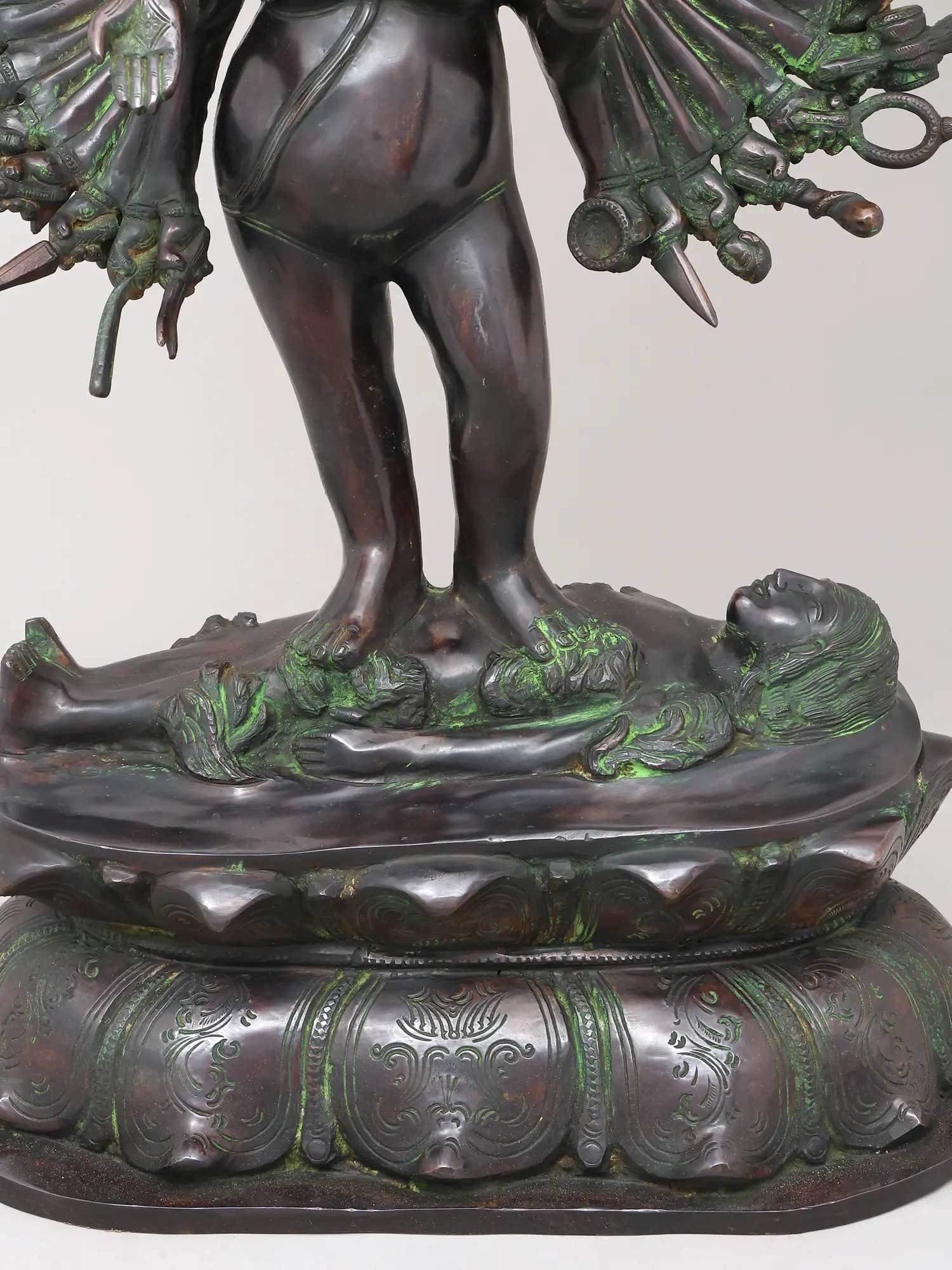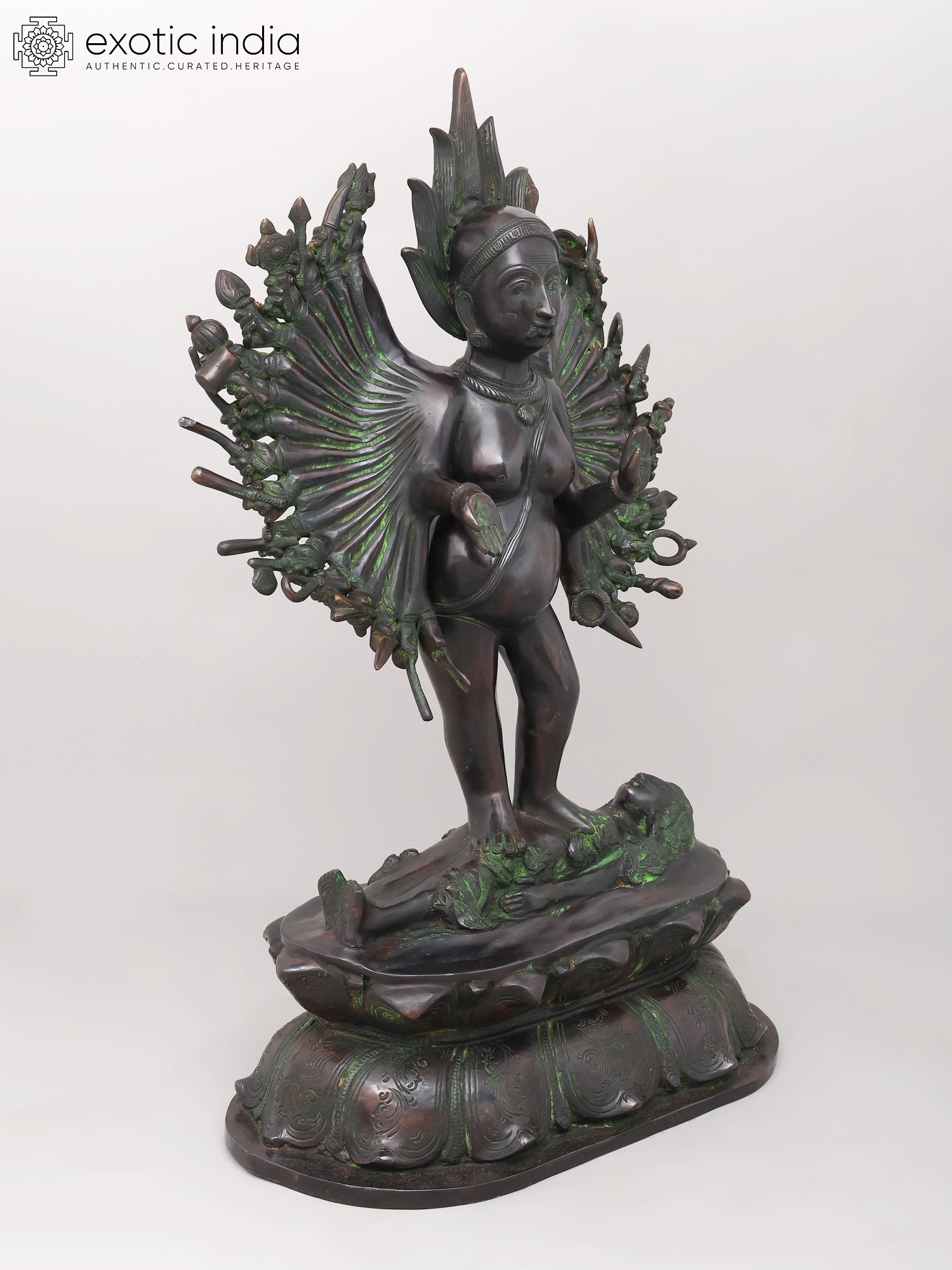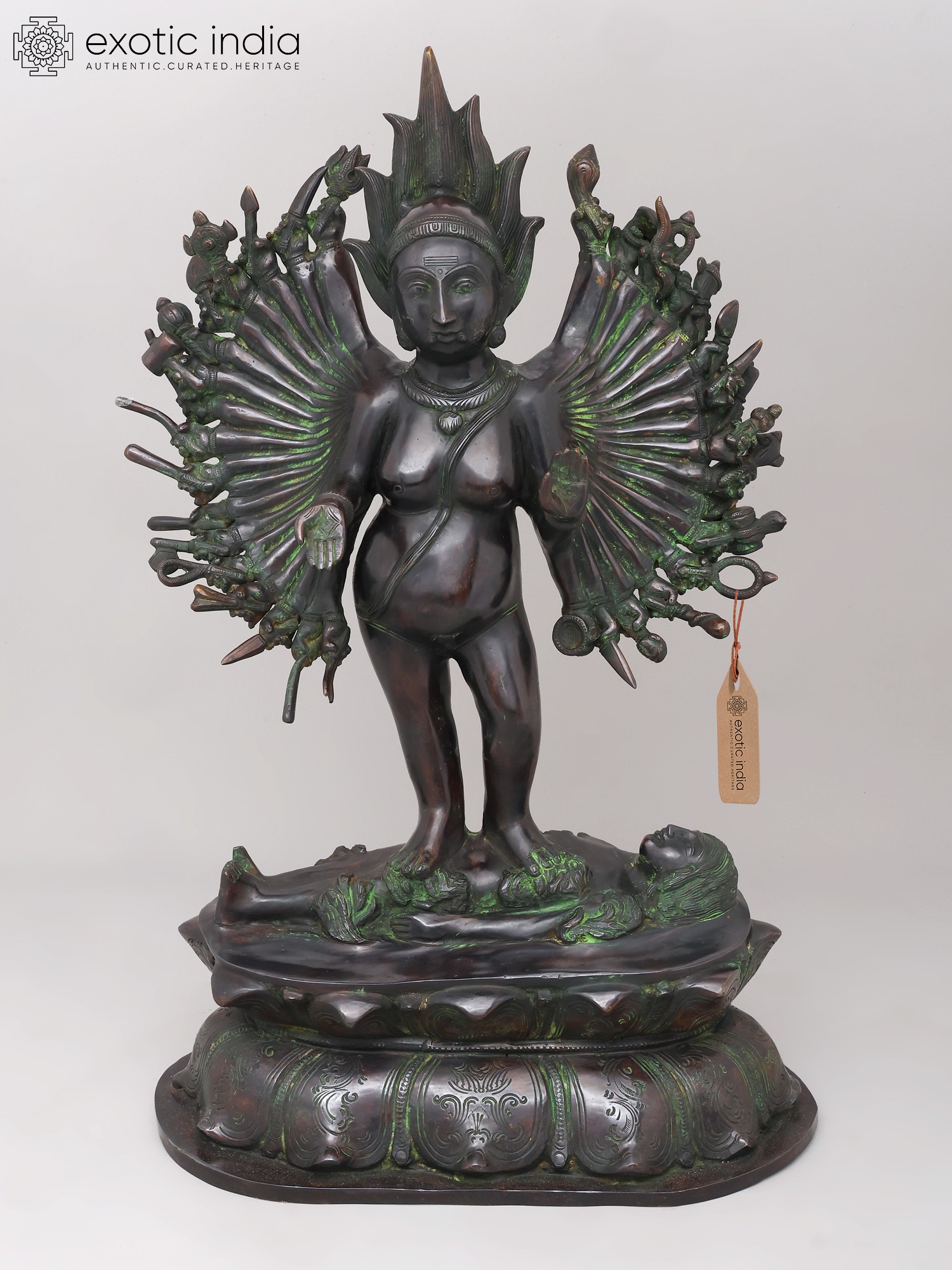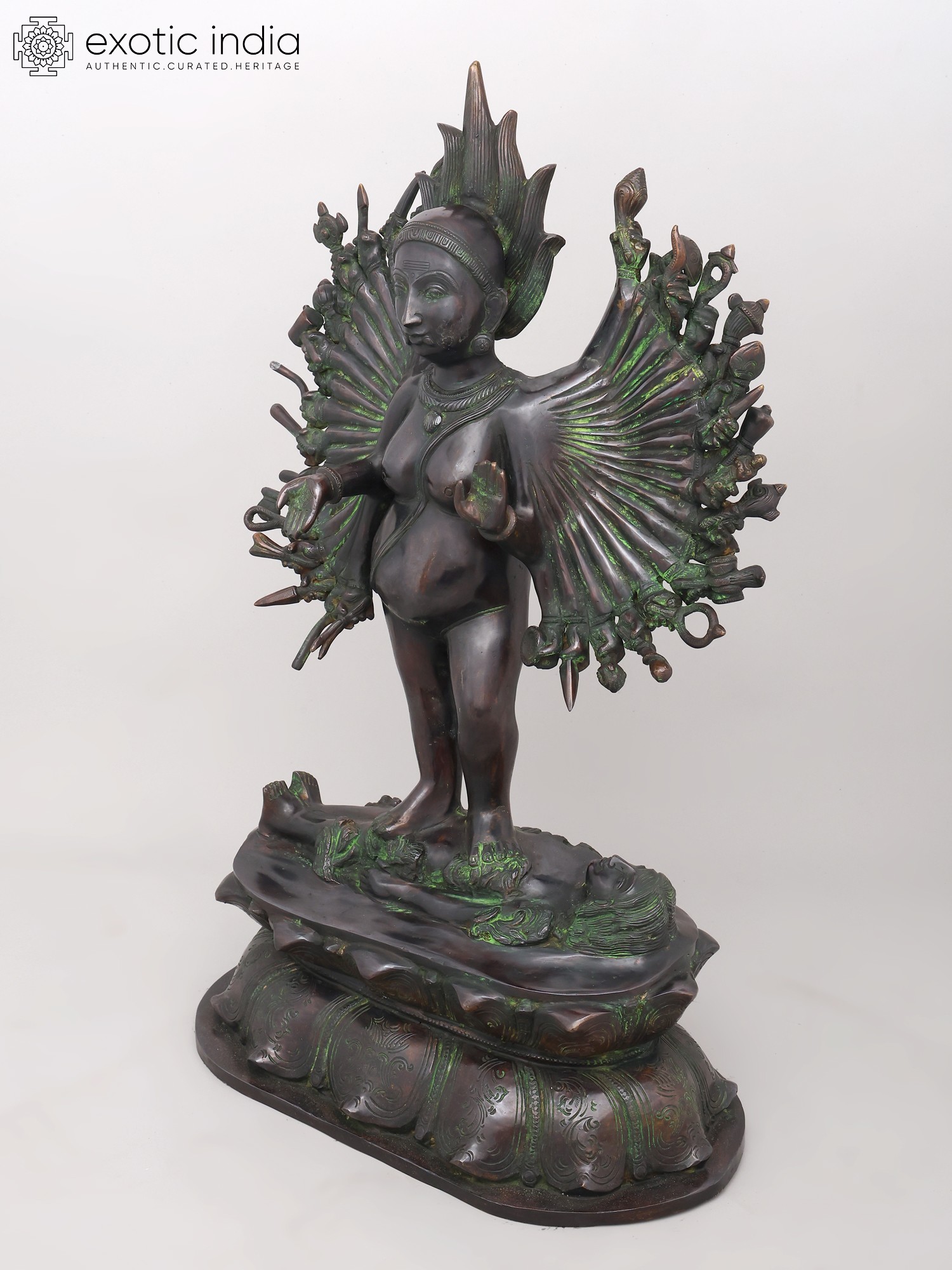 19" Ten-Armed Black Kali, or Mahakali In Brass | Handmade | Made In India