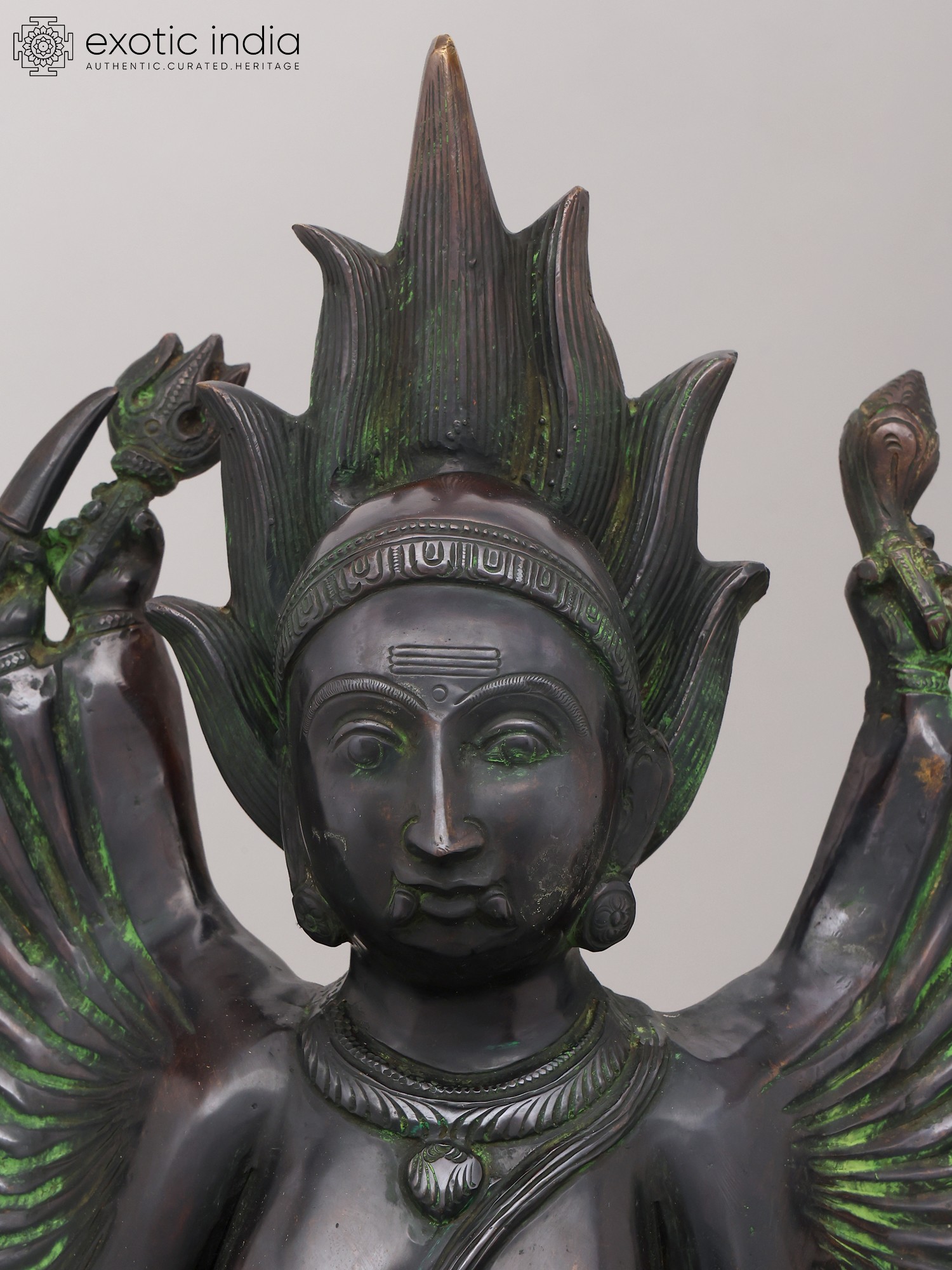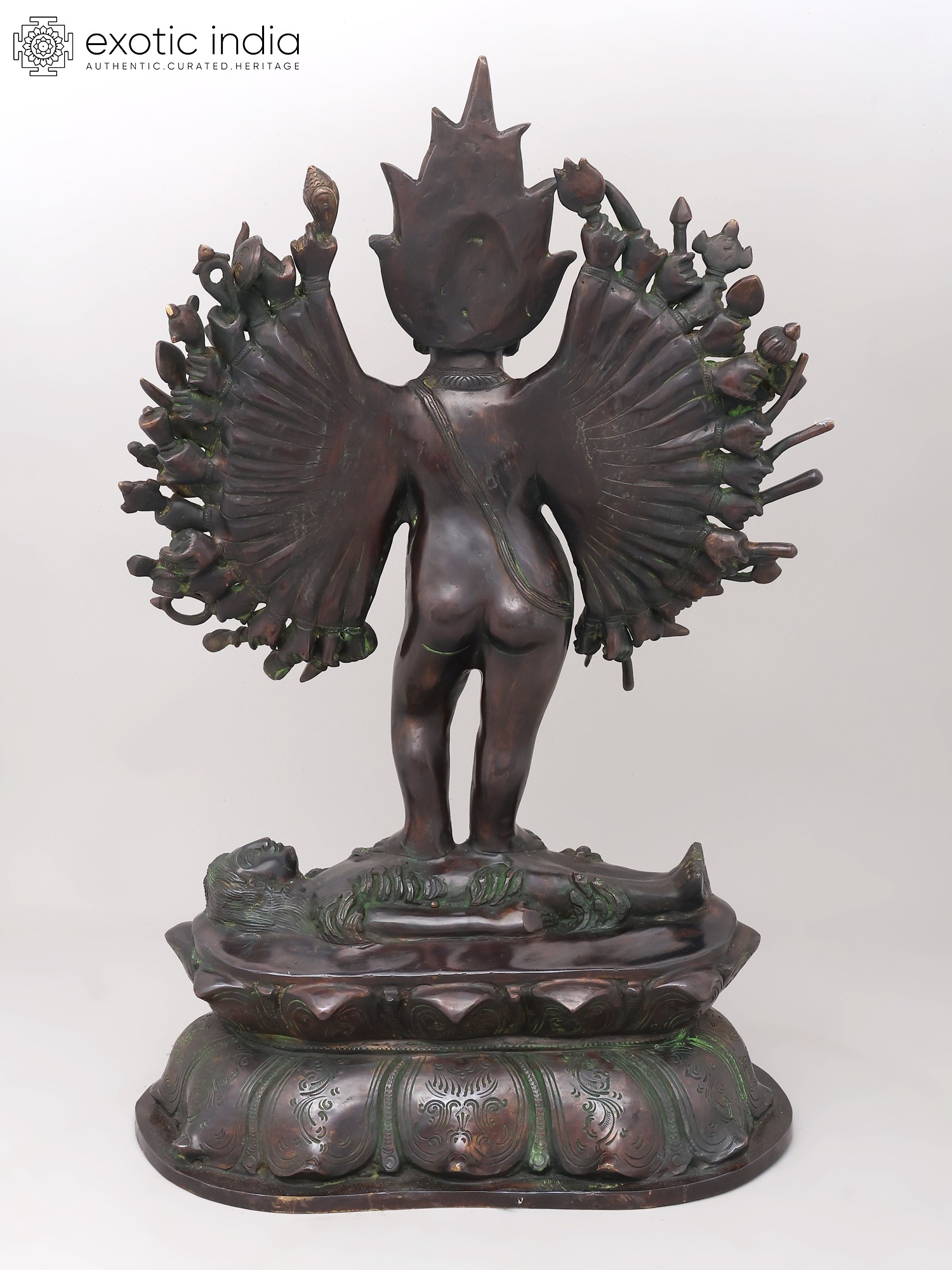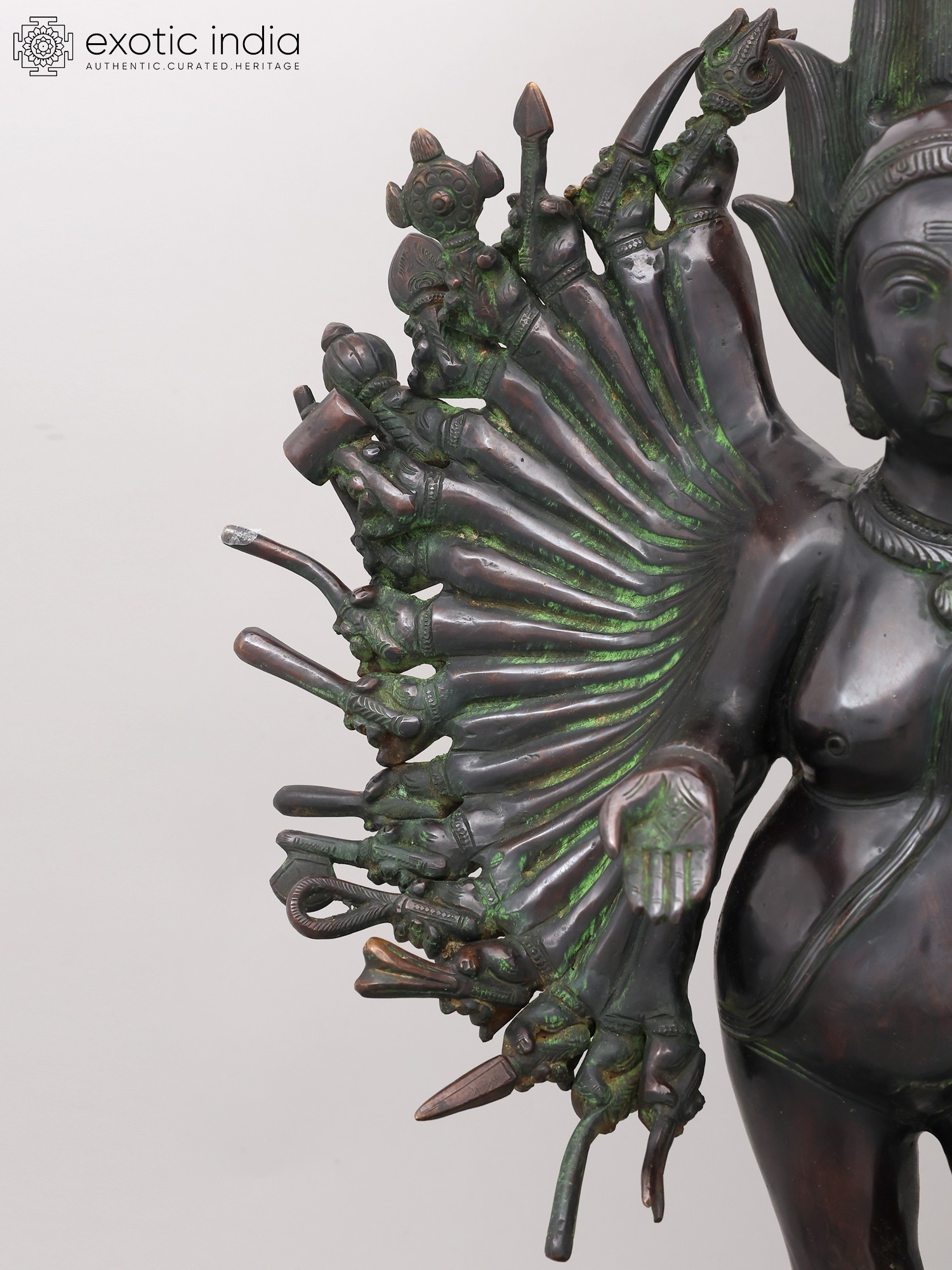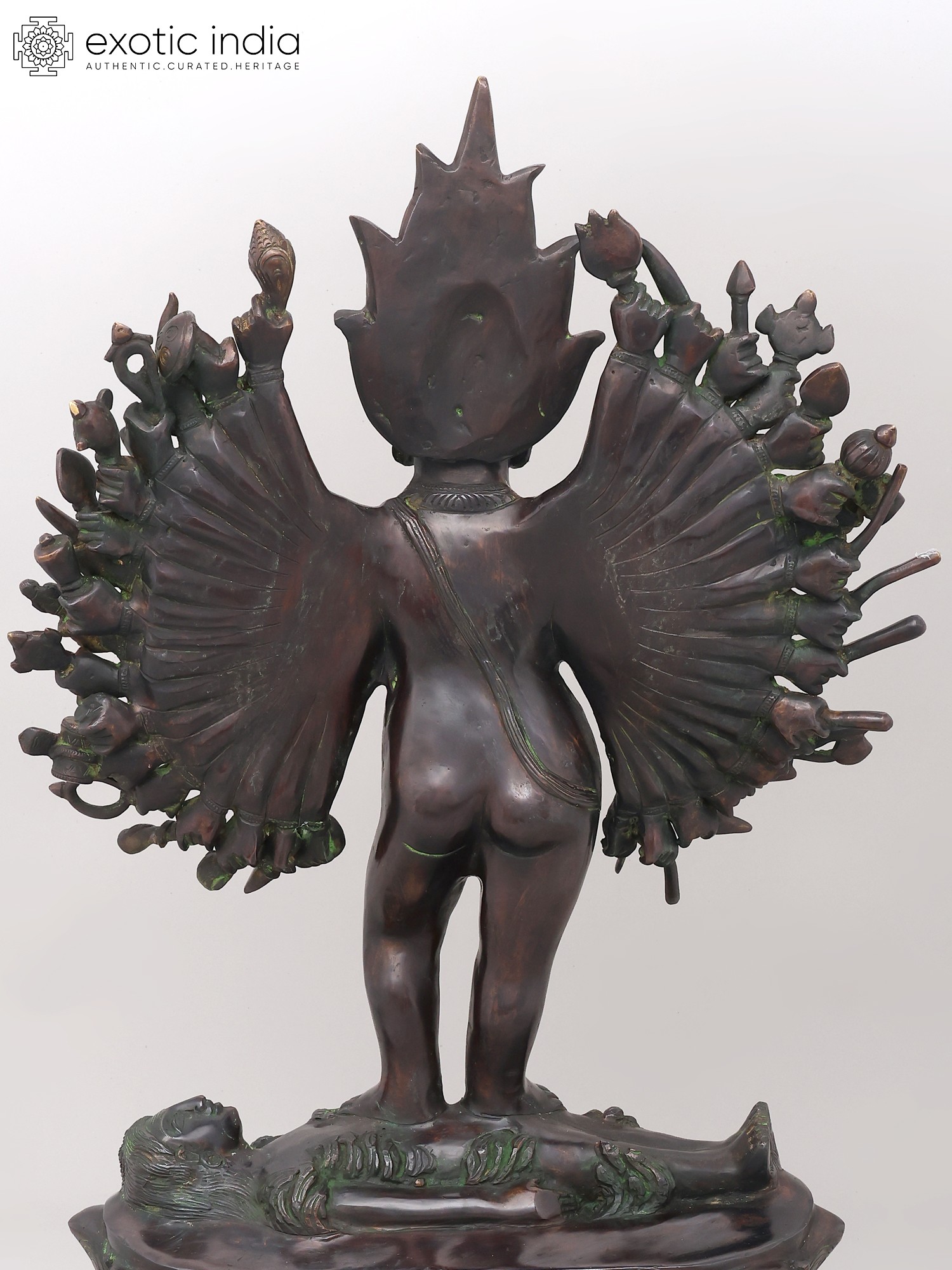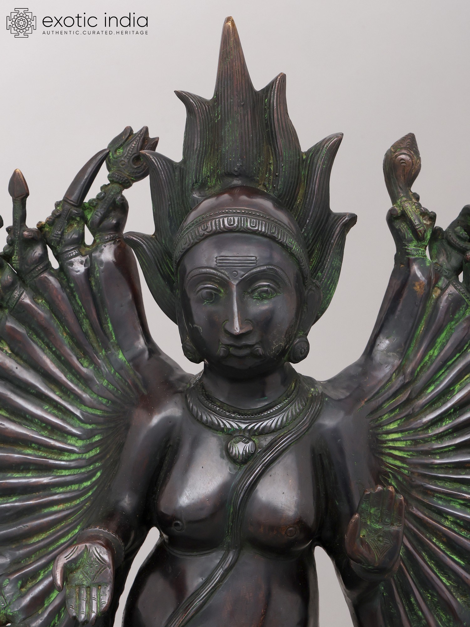 19" Ten-Armed Black Kali, or Mahakali In Brass | Handmade | Made In India