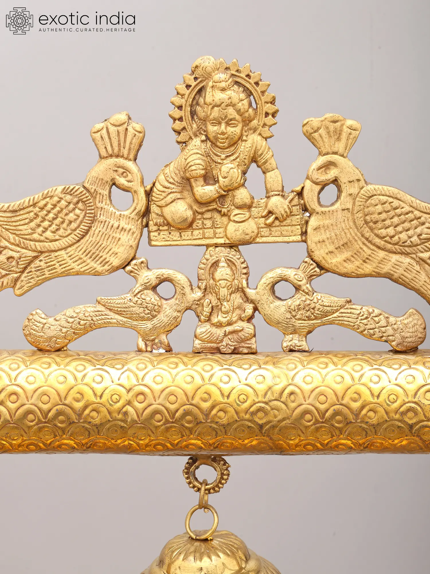 27" Swinging Lord Ganesha Brass Urli with Miniscule Peacock Lamps | Handmade | Made in India