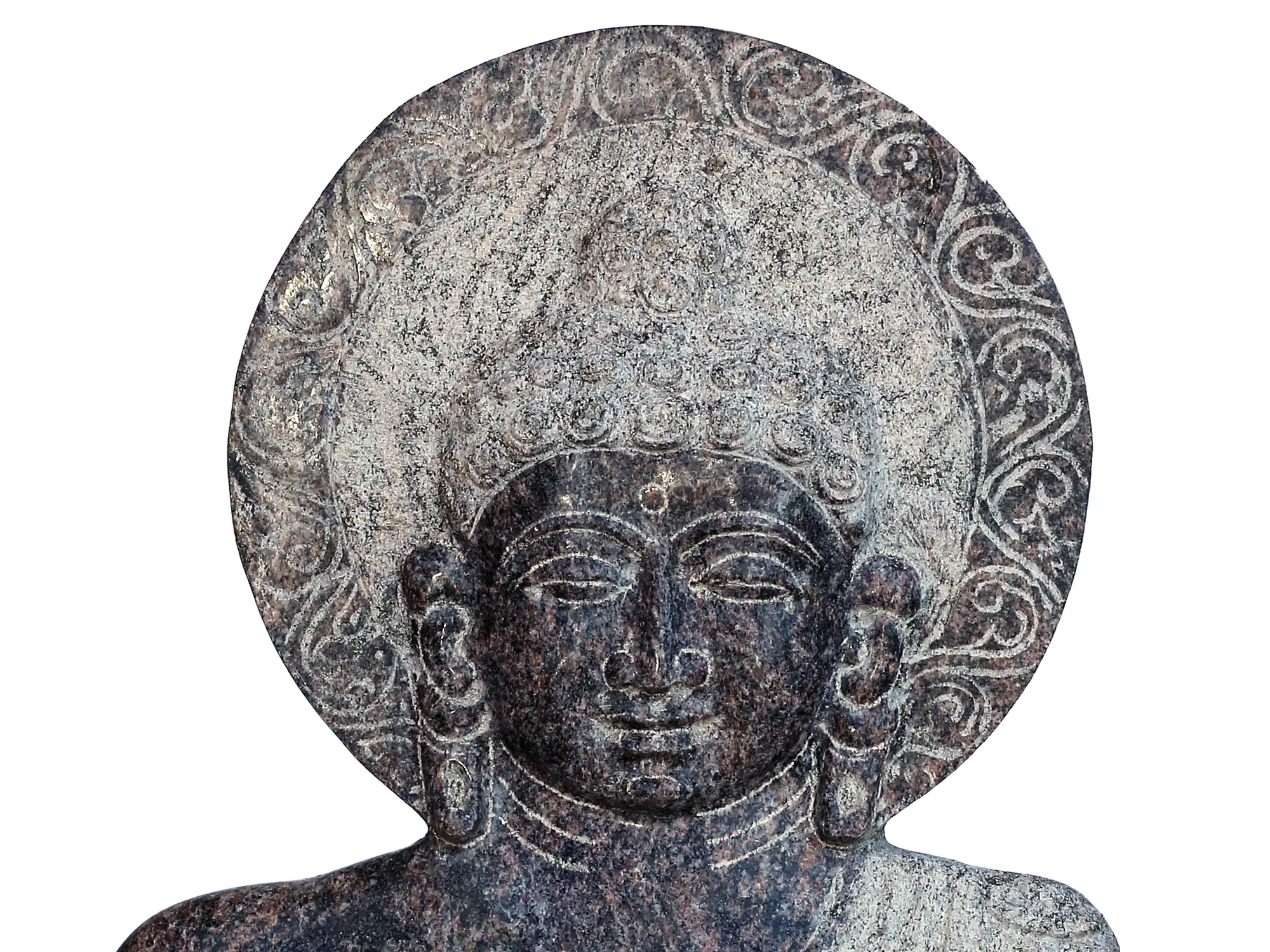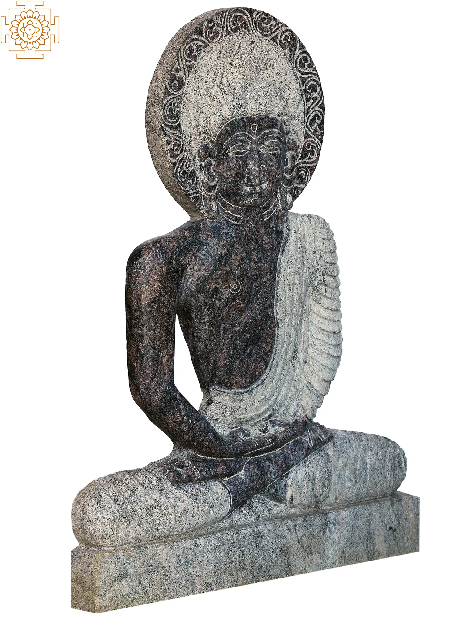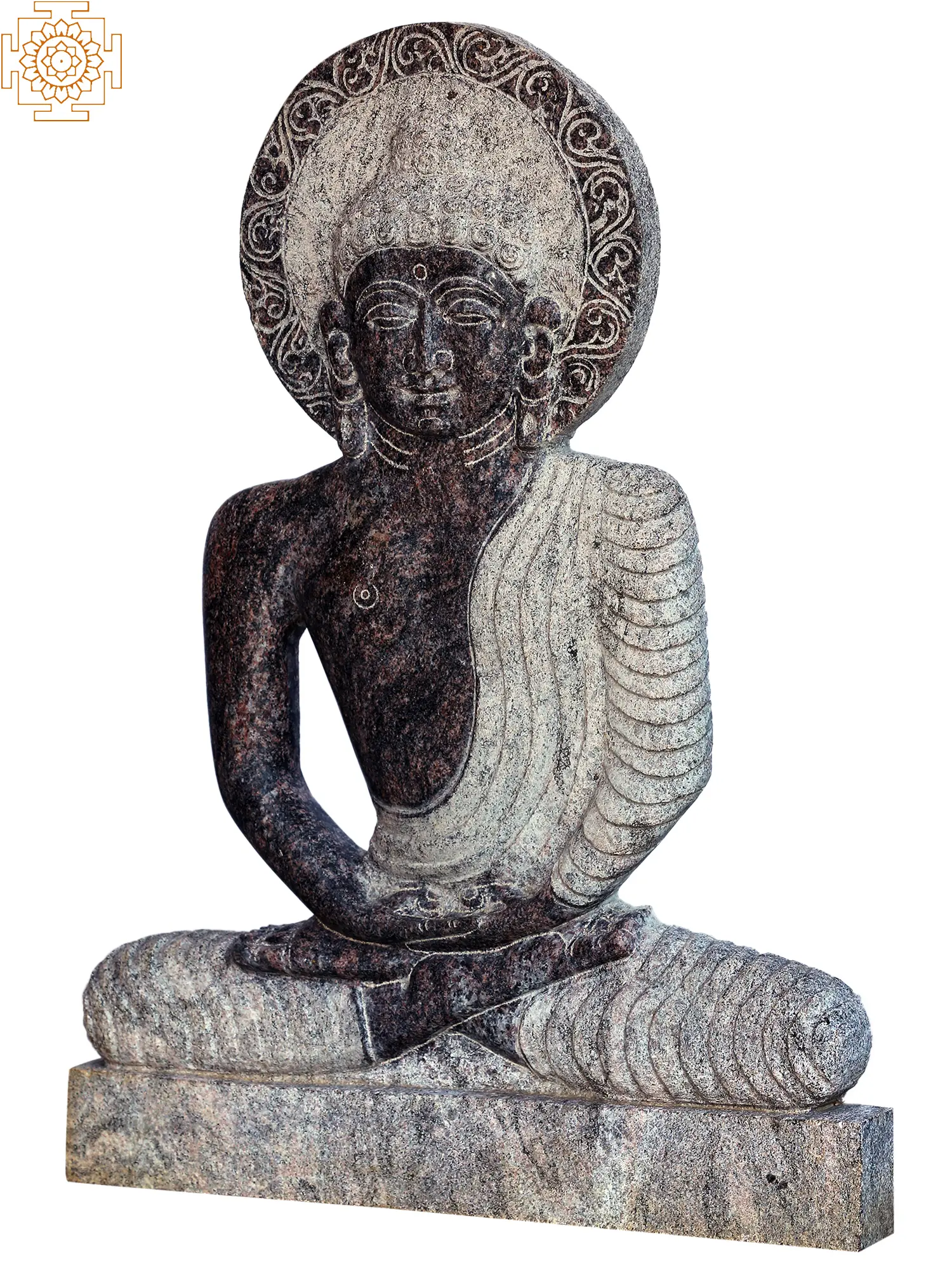 Seated in a leg-crossed posture, hands placed in Dhyana Mudra (meditation gesture), and eyes half closed, the statue radiates a sense of calm and mindfulness.