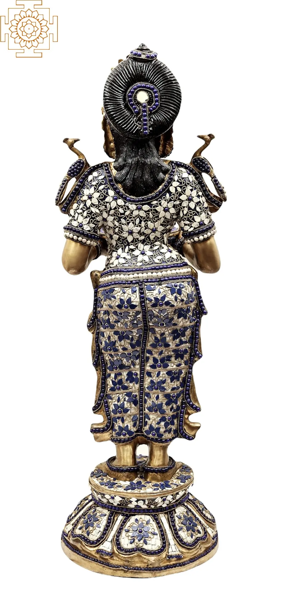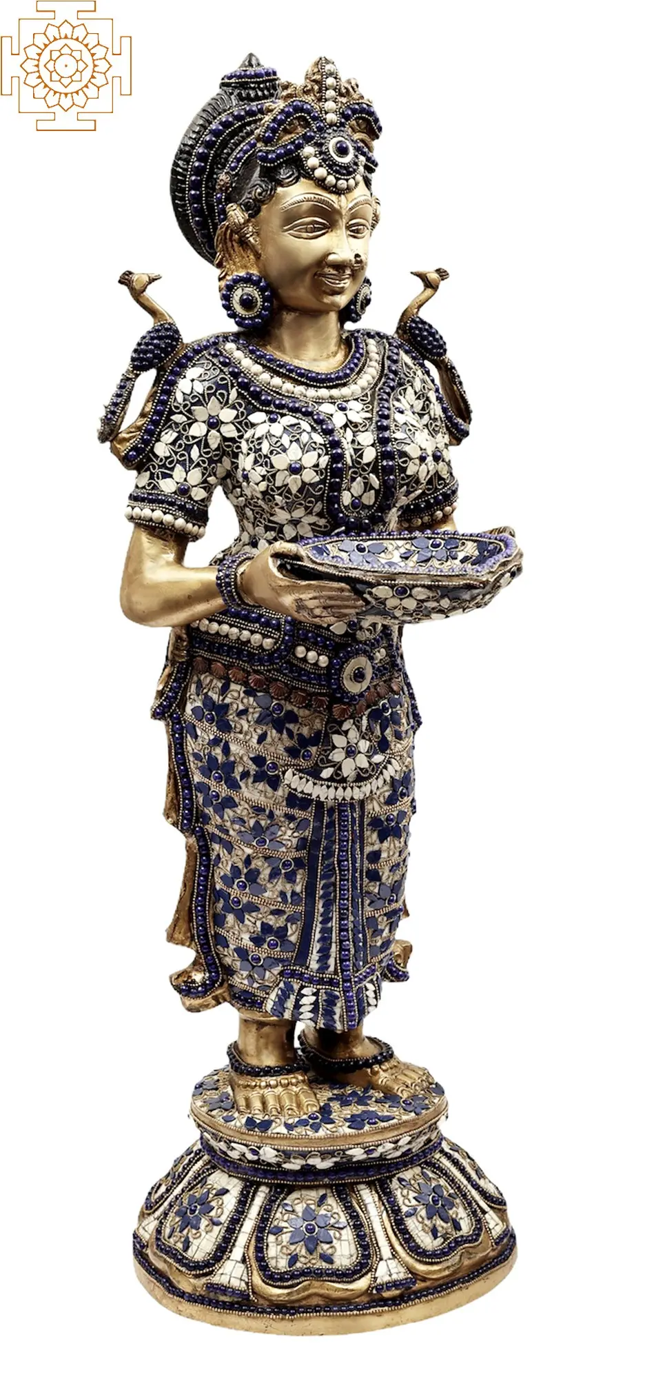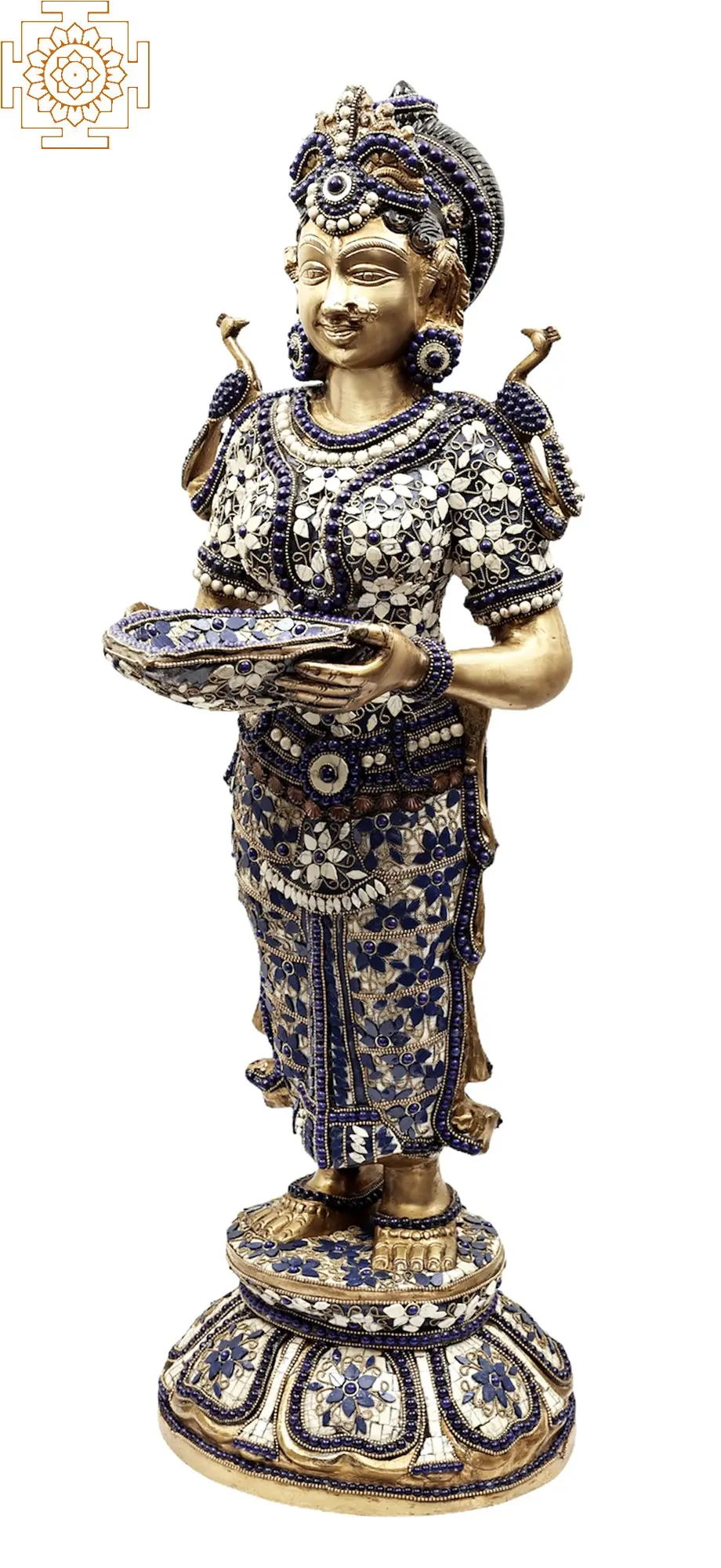 29" Paavai Vilakku | Deep Lakshmi | Handmade | Inlay Work | Brass Statue | Made In India