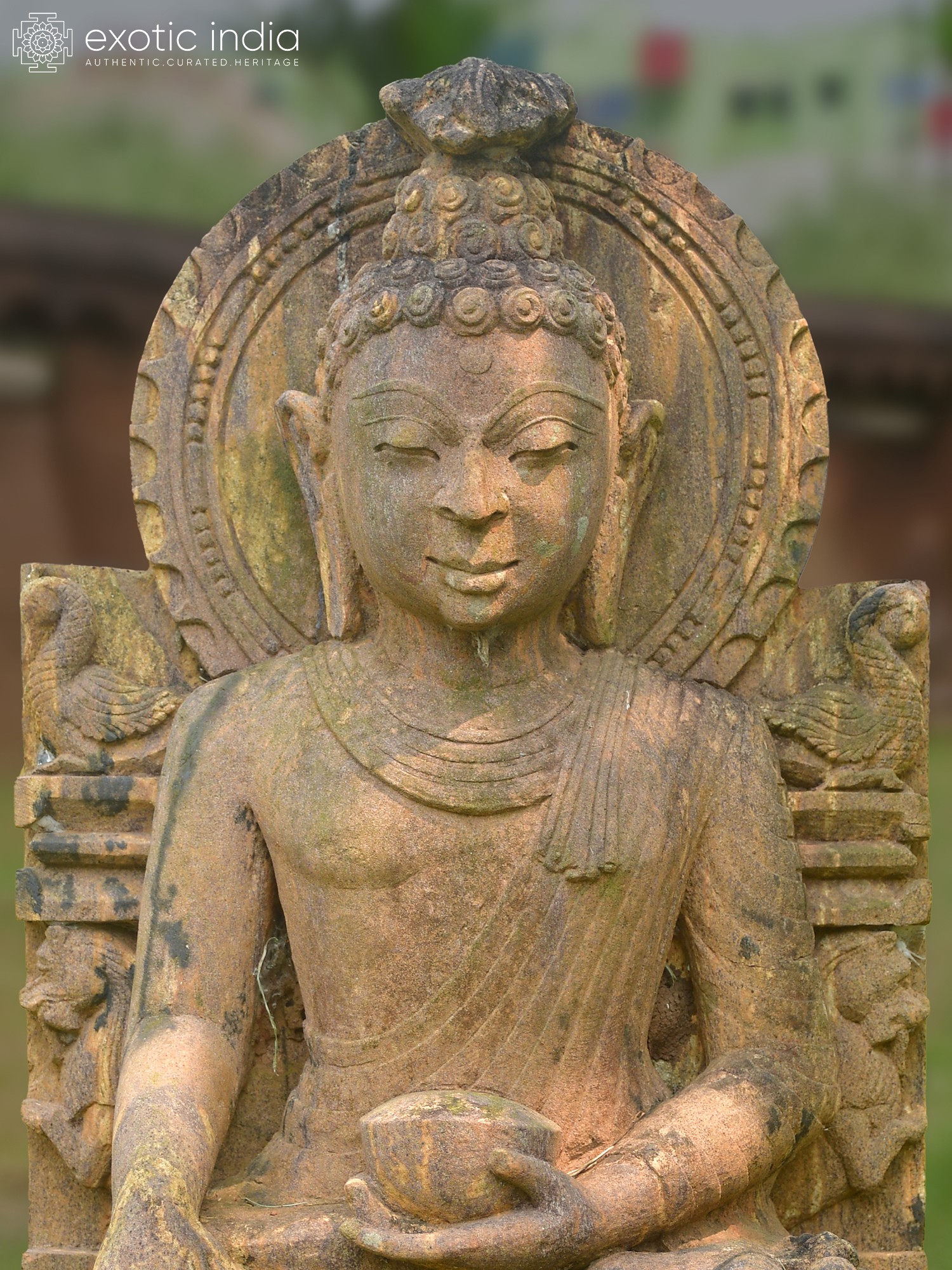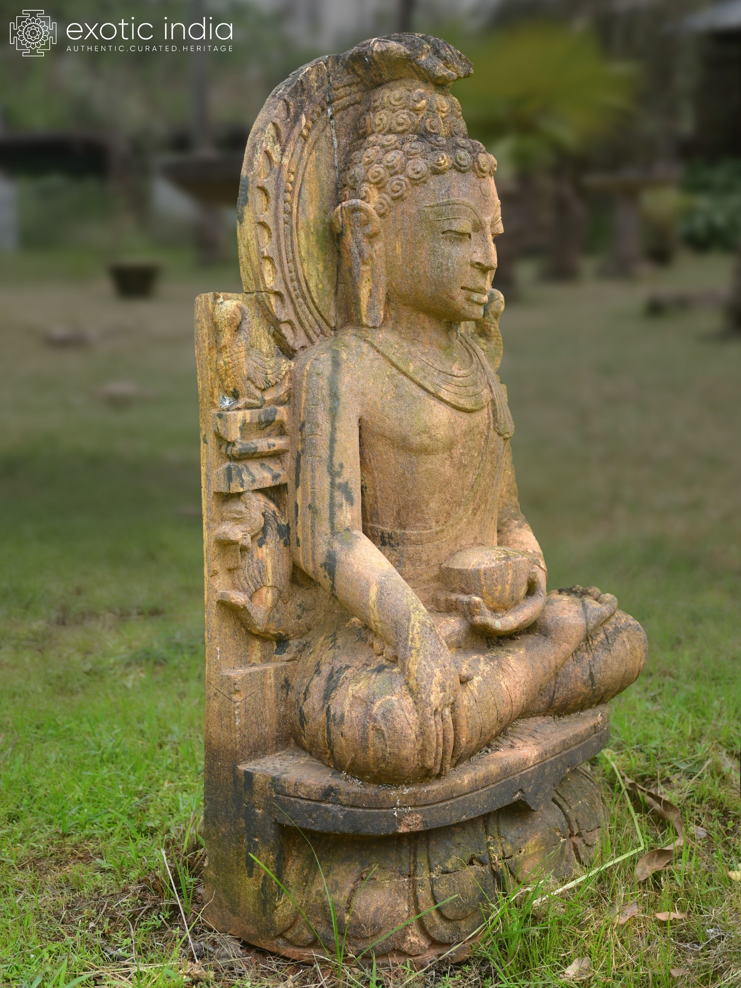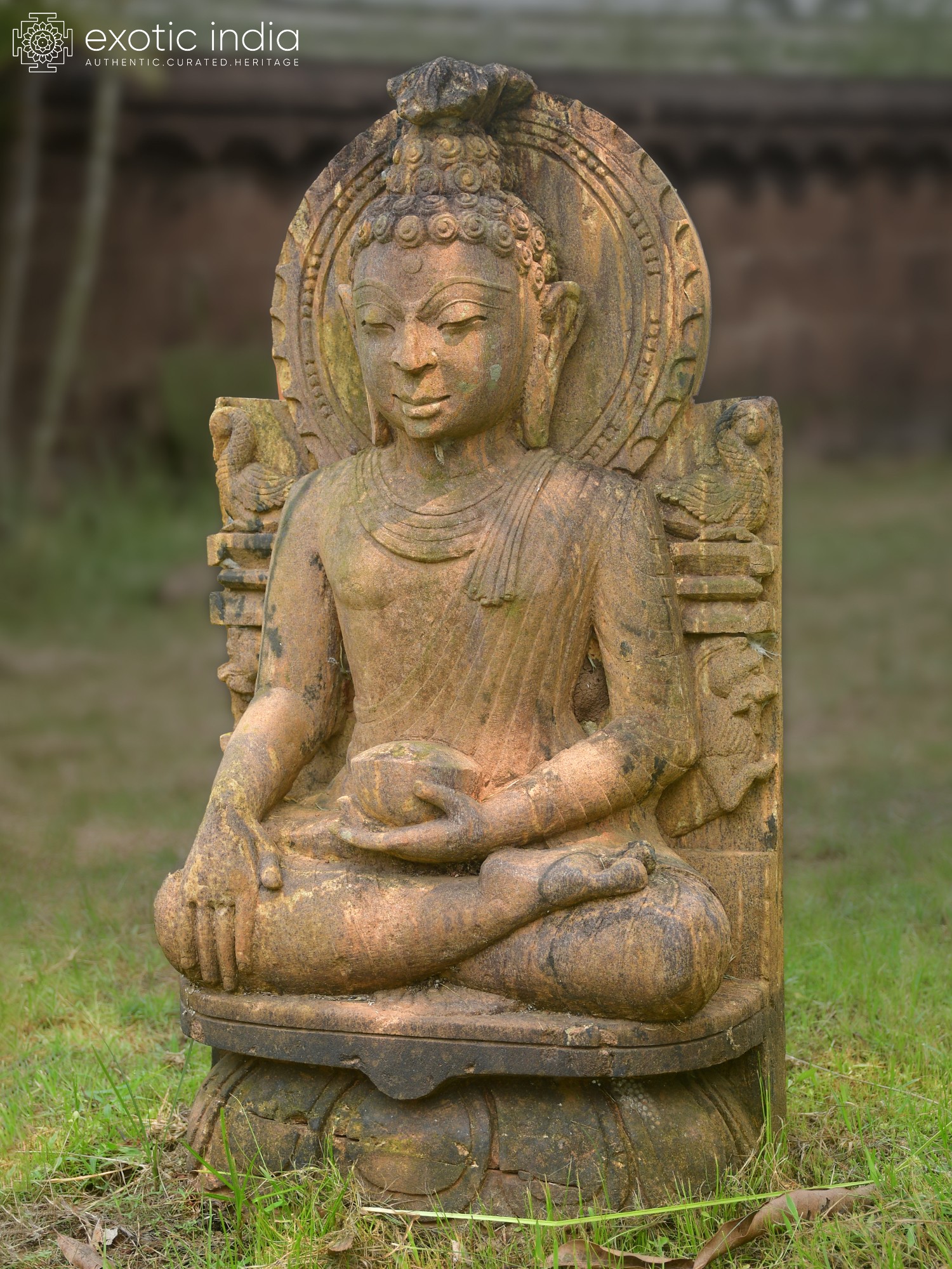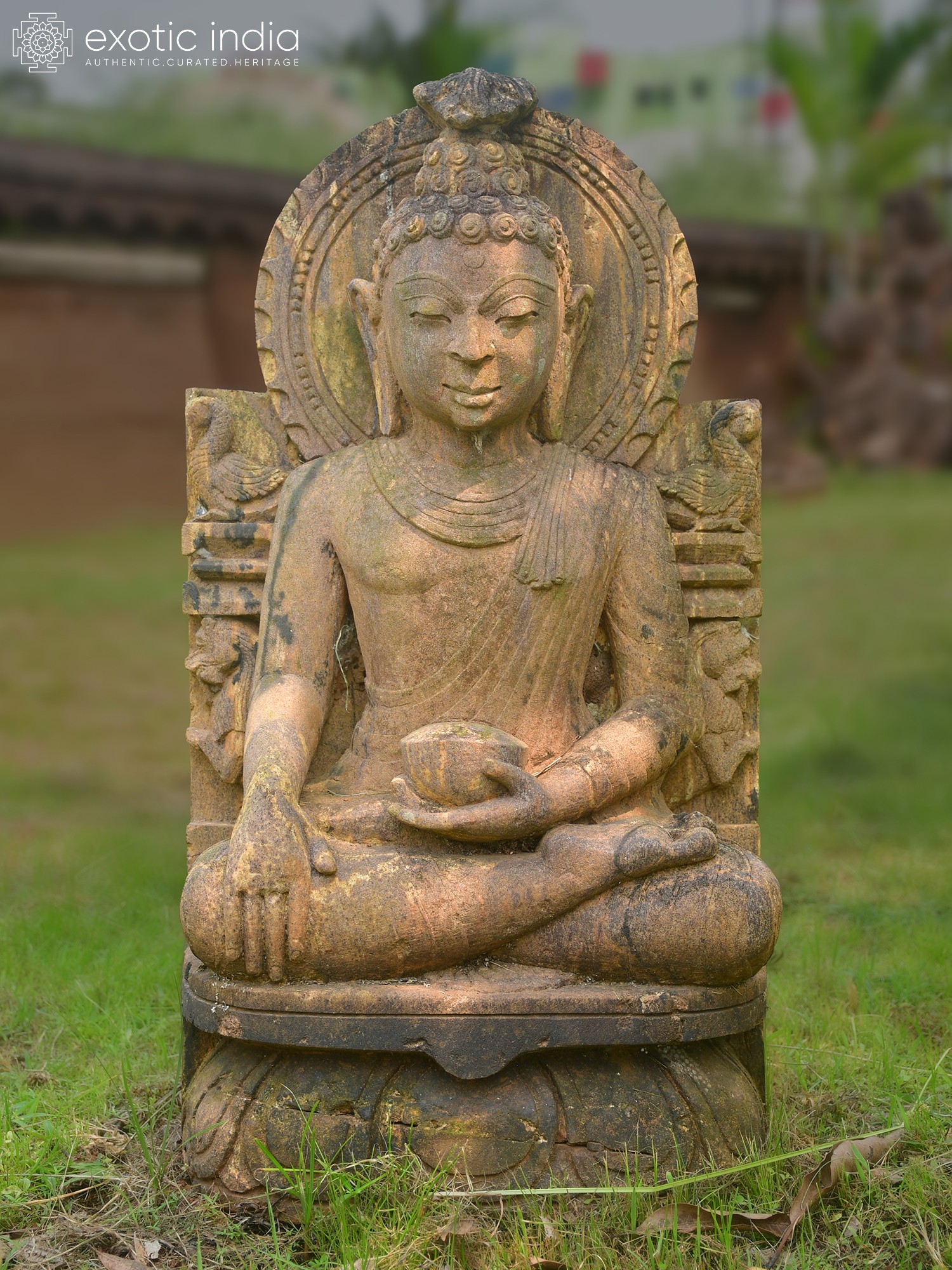24" Sitting Lord Buddha | Sandstone Statue | Exquisite Handmade Indian Art