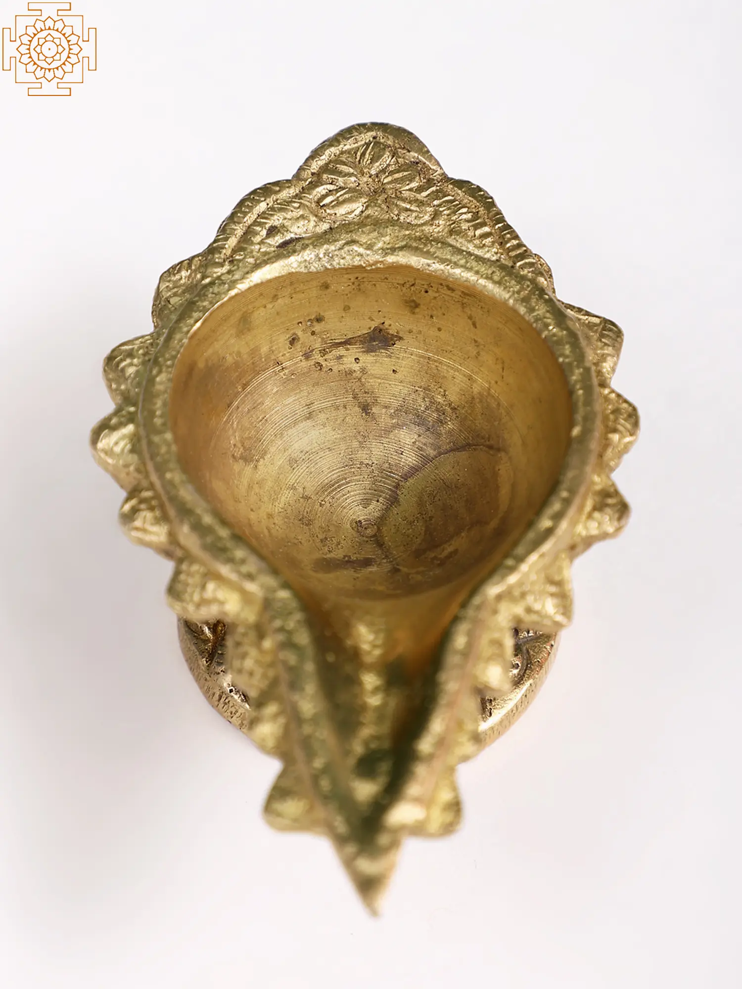 The Rigveda places the most emphasis on Agni. This deity, born of aranees, or kindling sticks, banishes darkness, frightens demons, and inspires light. He is the Supreme Counsellor, who is both ancient and forever youthful. In general, Agni is a vehicle via which reverence reaches the deities, as well as a medium through which favors reach the worshippers. Lord Agni is also honored through Yagnas and Homas. The lamps, which are crucial ceremonial artifacts, are the carriers of this sacred fire. This metal lamp with a small oil basin, an extended wick, and a carved stand is a really fine carrier. The structure is strong and appears weighty, indicating that high-quality brass was used in its construction.