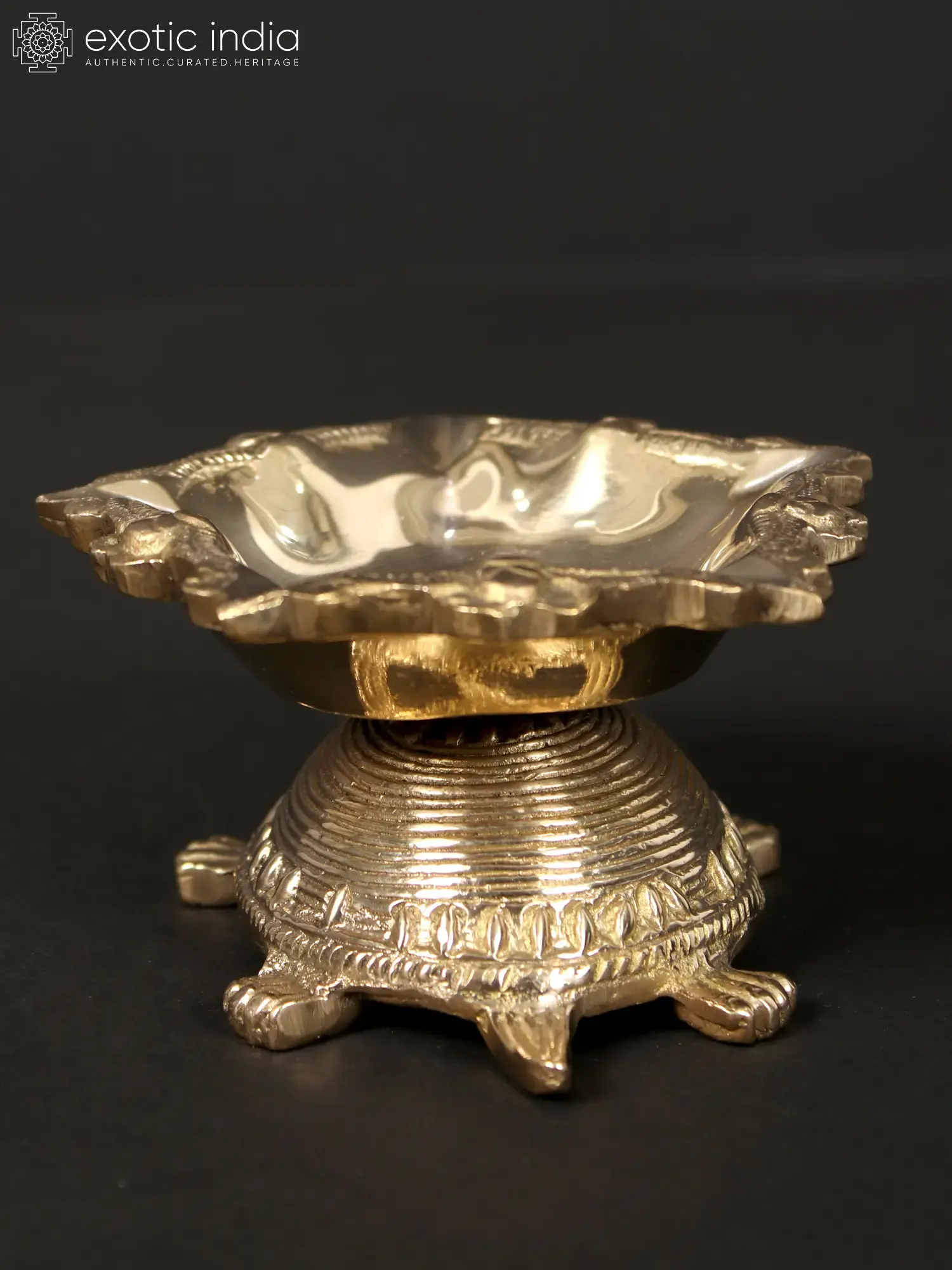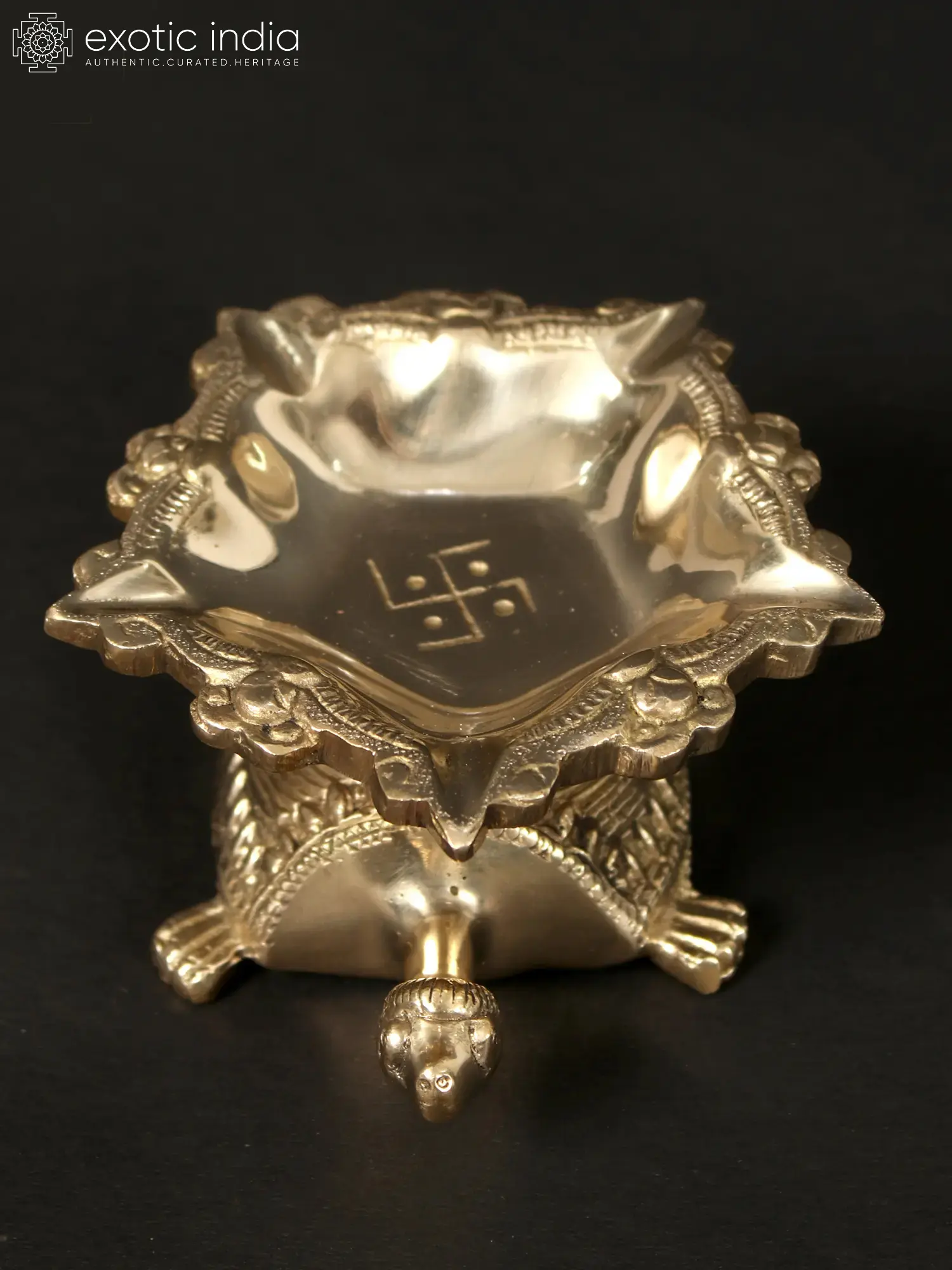 There are many texts in ancient ayurveda that mention the benefits of lighting a lamp. This brass lamp is a traditional utility object used for the purpose of Aarti or offering the holy warmth of fire to other deities. Made with sturdy metal like brass, this lamp is going to stay for generations. It comes with five wicks and a central image of Swastika. The base of the burner is made similar to a tortoise, Tortoise or Kurma, as a sign of stability, is an ideal choice for the lamp’s foundation. An object of utility, this incense burner is also a piece of art exuberating grounded tranquility.