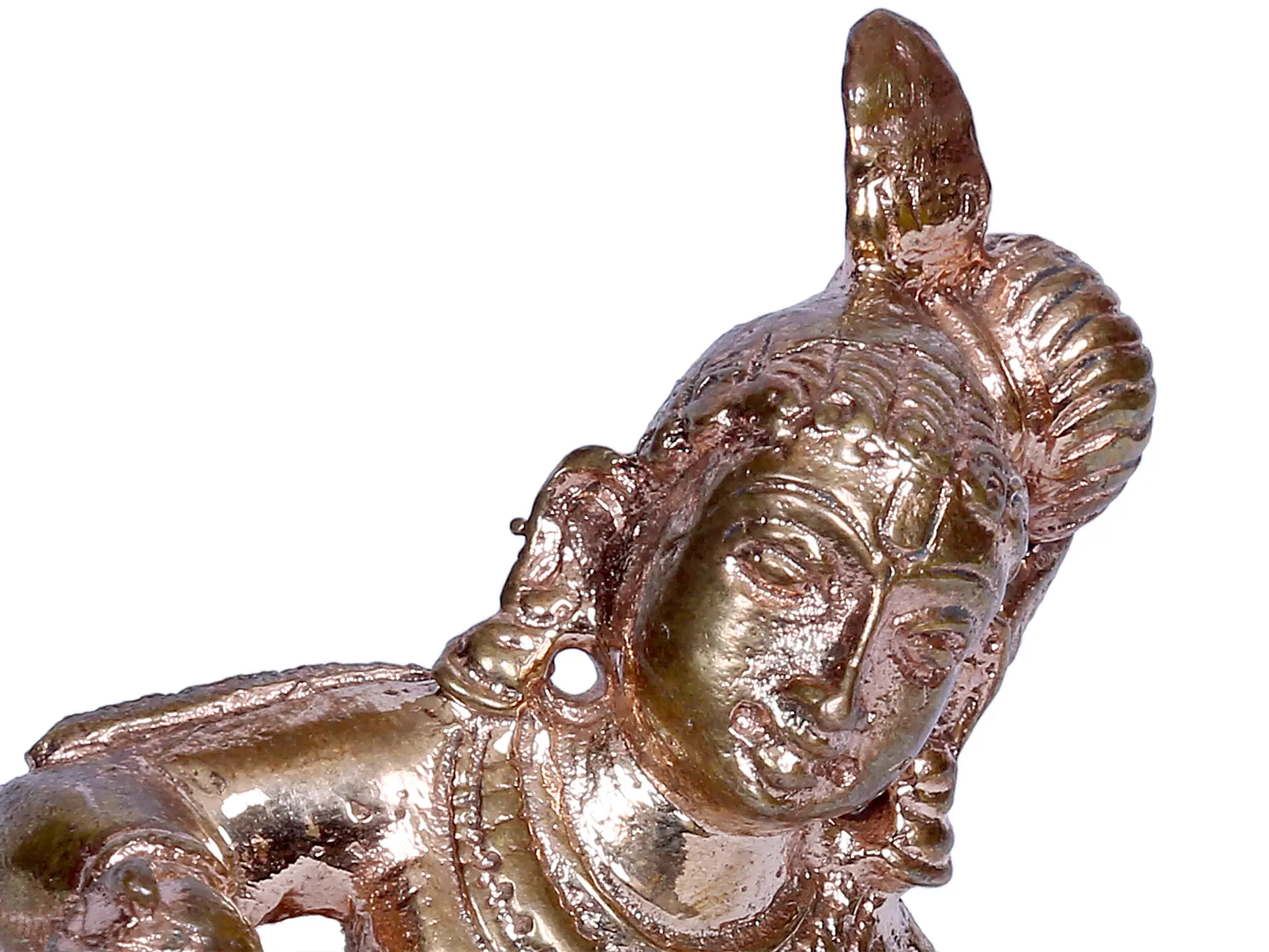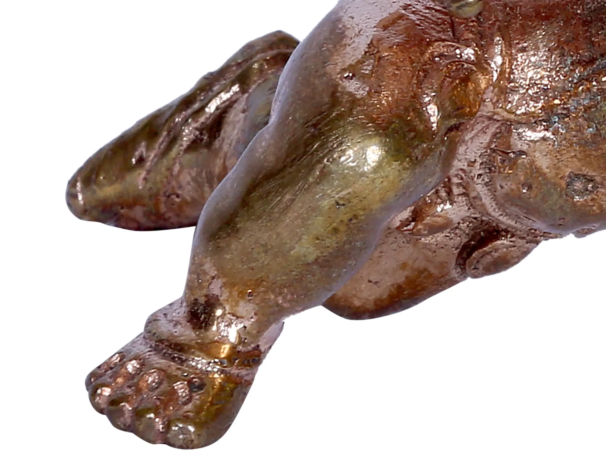 In the divine artistry of bronze, Laddu Gopal emerges, crawling dotingly in heavenly grace. This miniature manifestation holds the auspicious roopa, inviting fortune and bliss into the lives of devoted worshippers. The small statue captures the essence of Laddu Gopala, creating an aura of divine presence. Each detail, from the intricate form to the blissful expression, speaks to the devotion and adoration showered upon the deity. As an embodiment of joy and blessings, this heavenly bronze statue becomes a sacred conduit for devotees, a symbol of the divine playfulness that enriches their lives with celestial grace and spiritual fulfillment.