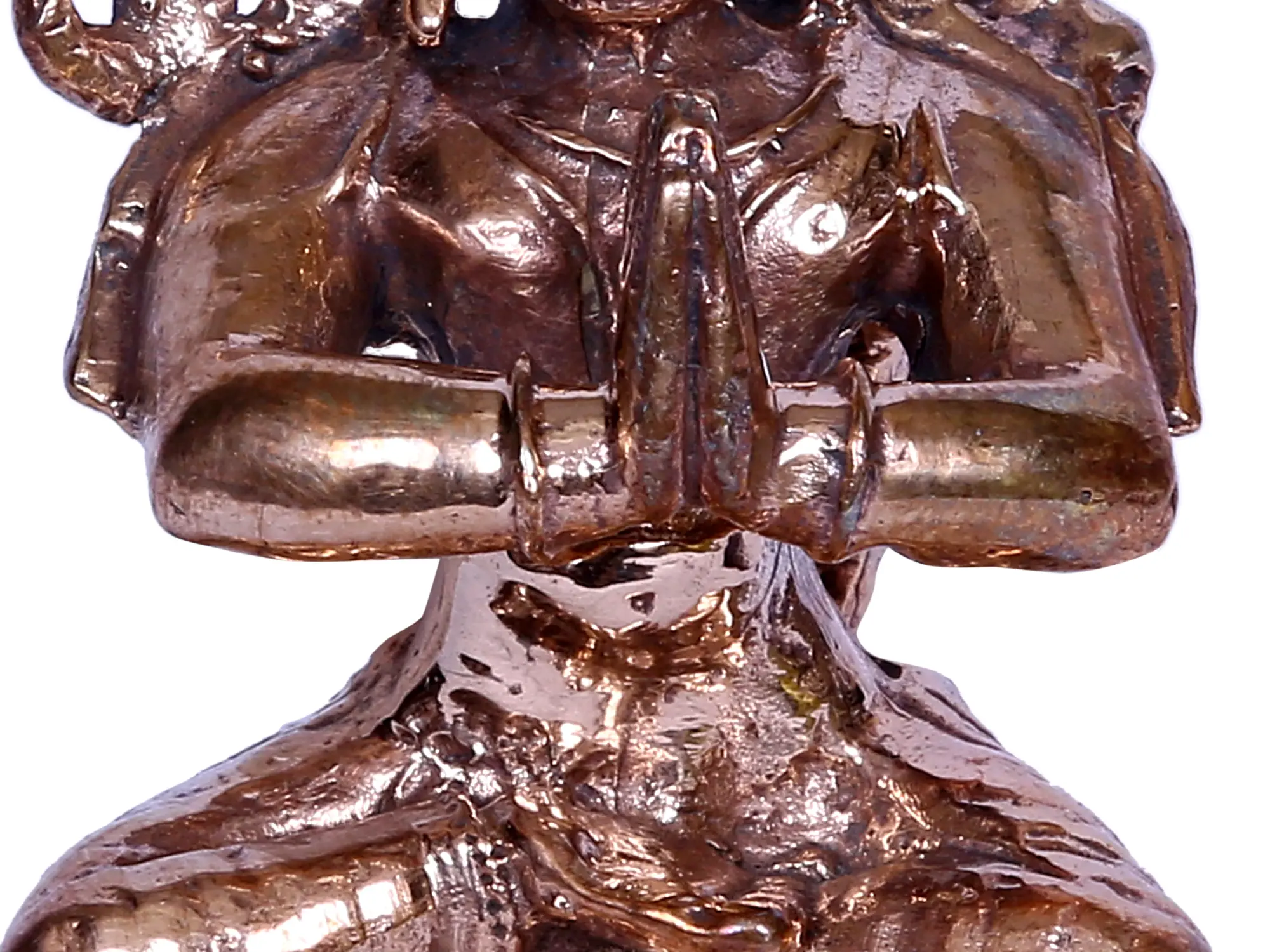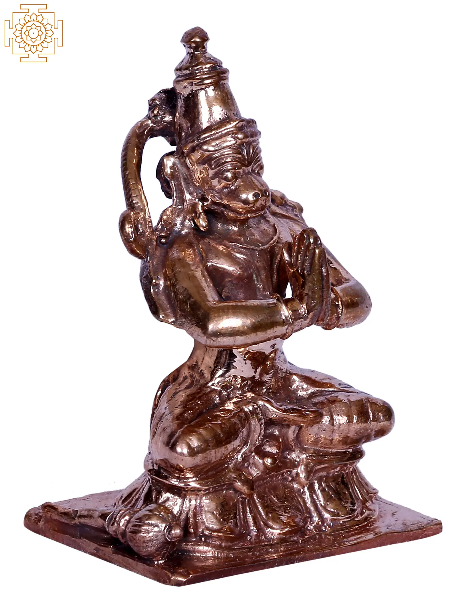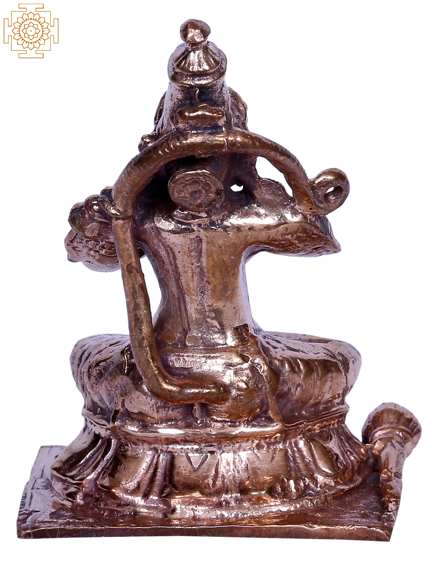 In the ethereal realm of divine artistry, Lord Hanuman, “also known as Manojava (the One who is faster than the mind)”, the embodiment of devotion and strength, graces the Kirtimukha (the Face of Glory) in sublime stillness. Cloaked in regal attire, Ganesha sits in “Namaskar Mudra”, hands clasped in eternal prayer. The “Karanda Mukut” adorns his noble brow, a symbol of majestic valour. This mesmerising tableau, crafted in bronze, encapsulates the essence of humility, power, and devotion. It is a visual hymn to the steadfast servant, encapsulating the spiritual odyssey of “Maruti”, resonating through time as an icon of reverence and resilience, an immortalised saga etched in the sacred tapestry of existence.