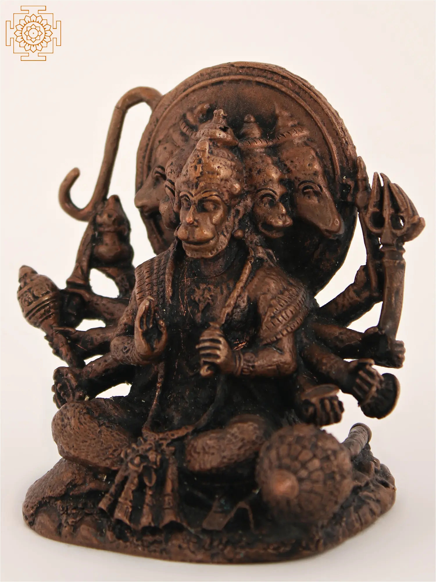 4" Small Standing Panchamukhi Lord Hanuman | Copper Statue