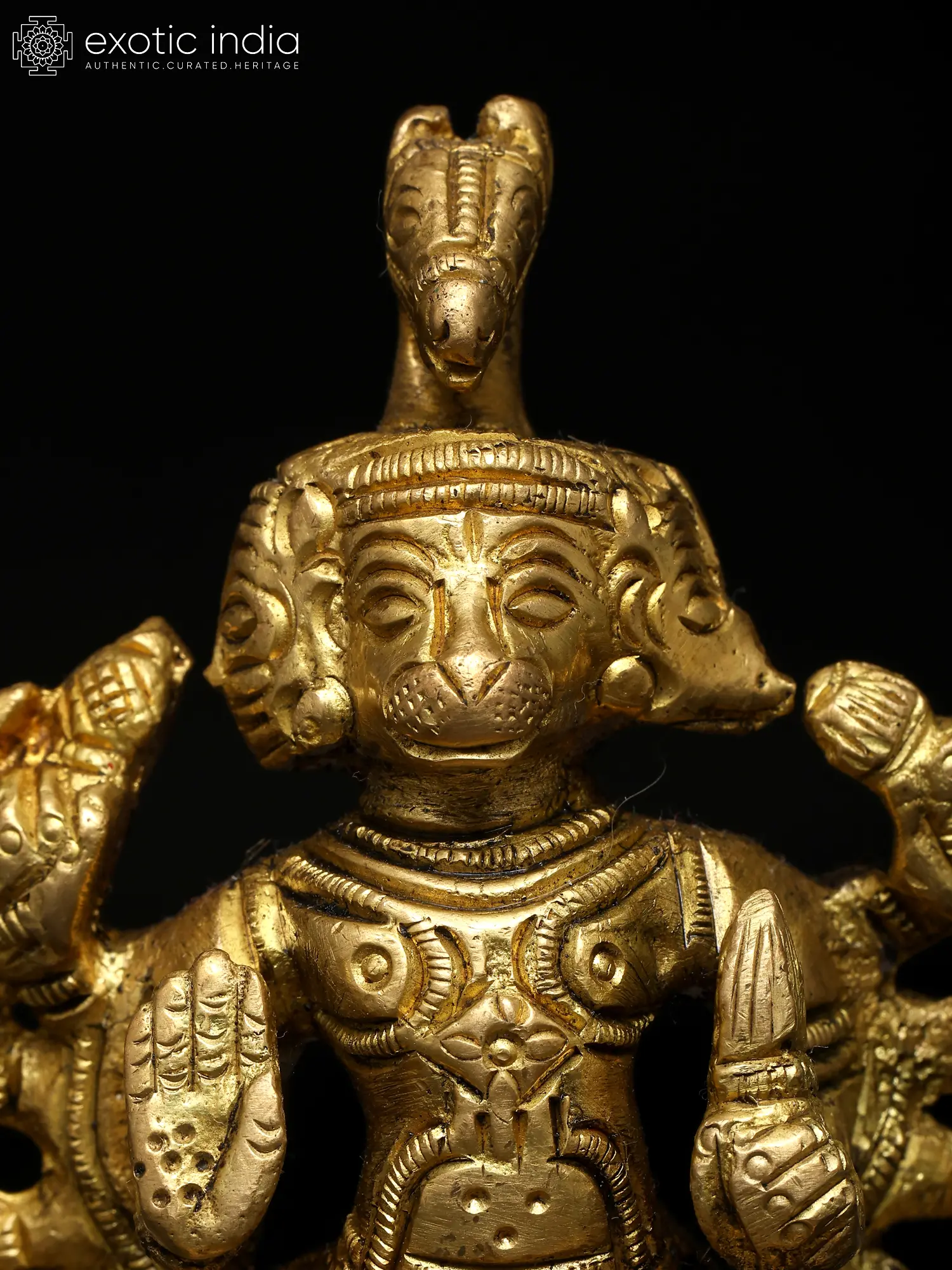 Brought to you in brass - Dashabhuja Panchamukhi Hanuman, a formidable and revered deity, is an embodiment of strength, devotion, and protection. This unique representation portrays Lord Hanuman with ten arms and five faces, each representing different aspects and attributes of the divine. With his boundless power, Panchamukhi Hanuman stands as a symbol of courage and devotion.