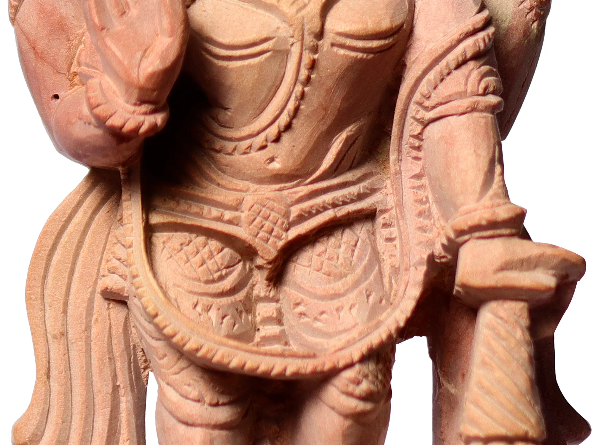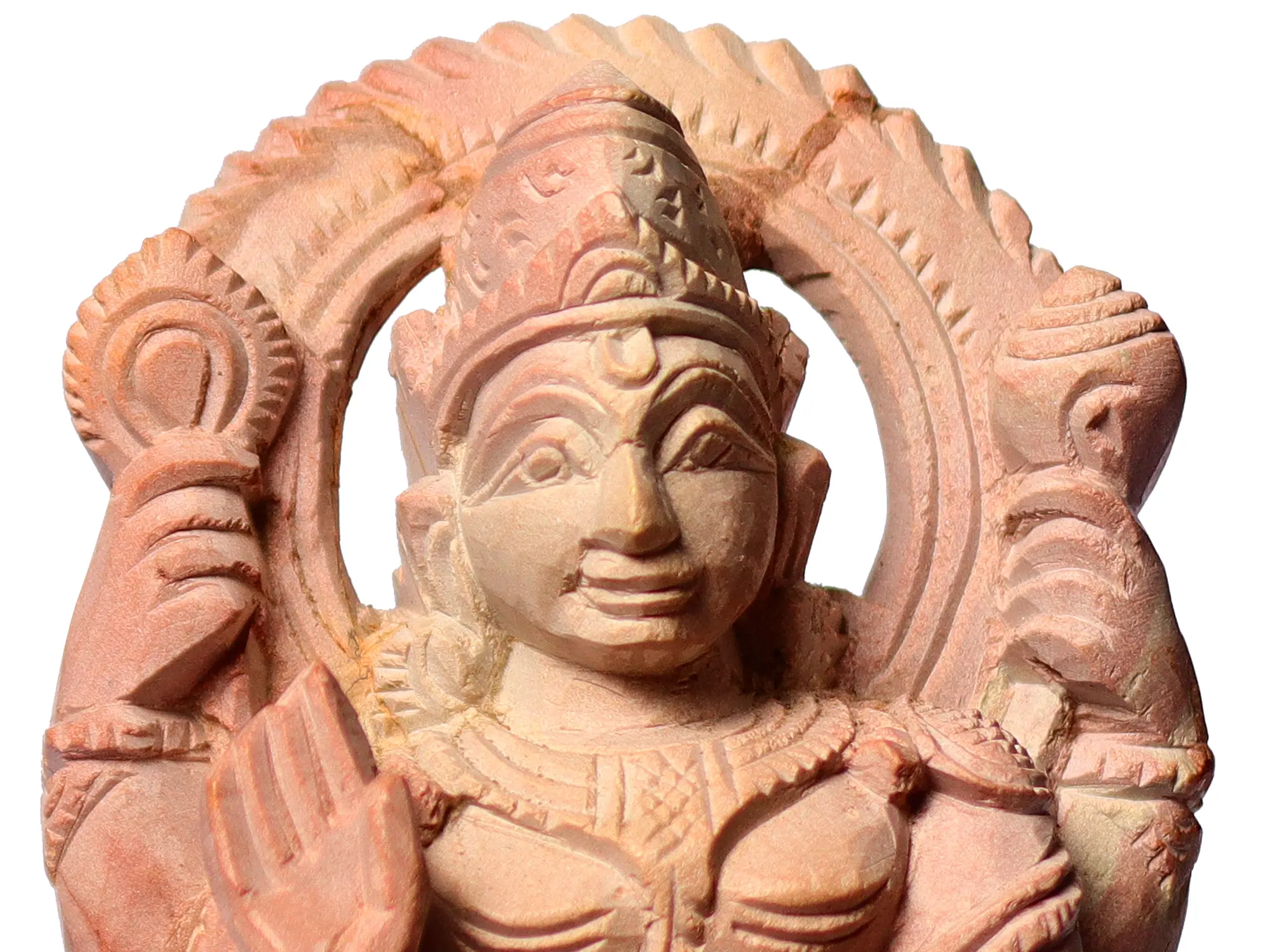 Adorned in divine regalia with celestial ornaments, Narayana's divine presence in pink stone exudes an air of boundless compassion and infinite wisdom. Embrace the Profound Wisdom of Narayana and journey into the boundless realm of the Supreme Source, recognizing the interconnectedness of all existence and seeking the eternal bliss that lies within the heart of the Divine.
