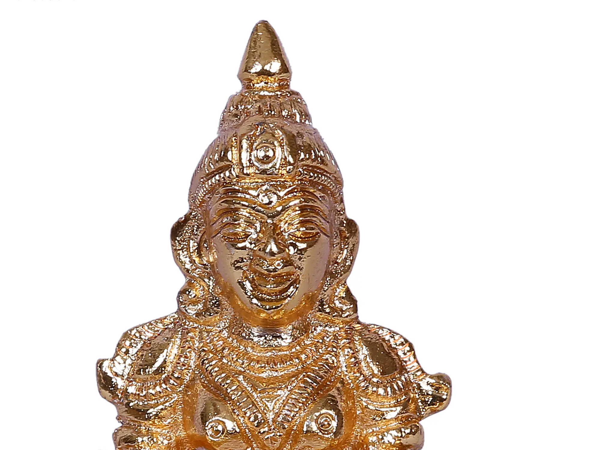 Seated gracefully in padmasana with divine poise and grace, the goddess personifies Annapurna, the nourishing and nurturing aspect of the supreme feminine energy. Her benevolent form radiates a sense of motherly love and abundance, as she holds a golden vessel overflowing with grains and fruits, ready to provide sustenance to all who seek her blessings.
