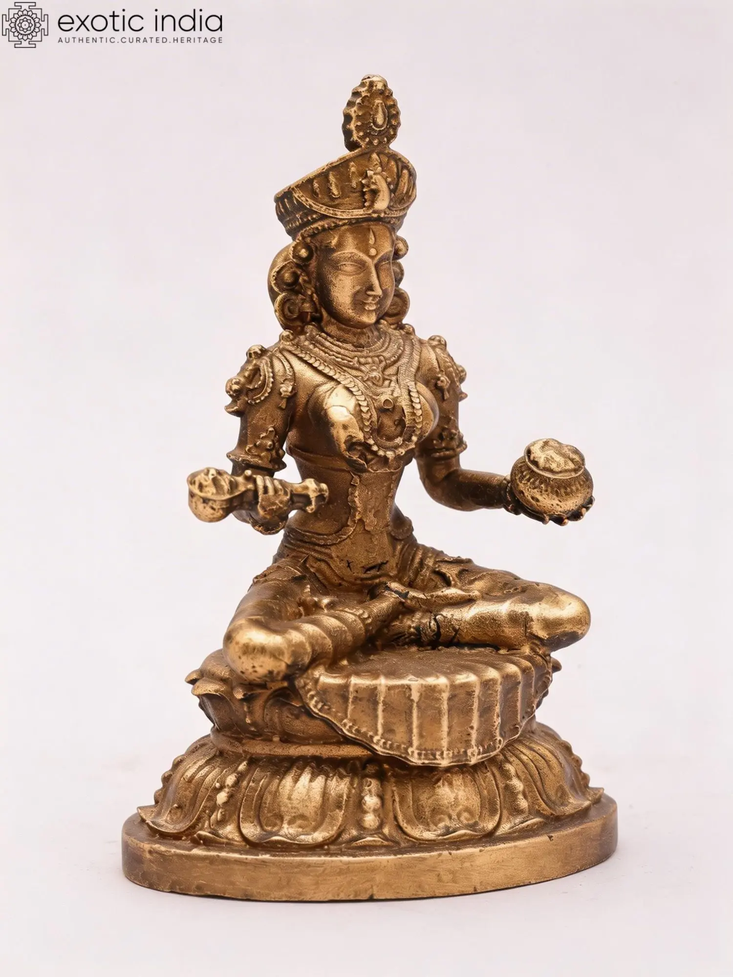 A 3-inch bronze statue representing Goddess Annapurna, the divine provider of food and nourishment.