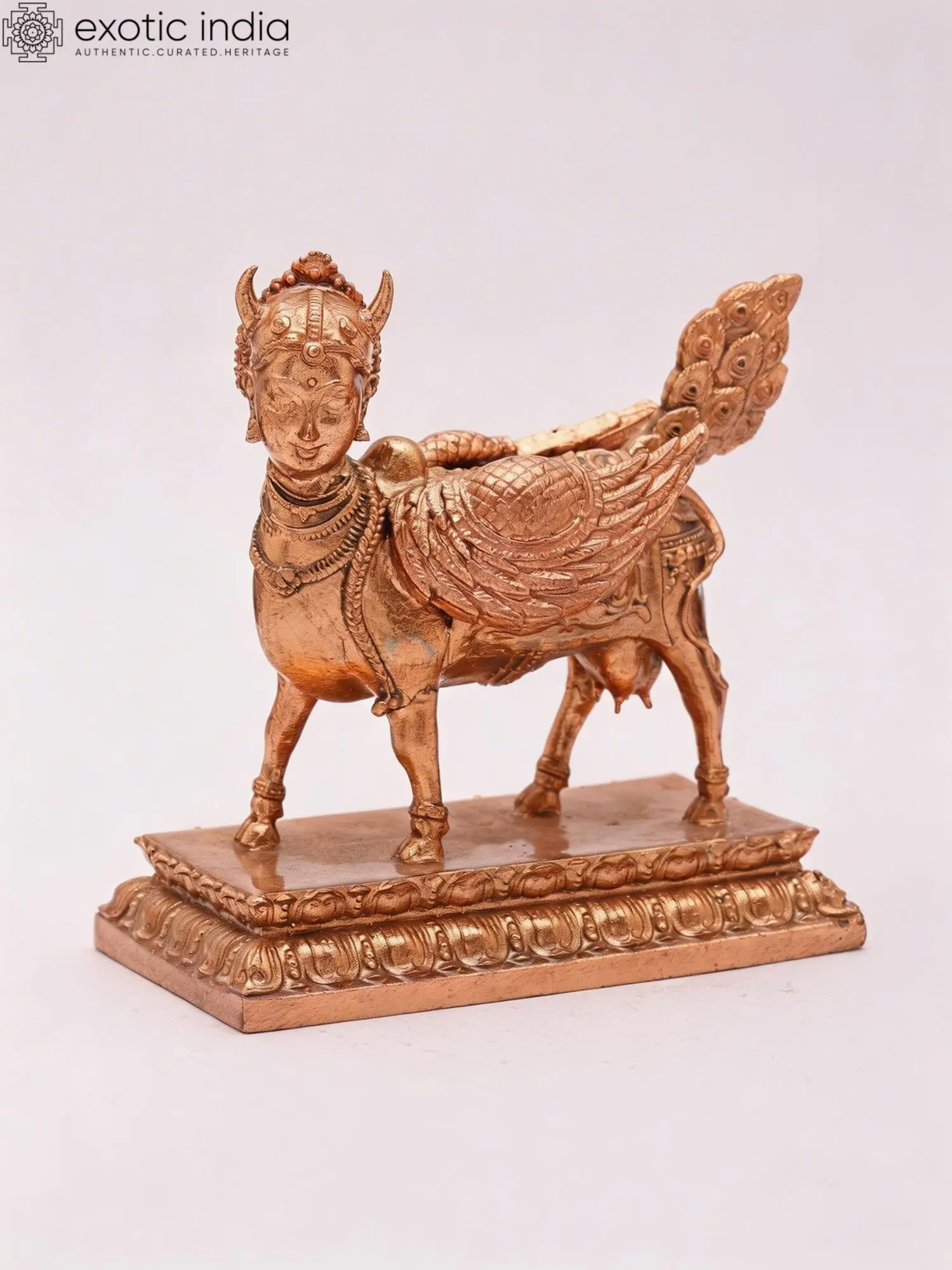 Exquisitely detailed 3-inch bronze statue depicting Goddess Kamdhenu, the celestial wish-fulfilling cow.