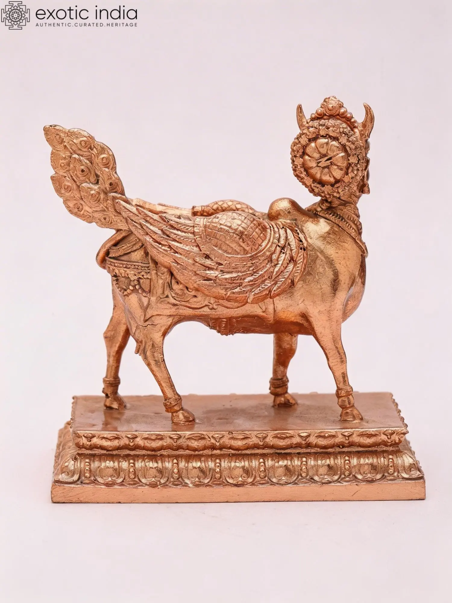 Crafted from superfine bronze, this statue showcases the divine form of the sacred cow in Panchaloha metal.