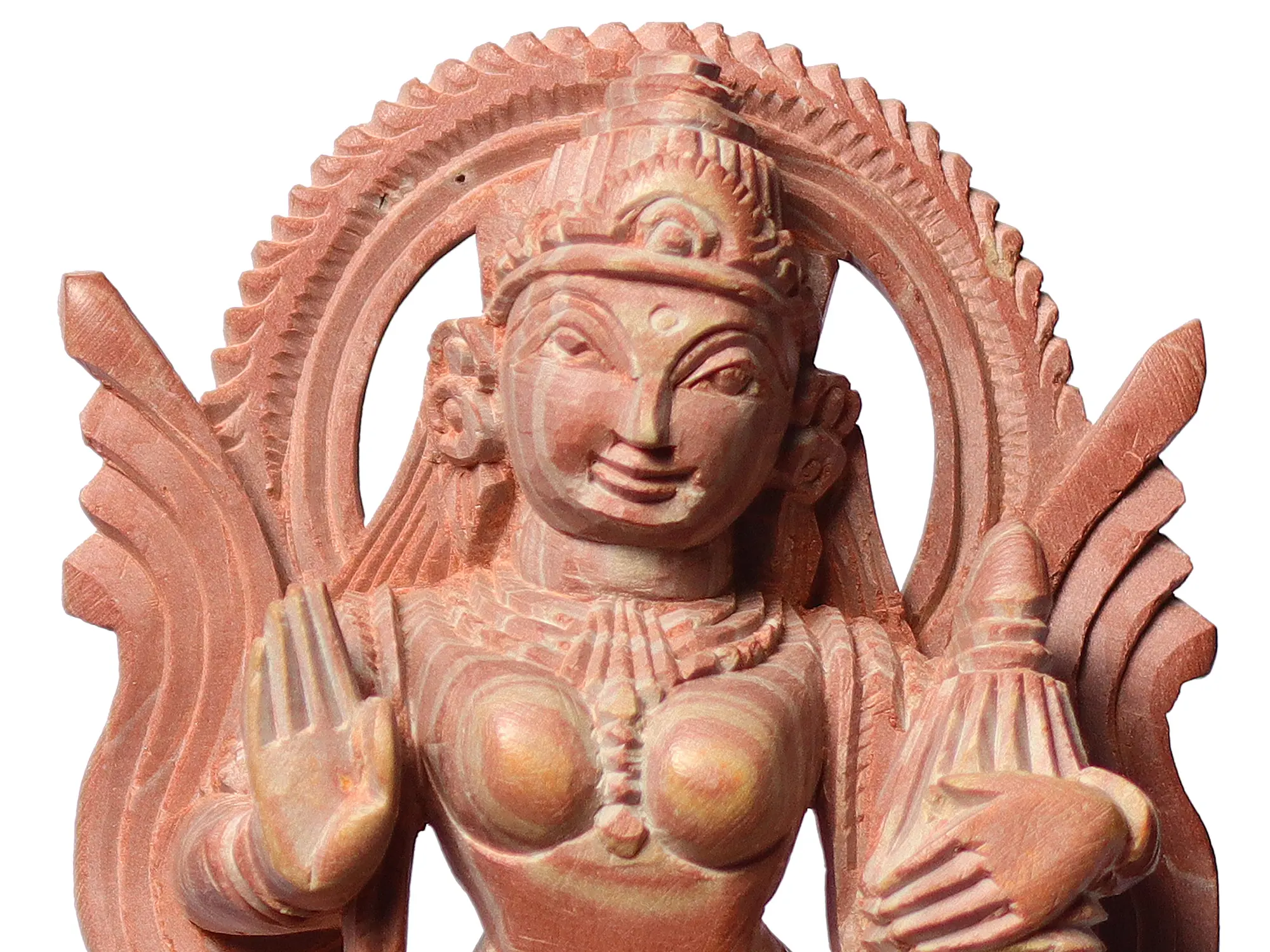 Goddess Lakshmi's presence symbolizes the celebration of material and spiritual prosperity. As the embodiment of wealth and abundance, she reminds us that prosperity is not limited to mere material possessions but encompasses inner richness and spiritual growth. The pot with golden coins signifies the boundless blessings and abundance that Lakshmi confers upon her devotees. Beyond the material wealth, it represents the wealth of virtues, love, compassion, and wisdom that bless our lives when we open our hearts to her grace.