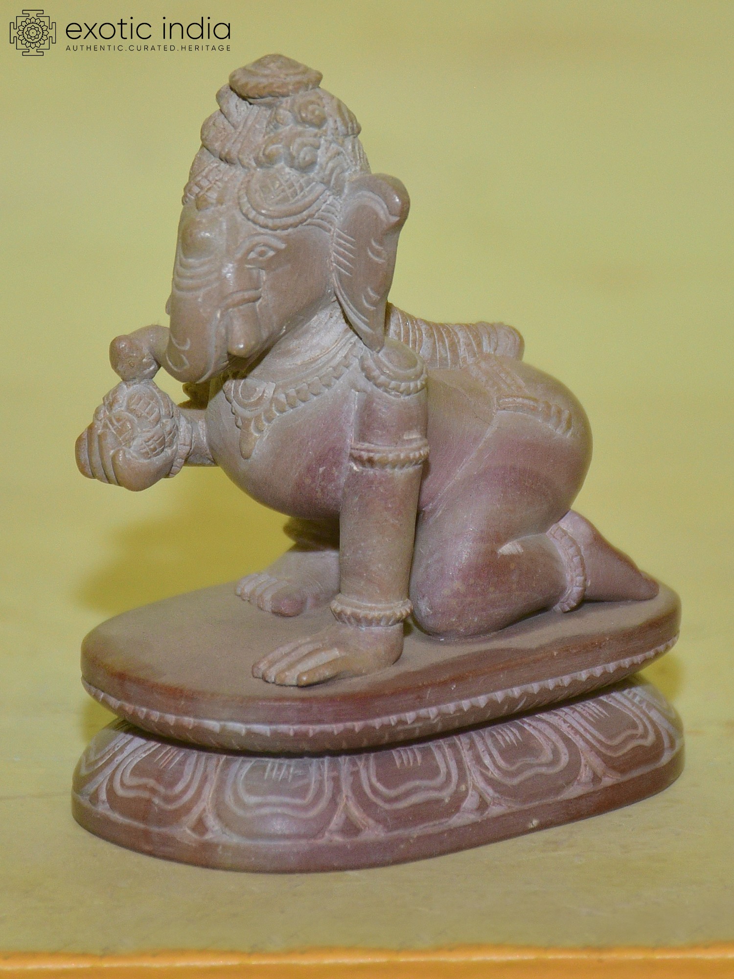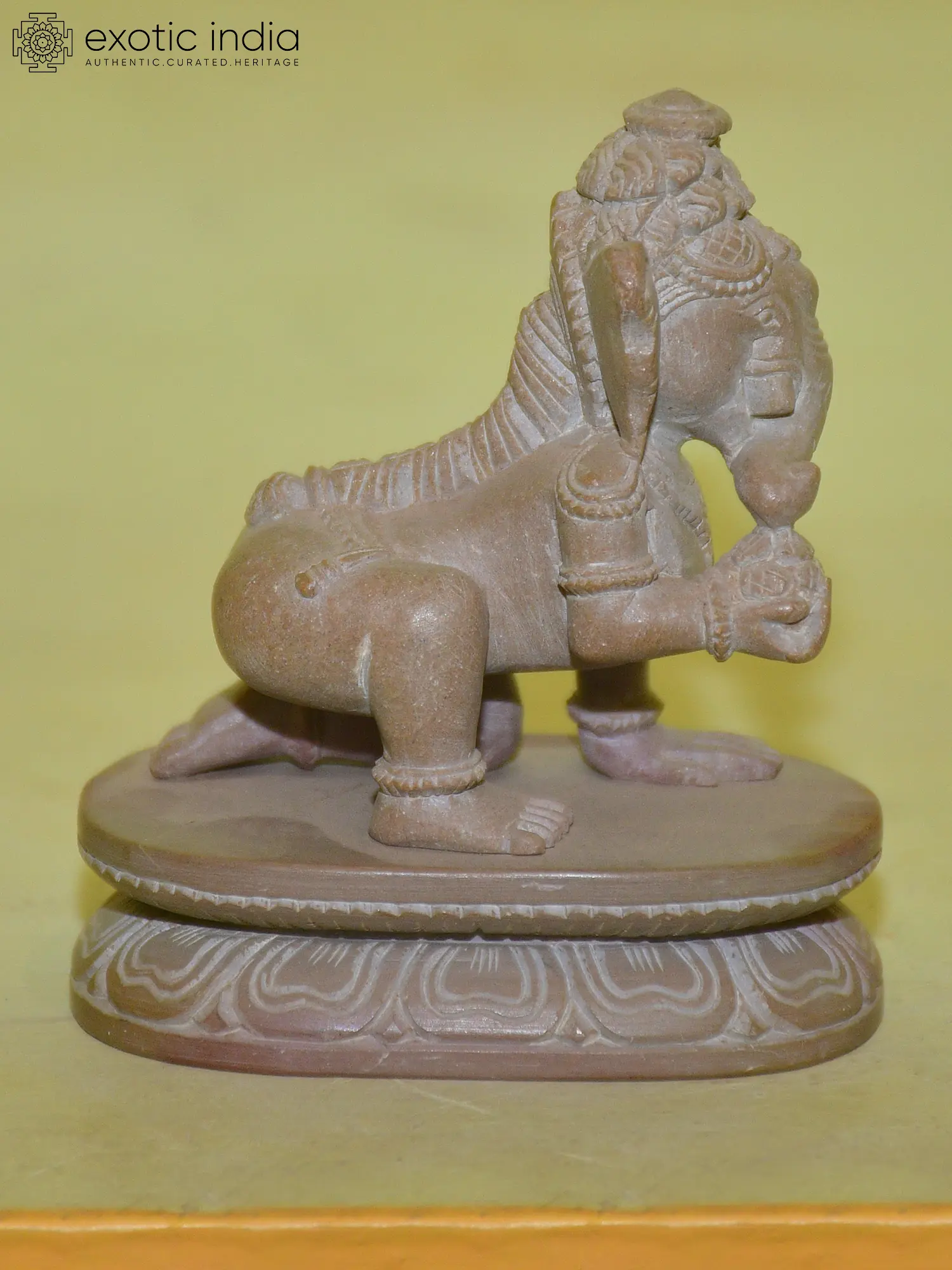 6" Resting Lord Ganesha | Hand Carved Orissa Stone Statue | Traditional Indian Handmade Art