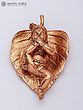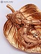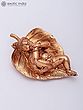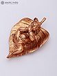 The statue shows Laddu Gopal resting on a textured leaf.