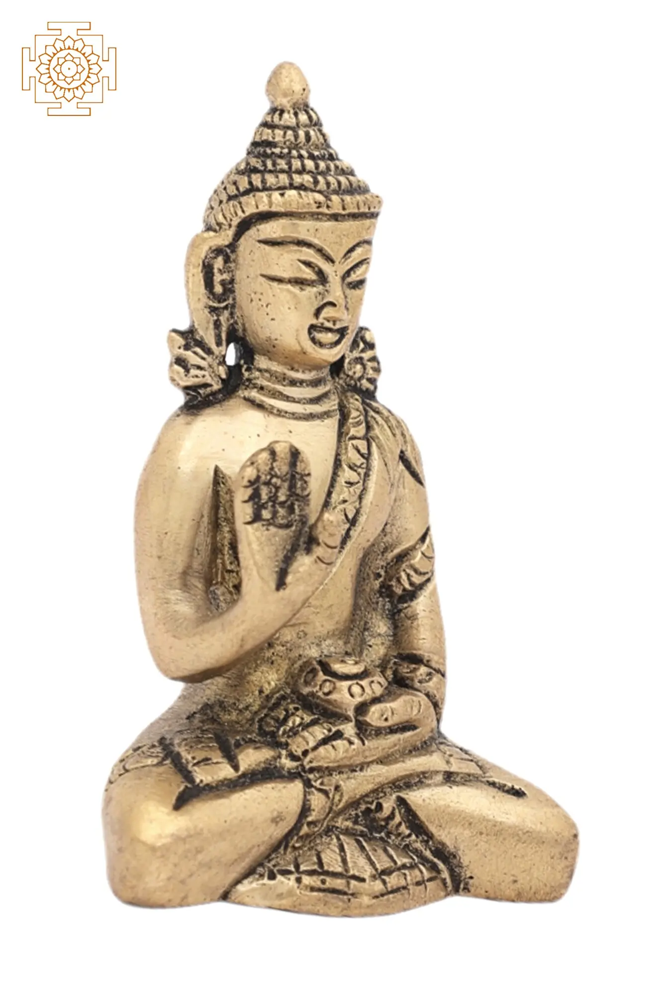 In this brass rendition, Tibetan Buddhist Lord Buddha, an epitome of enlightenment, sits in tranquil meditation. His calm demeanour exudes profound wisdom that draws those seeking enlightenment to him. With an uplifted right hand, Lord Buddha bestows fearlessness upon the devotees, while his left hand gently cradles an “alms bowl”, symbolising boundless compassion and selflessness. As a beacon of enlightenment, Buddha encourages devotees to embark on a journey of self-discovery, empathy, and spiritual growth.