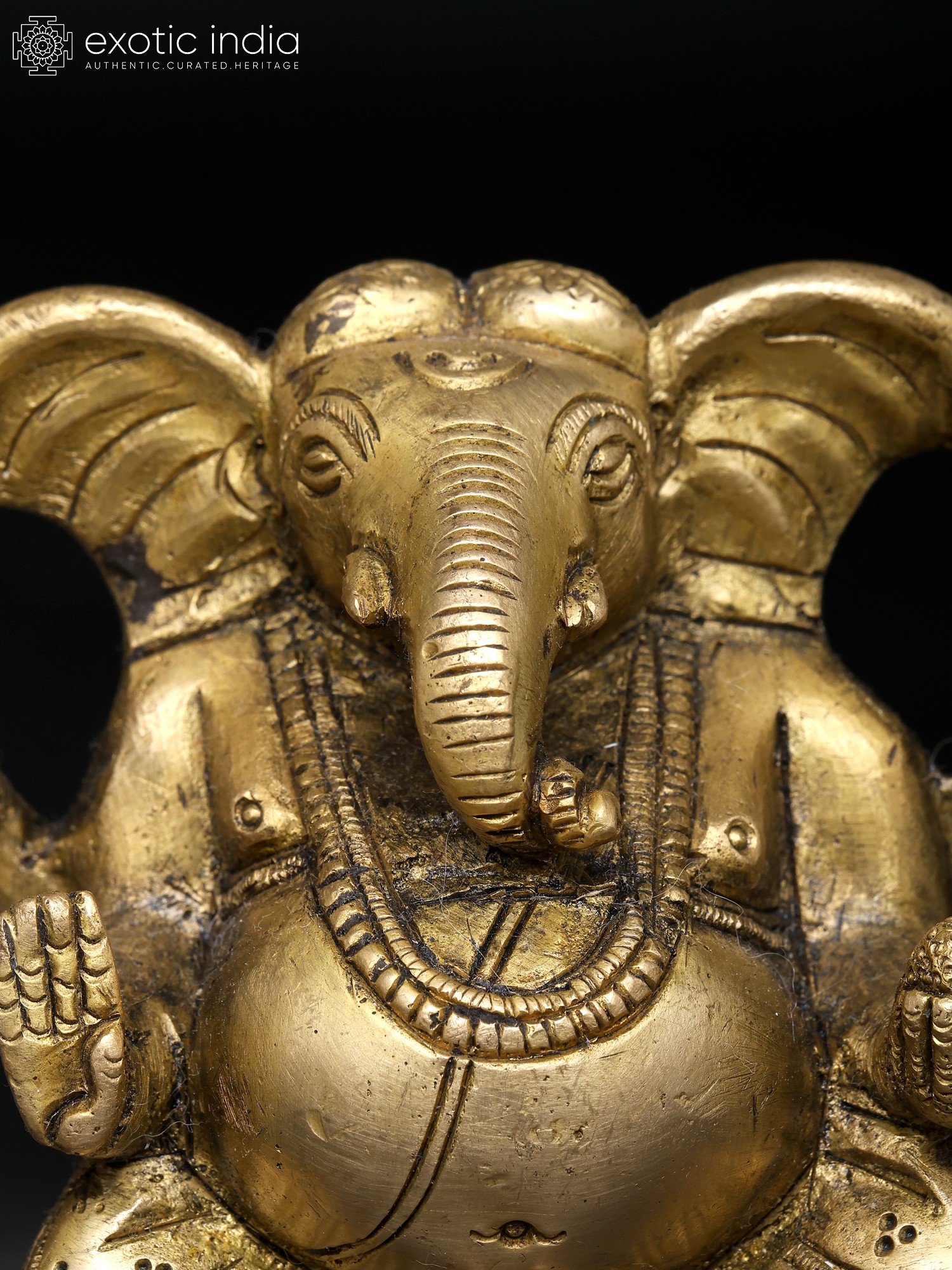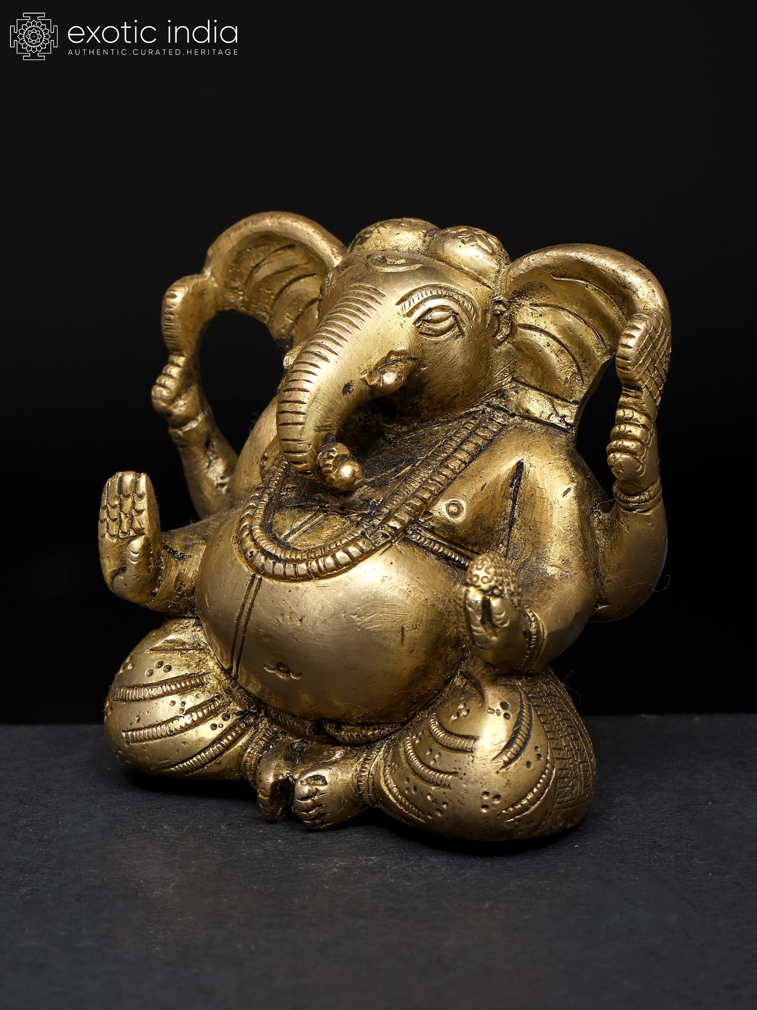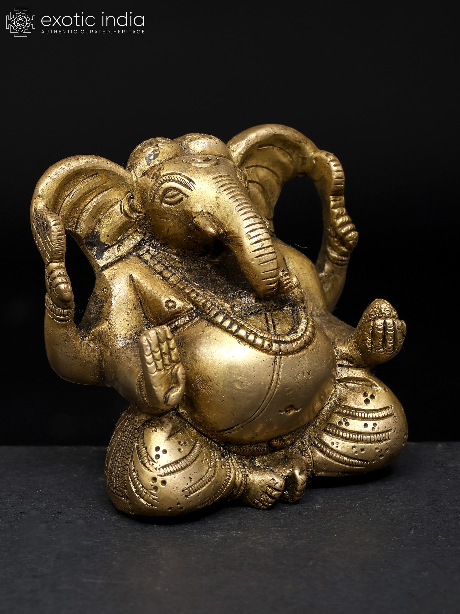 In the gleam of polished brass, Lord Ganesha, the Deva of intellect and Wisdom, sits in divine splendor, a mesmerizing embodiment of grace. His form exudes an aura of tranquillity as He rests in the “Utkutakasana posture”. His right hand, in the “Ashirwad Mudra”, radiates benediction and benevolence, while his left hand cradles a “Modak”, the sweet offering of wisdom and prosperity. Adorned with the sacred thread, “Yajnopavita”, He symbolises spiritual wisdom. His ample ears listen to the world’s joys and sorrows, and his large belly, a reservoir of cosmic abundance. Keeping this artwork in your home brings blessings of intellect, prosperity, and auspicious beginnings, as Ganesha removes obstacles and bestows his divine grace upon all who worship him.