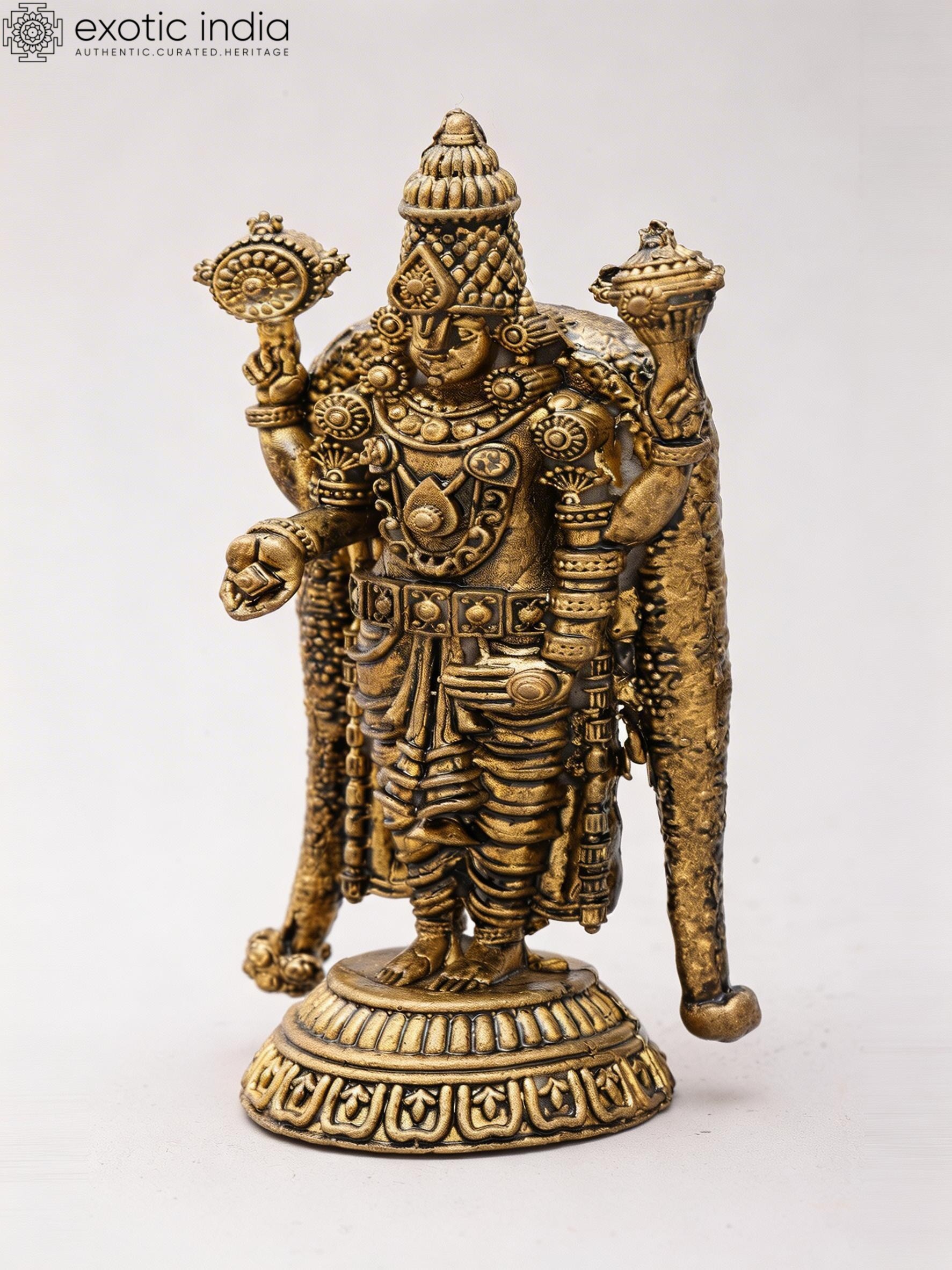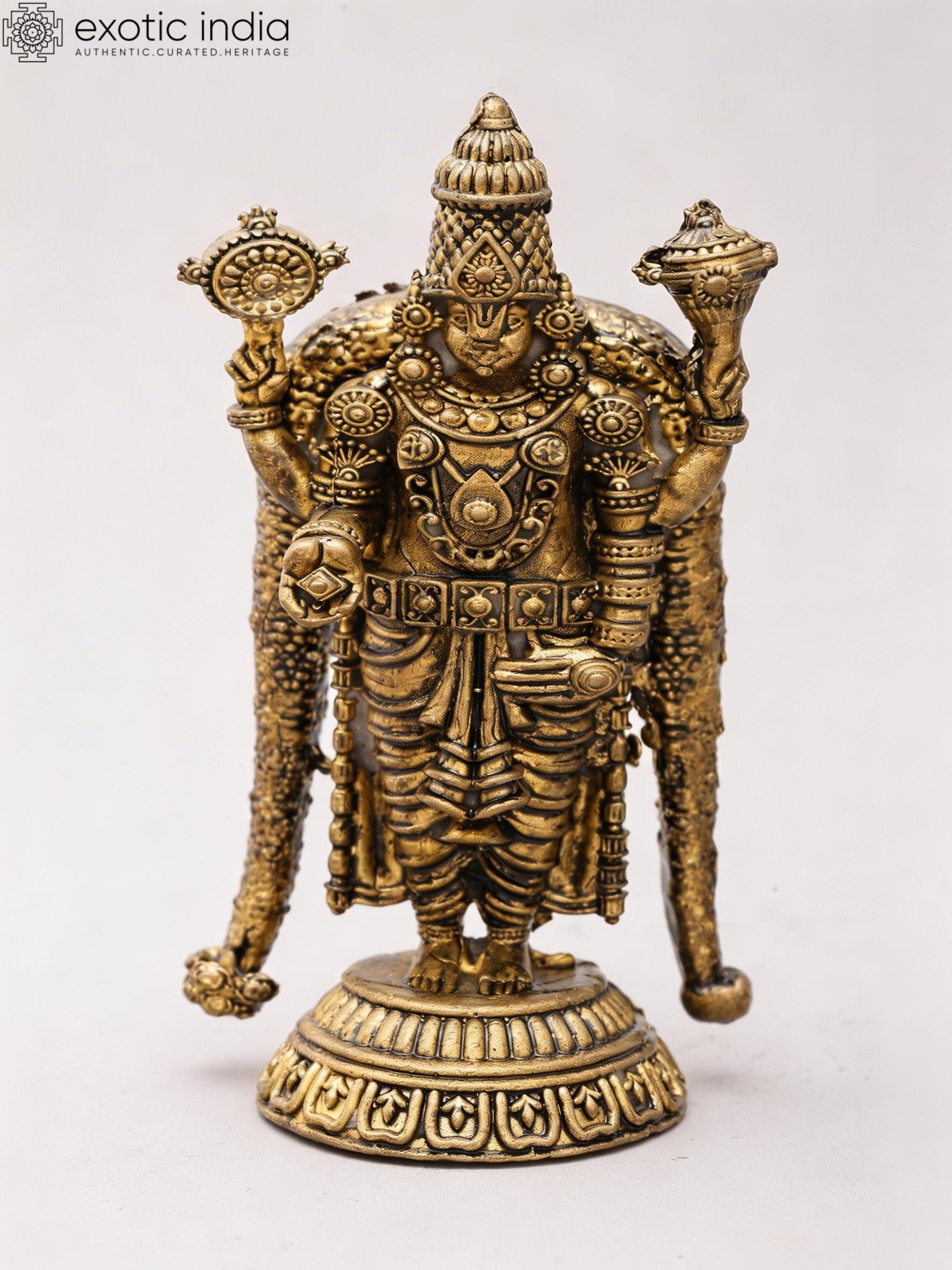 4" Small Lord Tirupati Balaji (Venkateshvara) | Copper Statue