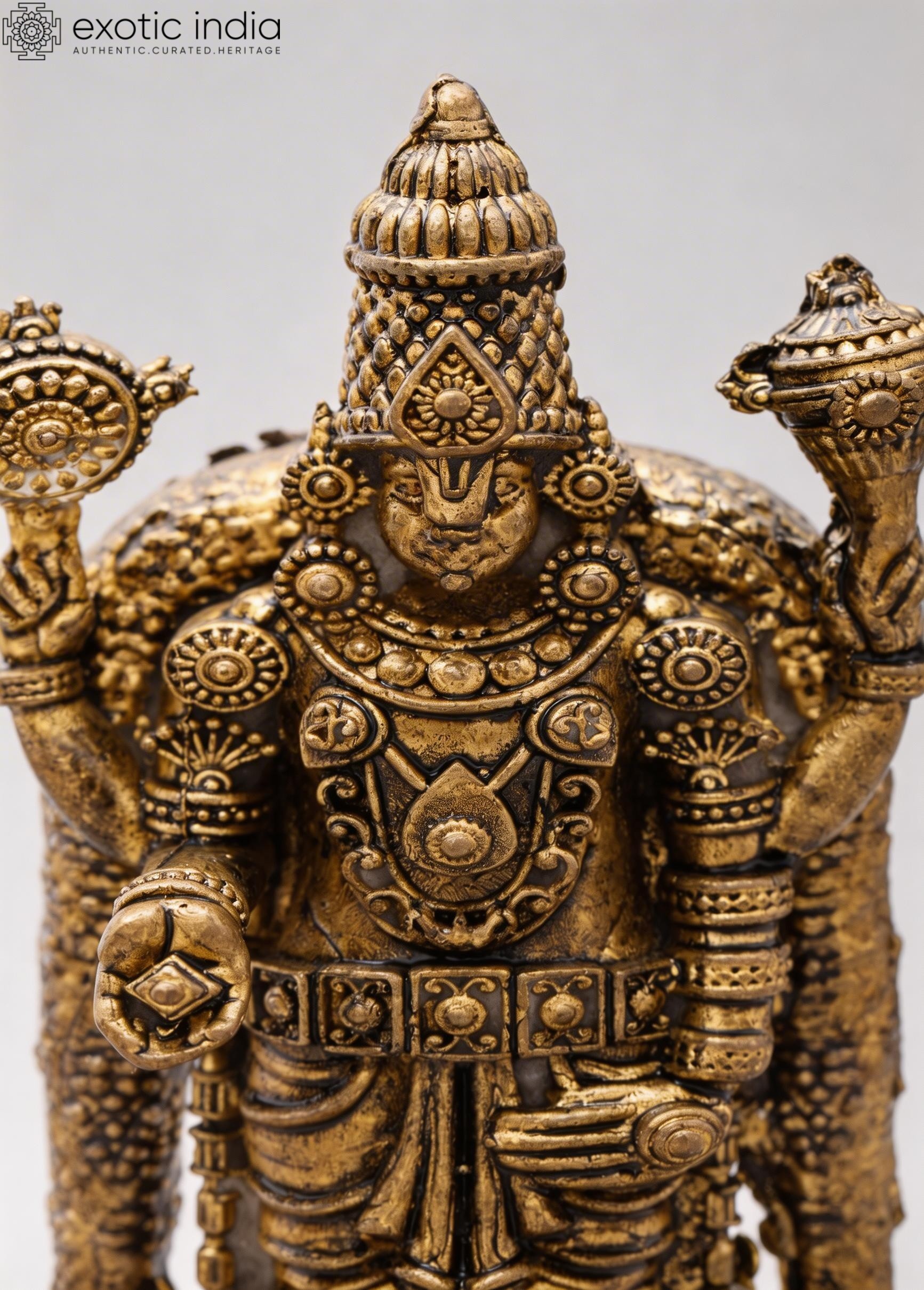 Depicts Lord Tirupati Balaji (Venkateshvara), a revered form of Vishnu.