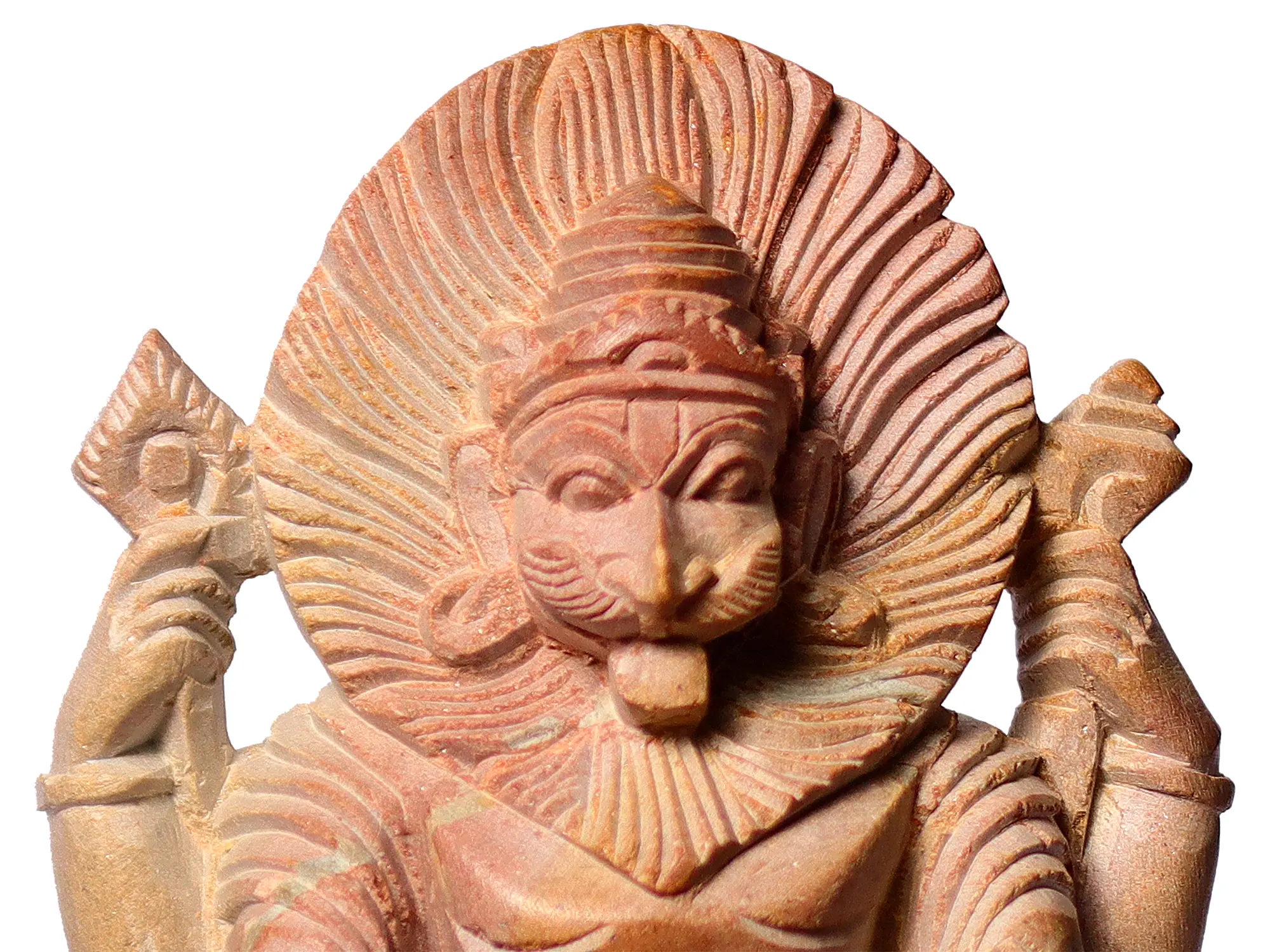 This Narasimha Sculpture makes for a cherished and meaningful gift for loved ones seeking divine strength and protection. Whether it's for someone facing challenges or anyone devoted to Lord Vishnu, this sculpture conveys blessings of fearlessness, courage, and divine grace. Narasimha transcends time, becoming an everlasting representation of the fierce and compassionate nature of divinity; his presence in your space elevates the spiritual ambiance, reminding you of the unyielding power of righteousness and the divine protection bestowed upon devotees.