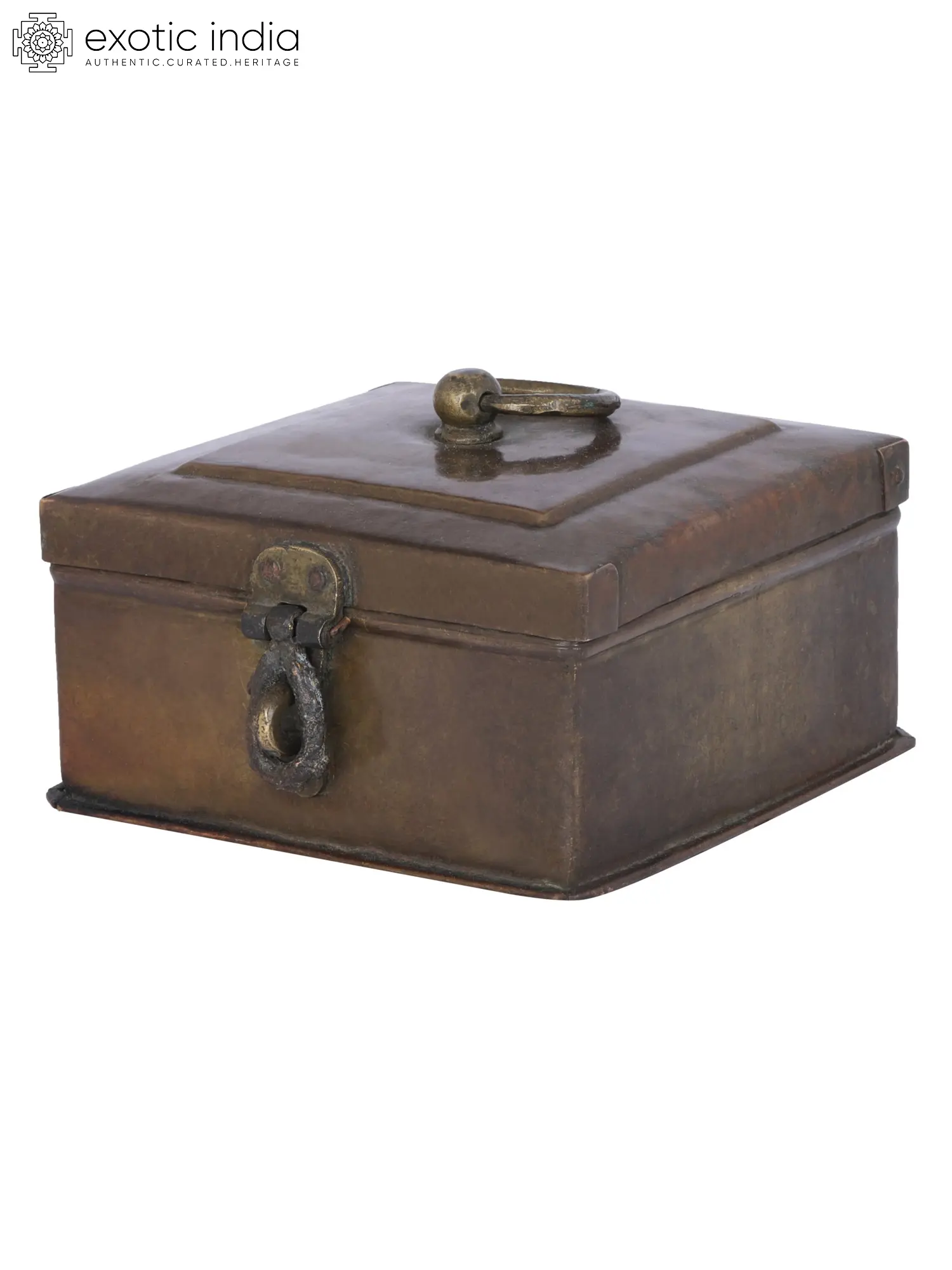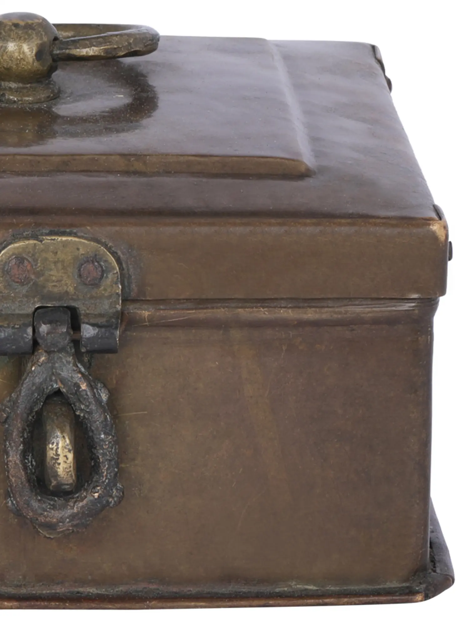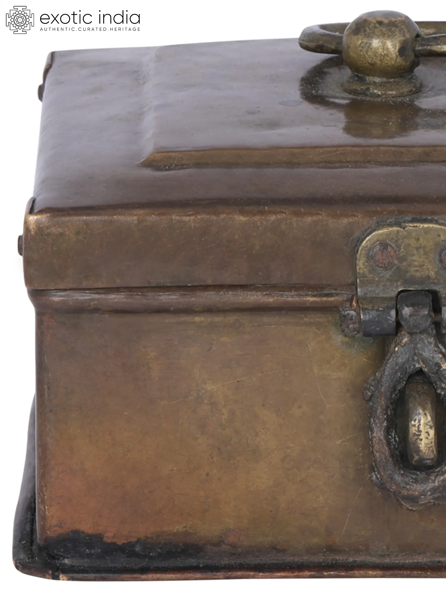 This wonderfully carved brass antique box, right from India's heart, will transport you back in time. This box is not just a container; it's a living piece of history, a silent tribute to generations of craftsmanship, and a physical link to India's cultural legacy. This is a journey through time that urges you to unravel its mysteries; it's more than just a box.